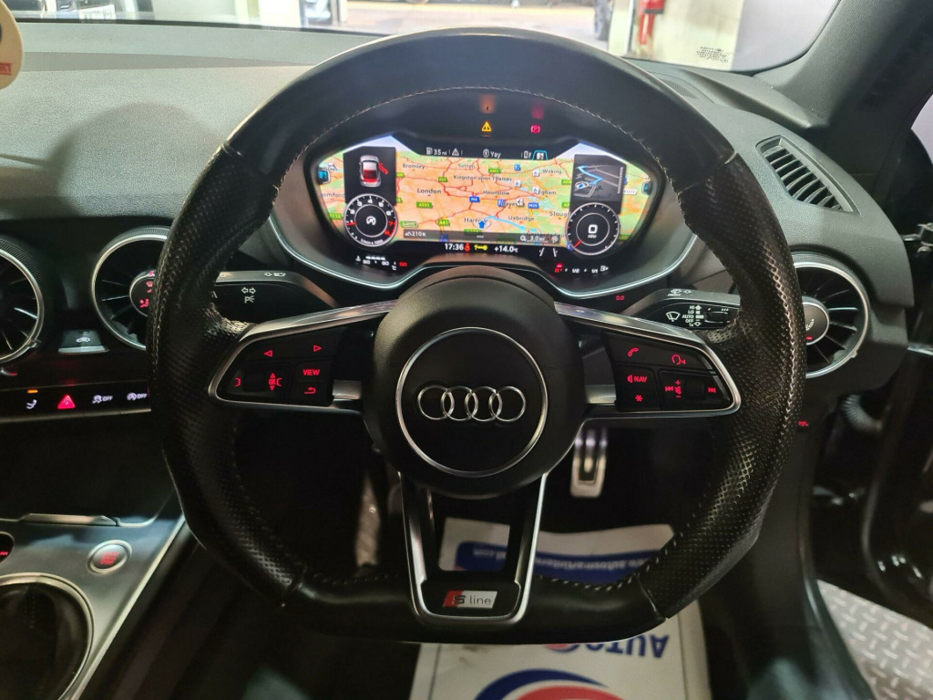 VCAR Category S, fresh service, Full MOT history, Low Rate Finance Available, We offer great prices for your Part Exchange, Any Inspection welcome, delivery can be arranged, 3 to 48 months warranty available subject to terms and condition, 12 Months AA Breakdown included, 5 days Drive away Insurance can be arranged, Gearbox & Engine in Excellent Condition.This 2015 Audi TT TFSI S line offers a compelling blend of style and technology, making it a standout choice. Finished in the desirable S line trim, this 2.0 litre petrol model is Euro 6 compliant, ensuring efficient performance. You'll appreciate the convenience of the Audi Parking System with rear sensors, the seamless connectivity provided by the Bluetooth mobile telephone preparation, and the effortless illumination from the automatic light sensor and all weather LED headlights. Inside, the air conditioning ensures a comfortable cabin environment for every journey.The Audi TT TFSI S line is designed to impress, with a highlight fuel economy of 46 miles per gallon, demonstrating its efficiency compared to other vehicles in its class. Furthermore, its low CO2 emissions also contribute to its appeal. This combination of advanced features and economical running costs makes this Audi TT a practical and enjoyable option for any driver.. 12V Power Socket, 19in Alloy Wheels - 5-Arm Star Design, 2 x SDXC Card Readers, ABS - Anti-Lock Braking System, AMI - Audi Music Interface, AUX-IN Socket, Air Conditioning, Airbags - Driver, Airbags - Front Passenger, Airbags - Front Side System, Airbags - Head System, All Weather LED Headlights, Anti Theft Locking Wheel Bolts, Anti-Theft Alarm, Audi Active Lane Assist, Audi Drive Select, Audi Virtual Cockpit - 12.3in High Resolution LCD Display, Automatic Wipers with Rain Sensor, Bluetooth Audio Streaming, Body Coloured Door Mirrors, Brake Lights - LED, Bumpers - Front and Rear - S Line Design, Car Jack, DAB Digital Radio, Diffuser - Rear - Platinum Grey Insert - S Line Design, Door Mirrors - Built-in LED Side Indicators, Door Mirrors - Electrically Adjustable and Heated, Door Sill Trims, Door Sill Trims with S Line Logo, Door Trim Inserts - Alcantara, Dynamic LED Indicators - Rear, ESP - Electronic Stability Programme, Electric Windows - Front, Electrically Adjustable 4-Way Lumbar Support, Electromechanical Parking Brake, Extended Aluminium Look in Interior, FM-AM Radio, First Aid Kit, Front Passenger Airbag Deactivation Switch, Front Sports Seats, Fuel Computer, Gear Knob - Perforated Leather Black, Gear Knob - Silver Stitching, Head Restraints - Front in Leather, Headlights - Automatic Dynamic Range Control, Headlights - Automatic Range Adjustment, Headlights - Coming-Leaving Home Function, Headlights - Light Sensor, Headlights Washers, Headlining - Black, ISOFIX Child Seat Mounting for Front Passenger, ISOFIX Child Seat Preparation for Rear Seats with Top Tether, Inlays - Matt Brushed Aluminium, Integrated Head Restraints, Keyless Go, LED Daytime Running Lights, LED Rear Lights, Light and Rain Sensor Package, MMI Radio, MMI Touch, Manual Front Seat Adjustment, Mobile Telephone Preparation - Bluetooth Interface, Non-Smoking Package, Pedals in Stainless Steel, Pollen Filter, Progressive Steering, Radiator Grille - High Gloss Black, Remote Central Locking, S Line Badge on the Steering Wheel, S Line Badges on the Front Wings, S Line Body Styling, Seat - Side Bolsters in Leather, Seats - Alcantara Centre Section, Seats - Constrasting Silver Stitching on Upholstery, Side Sills - S Line, Speakers x4 - Front Passive, Split-Folding Rear Seats, Spoiler - Retractable, Steering Wheel - 3-Spoke Leather-Multifunction-Flat Bottomed, Steering Wheel - Height and Reach Adjustable, Steering Wheel - Multi-function, Steering Wheel - Silver Contrast Stitching, Steering Wheel - Sports, Sunband for Windscreen, TP Memo - Automatically Saves Traffic News, Tool Kit, Traction Control, Tyre Pressure Loss Indicator, Tyre Repair Kit, USB Connection, Warning Triangle, iPod Connection, Audi Parking System - Rear.