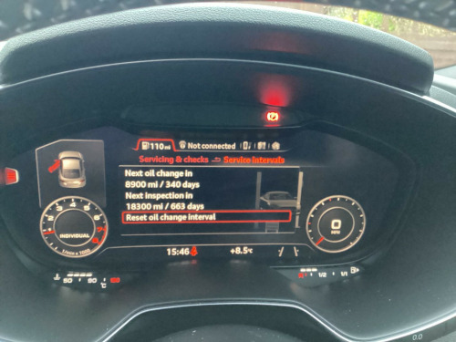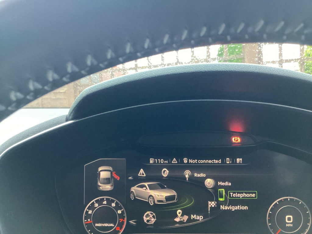 WITHOUT DOUBT THE NICEST TT ON THE MARKET WITH NO MARKS AT ALL BRAND NEW ALLOYS AND TYRES AND IMPECCABLE OWNERSHIP AND HISTORY+++FULL AUDI HISTORY+++SAT NAV+MMI SYSTEM ++This Audi TT TFSI S line from 2015 presents an exceptional ownership proposition with its remarkably low mileage of just 26,038 miles, having been cherished by only one owner. This stylish coupe boasts a 2.0 litre petrol engine and meets Euro 6 emissions standards. Inside, you'll find a comfortable cabin equipped with air conditioning and a Bluetooth interface for seamless mobile telephone preparation, allowing for convenient Bluetooth audio streaming. The driving experience is further enhanced by All Weather LED headlights, which include automatic on functionality thanks to the light sensor.This particular Audi TT TFSI S line offers impressive efficiency, achieving a notable 46 miles per gallon, which indicates its superior fuel economy compared to many similar vehicles. Its low CO2 emissions also contribute to its appeal. This combination of low mileage, single ownership, excellent fuel efficiency, and desirable S line trim makes this 2015 Audi TT a compelling choice for those seeking a well maintained and economical sports coupe. v power socket, 19in alloy wheels - 5-arm star design, 2 x sdxc card readers, abs - anti-lock braking system, ami - audi music interface, aux-in socket, air conditioning, airbags - driver, airbags - front passenger, airbags - front side system, airbags - head system, all weather led headlights, anti theft locking wheel bolts, anti-theft alarm, audi active lane assist, audi drive select, audi virtual cockpit - 12.3in high resolution lcd display, automatic wipers with rain sensor, bluetooth audio streaming, body coloured door mirrors, brake lights - led, bumpers - front and rear - s line design, car jack, dab digital radio, diffuser - rear - platinum grey insert - s line design, door mirrors - built-in led side indicators, door mirrors - electrically adjustable and heated, door sill trims, door sill trims with s line logo, door trim inserts - alcantara, dynamic led indicators - rear, esp - electronic stability programme, electric windows - front, electrically adjustable 4-way lumbar support, electromechanical parking brake, extended aluminium look in interior, fm-am radio, first aid kit, front passenger airbag deactivation switch, front sports seats, fuel computer, gear knob - perforated leather black, gear knob - silver stitching, head restraints - front in leather, headlights - automatic dynamic range control, headlights - automatic range adjustment, headlights - coming-leaving home function, headlights - light sensor, headlights washers, headlining - black, isofix child seat mounting for front passenger, isofix child seat preparation for rear seats with top tether, inlays - matt brushed aluminium, integrated head restraints, keyless go, led daytime running lights, led rear lights, light and rain sensor package, mmi radio, mmi touch, manual front seat adjustment, mobile telephone preparation - bluetooth interface, non-smoking package, pedals in stainless steel, pollen filter, progressive steering, radiator grille - high gloss black, remote central locking, s line badge on the steering wheel, s line badges on the front wings, s line body styling, seat - side bolsters in leather, seats - alcantara centre section, seats - constrasting silver stitching on upholstery, side sills - s line, speakers x4 - front passive, split-folding rear seats, spoiler - retractable, steering wheel - 3-spoke leather-multifunction-flat bottomed, steering wheel - height and reach adjustable, steering wheel - multi-function, steering wheel - silver contrast stitching, steering wheel - sports, sunband for windscreen, tp memo - automatically saves traffic news, tool kit, traction control, tyre pressure loss indicator, tyre repair kit, usb connection, warning triangle, ipod connection