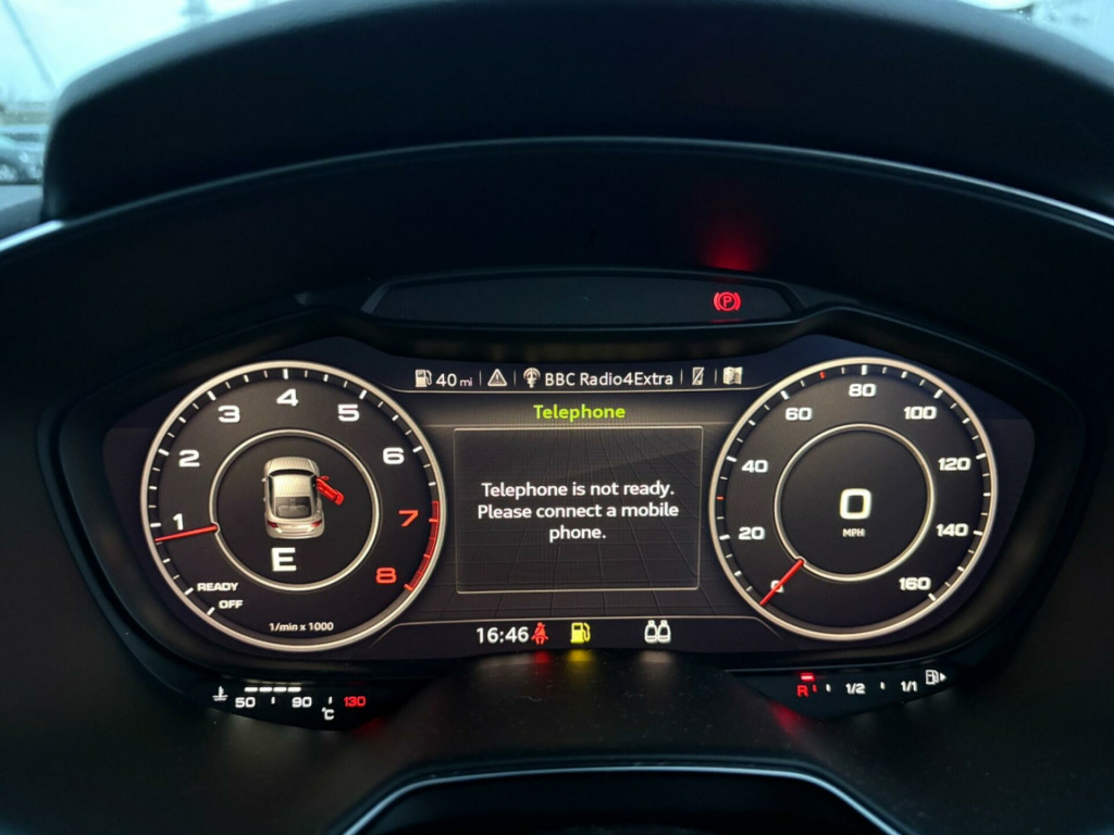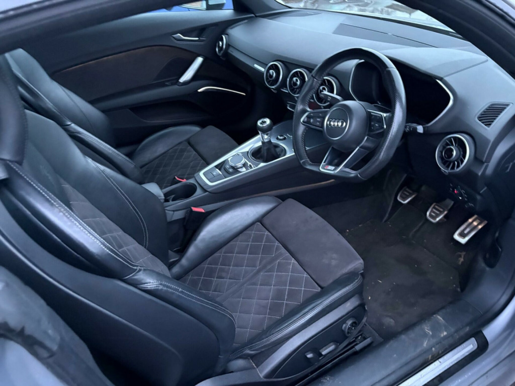 This 2015 Audi TT TFSI S line boasts exceptionally low mileage for its age, having covered just 42,000 miles, and comes with a full service history for your peace of mind. This stylish coupe features a powerful yet efficient 2.0 litre petrol engine, meeting Euro 6 emissions standards. Inside, you'll find luxurious Leather Alcantara S embossed super sports seats in Rotor Grey with Anthracite stitching, complemented by the LED interior light package and the convenience of the Audi Phone Box with wireless phone charging. The Technology Package and striking 19 inch 5 twin spoke design alloy wheels further enhance this desirable S line trim.With an impressive fuel economy of 46 miles per gallon, this Audi TT offers a more economical driving experience compared to many similar vehicles. Its low CO2 emissions also contribute to its appeal. This particular example is offered with a 3 month warranty, ensuring you can drive away with confidence.. 12V Power Socket, 19in Alloy Wheels - 5-Arm Star Design, 2 x SDXC Card Readers, ABS - Anti-Lock Braking System, AMI - Audi Music Interface, AUX-IN Socket, Air Conditioning, Airbags - Driver, Airbags - Front Passenger, Airbags - Front Side System, Airbags - Head System, All Weather LED Headlights, Anti Theft Locking Wheel Bolts, Anti-Theft Alarm, Audi Active Lane Assist, Audi Drive Select, Audi Virtual Cockpit - 12.3in High Resolution LCD Display, Automatic Wipers with Rain Sensor, Bluetooth Audio Streaming, Body Coloured Door Mirrors, Brake Lights - LED, Bumpers - Front and Rear - S Line Design, Car Jack, DAB Digital Radio, Diffuser - Rear - Platinum Grey Insert - S Line Design, Door Mirrors - Built-in LED Side Indicators, Door Mirrors - Electrically Adjustable and Heated, Door Sill Trims, Door Sill Trims with S Line Logo, Door Trim Inserts - Alcantara, Dynamic LED Indicators - Rear, ESP - Electronic Stability Programme, Electric Windows - Front, Electrically Adjustable 4-Way Lumbar Support, Electromechanical Parking Brake, Extended Aluminium Look in Interior, FM-AM Radio, First Aid Kit, Front Passenger Airbag Deactivation Switch, Front Sports Seats, Fuel Computer, Gear Knob - Perforated Leather Black, Gear Knob - Silver Stitching, Head Restraints - Front in Leather, Headlights - Automatic Dynamic Range Control, Headlights - Automatic Range Adjustment, Headlights - Coming-Leaving Home Function, Headlights - Light Sensor, Headlights Washers, Headlining - Black, ISOFIX Child Seat Mounting for Front Passenger, ISOFIX Child Seat Preparation for Rear Seats with Top Tether, Inlays - Matt Brushed Aluminium, Integrated Head Restraints, Keyless Go, LED Daytime Running Lights, LED Rear Lights, Light and Rain Sensor Package, MMI Radio, MMI Touch, Manual Front Seat Adjustment, Mobile Telephone Preparation - Bluetooth Interface, Non-Smoking Package, Pedals in Stainless Steel, Pollen Filter, Progressive Steering, Radiator Grille - High Gloss Black, Remote Central Locking, S Line Badge on the Steering Wheel, S Line Badges on the Front Wings, S Line Body Styling, Seat - Side Bolsters in Leather, Seats - Alcantara Centre Section, Seats - Constrasting Silver Stitching on Upholstery, Side Sills - S Line, Speakers x4 - Front Passive, Split-Folding Rear Seats, Spoiler - Retractable, Steering Wheel - 3-Spoke Leather-Multifunction-Flat Bottomed, Steering Wheel - Height and Reach Adjustable, Steering Wheel - Multi-function, Steering Wheel - Silver Contrast Stitching, Steering Wheel - Sports, Sunband for Windscreen, TP Memo - Automatically Saves Traffic News, Tool Kit, Traction Control, Tyre Pressure Loss Indicator, Tyre Repair Kit, USB Connection, Warning Triangle, iPod Connection, Audi Phone Box, Cruise Control, 19in Alloy Wheels - 5-Twin-Spoke Design, Front Centre Armrest, Heated Front Seats, LED Interior Light Package, Leather-Alcantara - S Embossed Super Sports Seats - Rotor Grey with Anthracite Stitching, Technology Package. Full service history