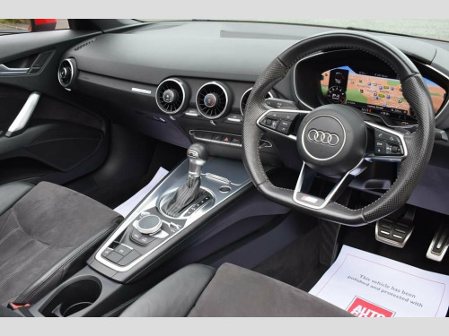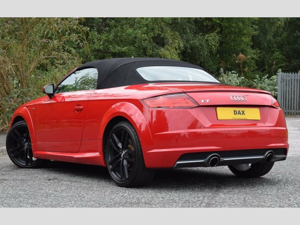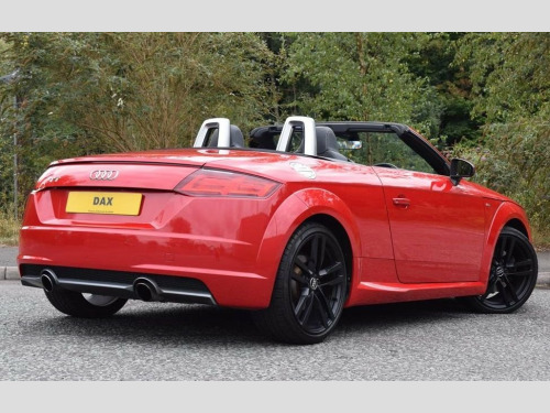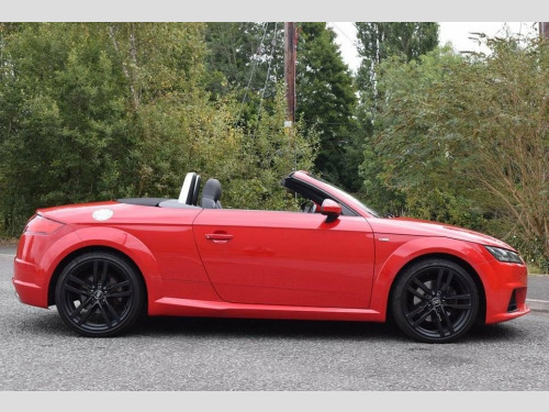 We are delighted to offer this absolutely stunning Audi TT 2.0 TFSI230 S Line Roadster presented In beautiful Tango Red Metallic with contrasting black leather and alcantara interior and supported by 2 keys and a full service history. This is a very nice sports car indeed! The whole car is presented in exceptional condition throughout and drives beautifully well with plenty of power from the TFSI engine. The interior is deceptively spacious with plenty of headroom and fantastic driving position that keeps you feeling connected to the road. The whole interior design is very clever indeed and feels extremely premium too just like an Audi should. We have 2 keys present and a fantastic service history which reads as follows: 10586, 18771, 23062, 27728, 31098, 41632, 45440 and 47000 on order. the car will also have a fresh 12 months MOT to offer maximum peace of mind for the new owner who is going to be delighted with this stunning car. Specification Includes: Satellite Navigation, DAB Radio, Audi Drive Select, Bluetooth With Audio Streaming, Leather And Alcantara Seats, Heated Seats, Climate Control, Parking Sensors, Electric Rear Spoiler, Auto Lights, 19 Inch Alloy Wheels And More! PRIVATE PLATE INCLUDED Satellite Navigation, Bluetooth Audio Streaming, DAB Digital Radio, Heated Front Seats, Brake Lights - LED, Audi Virtual Cockpit - 12.3in High Resol, Air Conditioning, Audi Drive Select, LED Daytime Running Lights, Keyless Go, Spoiler - Retractable, 19in Alloy Wheels - 5-Twin-Spoke Design