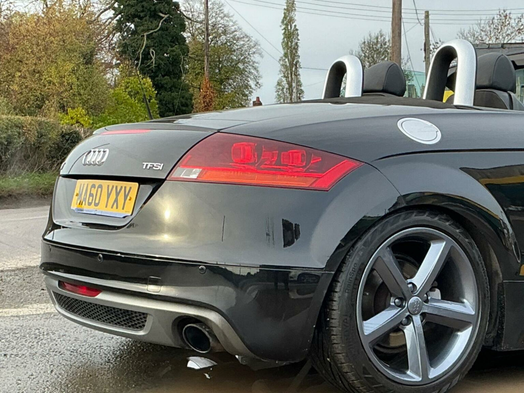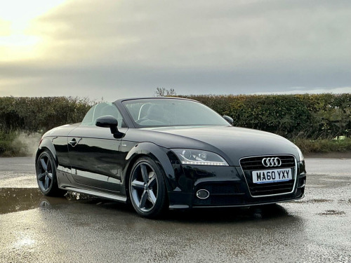 2010 (60) Audi TT 2.0 TFSI S line Roadster S Tronic Euro 5 (s/s) 2dr presented in Black with black interior / Fantastic service history - serviced on 11k, 14k, 33k, 36k, 37k, 45k, 52k, 57k, 58k, 73k, 74k & 88k / Three previous owner from new / 2 keys / New MOT with no advisories / USB input / Bluetooth / Cruise control / Rear parking sensors / Climate control / Automatic lights / Electric Roof / Electric windows / Alloy wheels / Trip computer / Drive away today / All of our Cars are supplied with FREE NEW MOT with no advisories, FREE Interim service, FREE HPI Check, FREE MOT History Check, FREE 3 months Nationwide Parts and Labour Warranty and a FREE professional valet. Please call us to arrange a viewing and test drive or for any further information about this car.