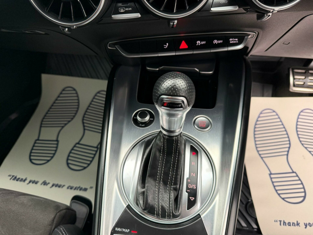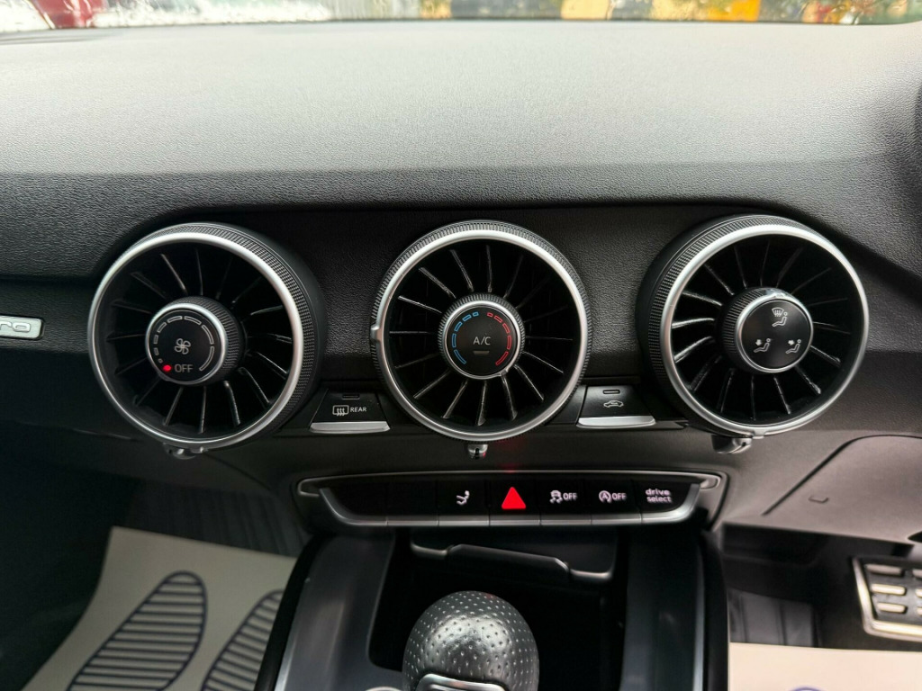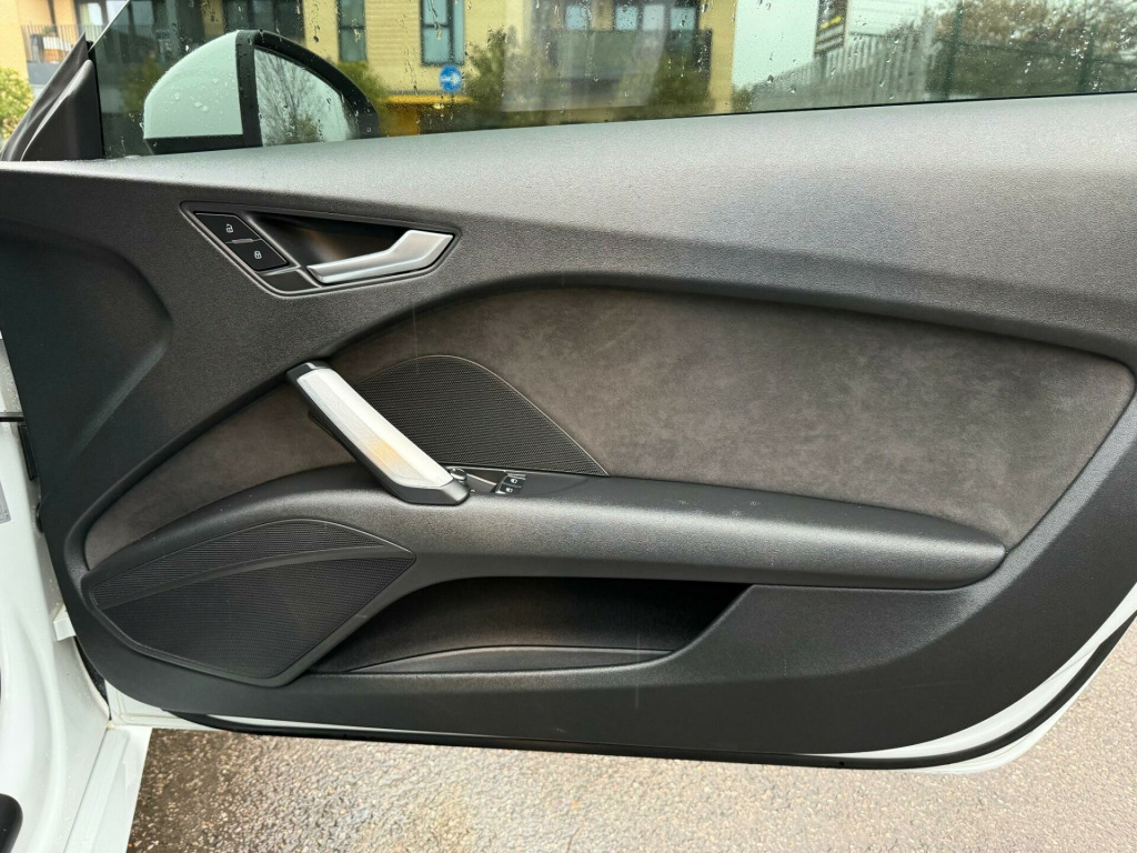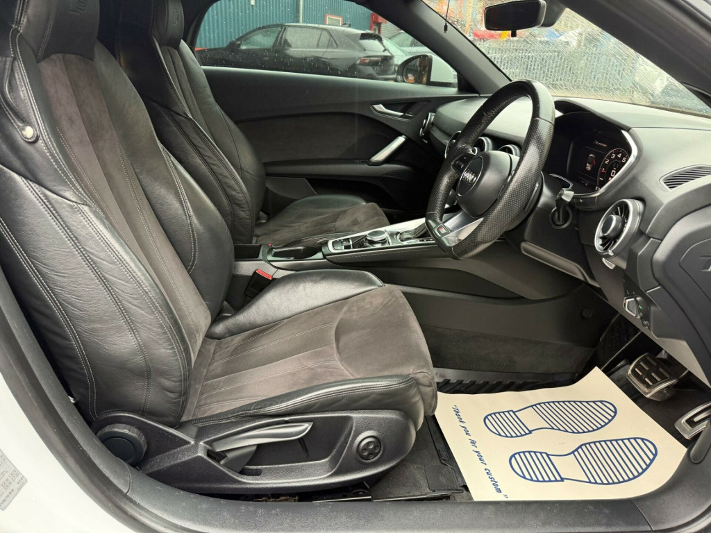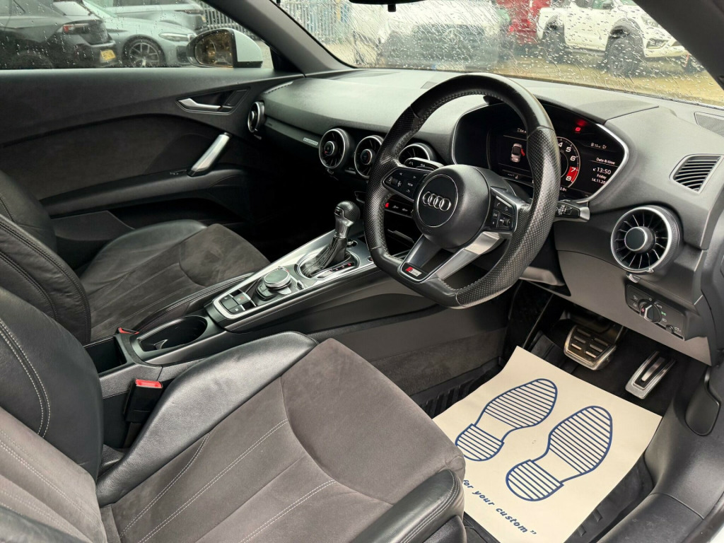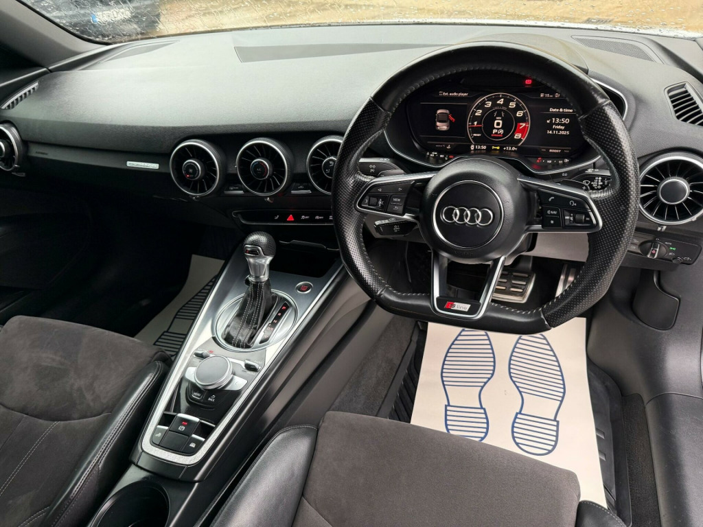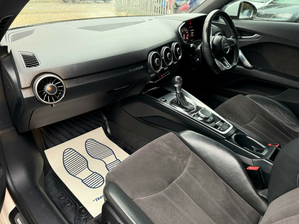 This 2015 Audi TT TFSI S line boasts a clear vehicle history, offering you peace of mind. This stylish coupe features a powerful 2.0 litre petrol engine paired with a four wheel drive system, ensuring excellent traction and performance. As a Euro 6 compliant vehicle, it meets modern emissions standards. Inside, you'll find a well appointed S line trim with practical features such as air conditioning and Bluetooth connectivity for both audio streaming and mobile telephone use. The automatic headlights, which include LED technology and a light sensor, provide enhanced visibility and convenience.The Audi TT TFSI S line offers an exhilarating driving experience, accelerating from 0 to 62 miles per hour in just 5.6 seconds, a performance that sets it apart from many other vehicles in its class. This impressive acceleration is complemented by low CO2 emissions, indicating a more efficient and environmentally conscious drive. Furthermore, this model provides surprisingly large boot space, making it a practical choice for everyday use and weekend getaways alike, demonstrating its versatility beyond its sporty credentials. v power socket, 19in alloy wheels - 5-arm star design, 2 x sdxc card readers, abs - anti-lock braking system, ami - audi music interface, aux-in socket, acoustic hood - fully automatic, air conditioning, airbags - driver, airbags - front passenger, airbags - front side system, airbags - head system, anti theft locking wheel bolts, anti-theft alarm, audi active lane assist, audi drive select, audi virtual cockpit - 12.3in high resolution lcd display, automatic wipers with rain sensor, bluetooth audio streaming, body coloured door mirrors, brake lights - led, bumpers - front and rear - s line design, car jack, dab digital radio, diffuser - rear - platinum grey insert - s line design, door mirrors - built-in led side indicators, door mirrors - electrically adjustable and heated, door sill trims, door sill trims with s line logo, door trim inserts - alcantara, dynamic led indicators - rear, esp - electronic stability programme, electric windows - front, electrically adjustable 4-way lumbar support, electromechanical parking brake, extended aluminium look in interior, fm-am radio, first aid kit, front passenger airbag deactivation switch, front sports seats, fuel computer, gear knob - perforated leather black, gear knob - silver stitching, head restraints - front in leather, headlights - automatic dynamic range control, headlights - automatic range adjustment, headlights - coming-leaving home function, headlights - light sensor, headlights washers, headlining - black, isofix child seat mounting for front passenger, isofix child seat preparation for rear seats with top tether, inlays - matt brushed aluminium, integrated head restraints, keyless go, led daytime running lights, led headlights, led tail lights, light and rain sensor package, mmi radio, mmi touch, manual front seat adjustment, mobile telephone preparation - bluetooth interface, non-smoking package, pedals in stainless steel, pollen filter, progressive steering, radiator grille - high gloss black, remote central locking, roll-over protection bars, s line badge on the steering wheel, s line badges on the front wings, s line body styling, seat - side bolsters in leather, seat belt microphone, seats - alcantara centre section, seats - constrasting silver stitching on upholstery, side sills - s line, speakers x4 - front passive, spoiler - retractable, steering wheel - 3-spoke leather-multifunction-flat bottomed, steering wheel - gear shift paddles, steering wheel - height and reach adjustable, steering wheel - multi-function, steering wheel - silver contrast stitching, steering wheel - sports, sunband for windscreen, tp memo - automatically saves traffic news, tool kit, traction control, tyre pressure loss indicator, tyre repair kit, usb connection, warning triangle, ipod connection
