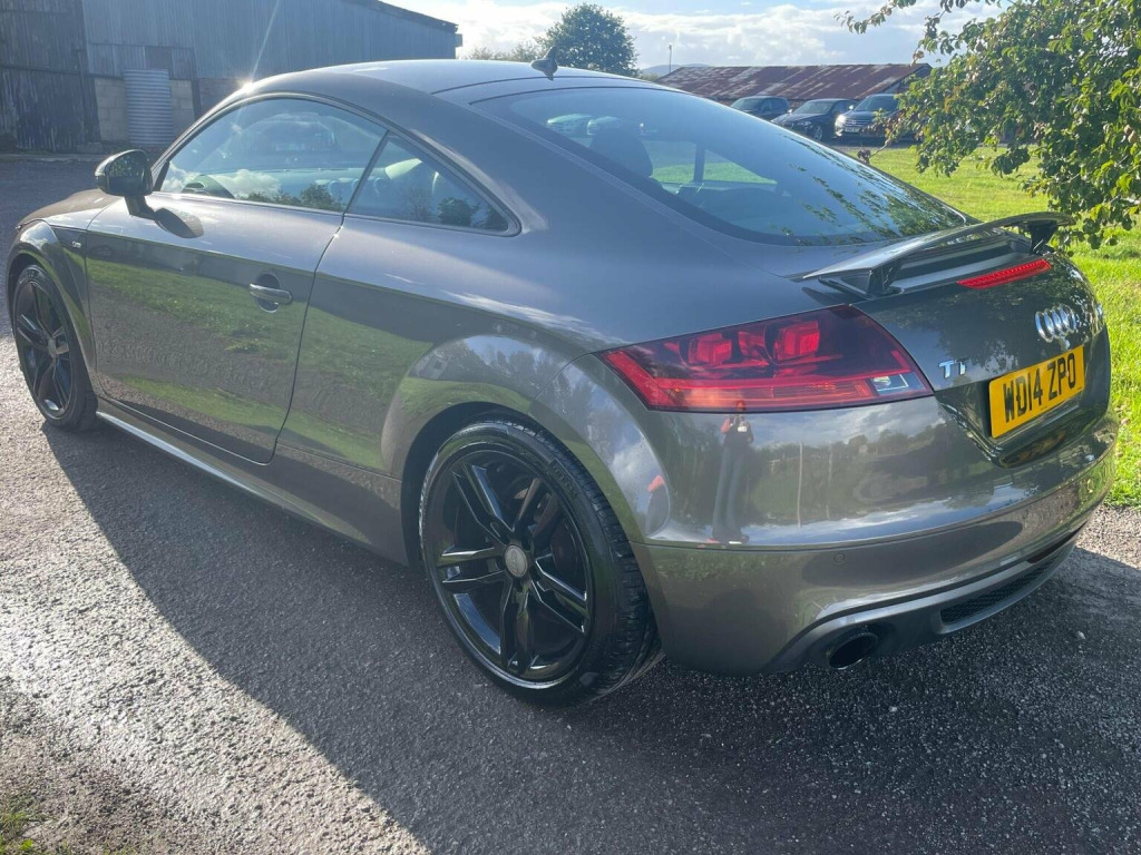 12 MONTH WARRANTY AVAILABLE FOR £249, Just arrived, Autogrange Cars are delighted to present for sale this superb Audi TT Quattro S Tronic, complete with cruise control, automatic lights and wipers, Audi navigation plus, rear parking sensors, both front and rear dash cam fitted, gloss black alloy wheels, MOT until September 2026, total of seven serrvices its last service approximately 2000 miles ago. Drives superbly a great example of an iconic car. Please find below an AI generated description for extra information. This Audi TT TFSI S line from 2014 boasts an impressive history, having had only three owners. This stylish coupe features a powerful 2.0 litre petrol engine paired with a surefooted four wheel drive system, ensuring a dynamic driving experience. The S line trim enhances its sporty appeal, and youll find a host of convenient features including a satellite navigation system, cruise control for relaxed journeys, and mobile telephone preparation with Bluetooth and voice control for seamless connectivity. It also comes equipped with attractive 18 inch alloy wheels in a 10 spoke design. With a commendable fuel economy of 39 miles per gallon, this Audi TT offers an efficient way to enjoy its performance. Its low CO2 emissions further highlight its efficiency compared to similar vehicles. The combination of its desirable S line specification, the advanced technology on board, and its well maintained provenance makes this a compelling choice for anyone seeking a premium sports coupe. 95 percent of our cars are READY TO DRIVE AWAY THE SAME DAY. - Option to extend warranty up to 12 months, - 24 hour insurance available, - Full finance options available , PART EXCHANGE ALWAYS CONSIDERED, NATIONWIDE DELIVERY AVAILABLE. we have a fully lit undercover viewing area, so viewing available day and night rain or shine. visit our website www.autograngecars.co.uk