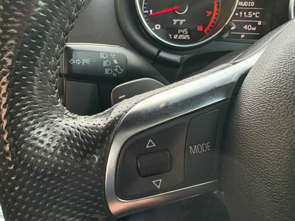 This Audi TT TFSI S line from 2011 boasts exceptionally low mileage for its age, having covered just 62,857 miles, and has been cared for by only three owners. This particular model features the sporty S line trim and is equipped with a capable 2.0 litre petrol engine paired with a four wheel drive system, offering confident handling. It comes with a full service history, with the last service completed at 60,237 miles, and is offered with a three month warranty for your peace of mind.The fuel economy of this Audi TT is a notable highlight, achieving an impressive 39 miles per gallon, which is better than many similar vehicles. Furthermore, its low CO2 emissions contribute to a more environmentally conscious drive. These factors, combined with its excellent provenance and desirable S line specification, make this Audi TT a compelling choice for those seeking a stylish and well maintained sports car.. 18in 5Spoke design Alloy Wheels, 5- channel Amplifier, 9 Speakers, Black headlining, Front Passenger Airbag deactivation, Front Passenger Seat isofix location point, Front Sports Seats, Front floor mats, Height adjust Front Seats, Platinum Grey Front grille, Radio & CD & MP3, S line Sports suspension. Full service history