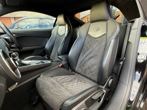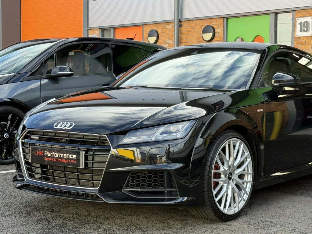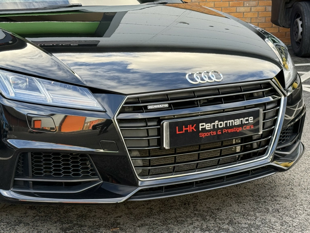 WE ARE PROUD TO OFFER THIS ABSOLUTELY STUNNING AUDI TT 2.0 TFSI QUATTRO FINISHED IN THE BEAUTIFUL MYHTOS BLACK METALLIC! HUGE SPECIFICATION INCL SUPER SPORT SEATS, 20 10 Y SPOKE ALLOYS & MATRIX LED HEADLIGHTS! EXTENSIVE FULL SERVICE RECORD! BEAUTIFUL CONDITION!, , Upgrades/Spec Includes: Mythos Black Metallic Paintwork, Black Super Sport Seats, Bang & Olufsen Audio System, MMI Navigation Plus System, Audi Drive Select, Matrix Beam LED Headlights, Dynamic Cornering Light, Rear Parking Sensors, Tyre Pressure Monitoring System, Audi Active Lane Assist, Leather Centre Armrest, Bluetooth Audio, Telephone Connectivity, Climate Control, Keyless Start, Headlamp Washer System, Audi Connect, Four Way Lumbar Support, Automatic Air Conditioning, Privacy Glass, Auto Dimming & Heated Folding Mirrors, Auto Lights, Auto Wipers. 2 x Keys.