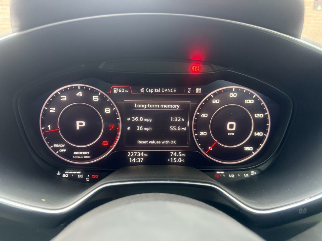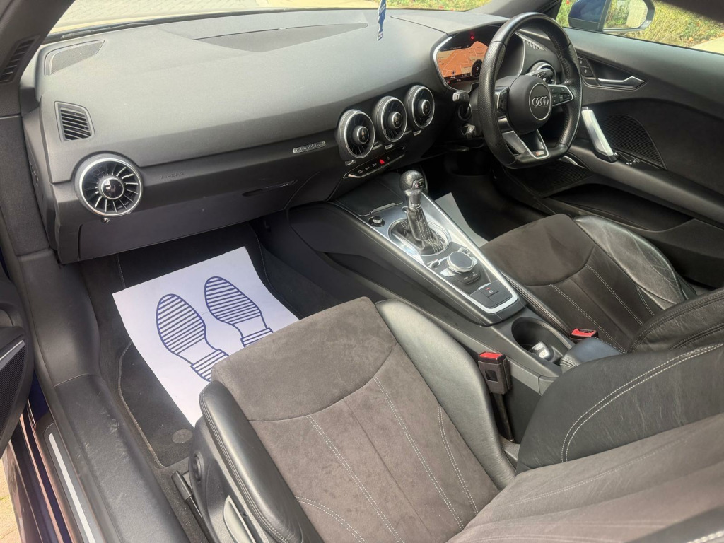 Boasting exceptionally low mileage for its age, this 2017 Audi TT TFSI S line represents a superb example of this popular sports coupe. With only one owner from new and a full service history, this four wheel drive model is presented in excellent condition. It features a responsive 2.0 litre petrol engine, meets Euro 6 emissions standards, and comes with a comprehensive 24 month warranty for your peace of mind. Notable features include All Weather LED headlights, manual air conditioning, Bluetooth mobile telephone preparation, and a light and rain sensor for automatic headlight activation.This Audi TT offers an impressive fuel economy of 43 miles per gallon, a highlight that demonstrates its efficiency compared to similar vehicles. Furthermore, its low CO2 emissions also contribute to its favourable running costs. With just 22,734 miles on the clock, this S line trim vehicle provides a compelling combination of performance, style, and economy, making it an attractive choice for any discerning driver.AMAZING VALUE FOR MONEY VERY LOW MILEAGE OF ONLY 22,703 MILES 1 OWNER COLOUR SCREEN SAT NAV AIR CONDITIONING CLIMATE CONTROL BLUETOOTH DAB RADIO ALLOY WHEELS ELECTRIC WINDOWS POWER STEERING REMOTE CENTRAL LOCKING HEATED LEATHER INTERIOR VERY ECONOMICAL AND RELIABLE CAR DRIVES AND LOOKS SUPERB STUNNING CONDITION CATEGORY S THIS VEHICLE WILL BE SOLD WITH 24 MONTHS FREE COMPREHENSIVE GOLD WARRANTY COVER AND 12 MONTHS AA BREAKDOWN COVER AND A NEW 12 MONTHS MOT NATIONWIDE DELIVERY AVAILABLE BEST PRICE PAID FOR PX FOR MORE INFORMATION OR TO BOOK A VIEWING PLEASE CALL 07597668564 OR 07961645404. 19in Alloy Wheels - 5-Arm Star Design, 4-Way Electric Lumbar Support for Front Seats, ABS - Anti-Lock Braking System, AMI - Audi Music Interface, All Weather LED Headlights, Anti Theft Locking Wheel Bolts, Anti-Theft Alarm, Audi Active Lane Assist, Audi Drive Select, Audi Virtual Cockpit, Bluetooth Mobile Telephone Preparation, Cruise Control, DAB Digital Radio, Door Mirrors - Electrically Adjustable and Heated, Door Sill Trims with S Line Logo, ESP - Electronic Stability Programme, Electric Windows - Front, Electromechanical Parking Brake, Extended Aluminium Look in Interior, First Aid Kit, Flat-Bottomed 3-Spoke Leather-Trimmed Multi-Function Sport Steering Wheel, Front Airbags with Front Passenger Deactivation, Front Centre Armrest, Front Sports Seats, Gear Lever Knob in Black Perforated Leather, Headlining - Black, ISOFIX Child Seat Mounting, Inlays - Matt Brushed Aluminium, Keyless Go, LED Tail Lights, Light and Rain Sensor, MMI Radio, Manual Air Conditioning, Non-Smoking Package, Progressive Steering, Radiator Grille - High Gloss Black, Remote Central Locking, Retractable Rear Spoiler, S Line Badge on the Steering Wheel, S Line Badges on the Front Wings, S Line Body Styling, Seat Belt Monitoring, Split-Folding Rear Seats, Sport Suspension, Tool Kit - Warning Triangle and Car Jack, Traction Control, Tyre Pressure Loss Indicator, Tyre Repair Kit. Full service history