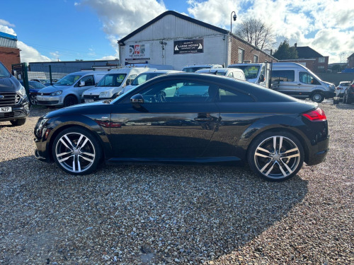 Boasting a full service history up to 138,000 miles and only three previous owners, this 2015 Audi TT TFSI S line offers excellent provenance. It comes with a private registration.This four wheel drive coupe is equipped with a 2.0 litre petrol engine and meets Euro 6 emissions standards. Notable features include the Audi Parking System with rear sensors, automatic headlights with an all weather LED function, and a Bluetooth interface for mobile phone preparation. For your comfort, it also comes with air conditioning.This Audi TT is a compelling choice, offering a strong fuel economy of 43 miles per gallon, which is better than many similar vehicles. Its low CO2 emissions further enhance its appeal. On purchase, you will receive 12 months MOT for your peace of mind, and the vehicle is covered by a 3 month warranty.. 12V Power Socket, 19in Alloy Wheels - 5-Arm Star Design, 2 x SDXC Card Readers, ABS - Anti-Lock Braking System, AMI - Audi Music Interface, AUX-IN Socket, Air Conditioning, Airbags - Driver, Airbags - Front Passenger, Airbags - Front Side System, Airbags - Head System, All Weather LED Headlights, Anti Theft Locking Wheel Bolts, Anti-Theft Alarm, Audi Active Lane Assist, Audi Drive Select, Audi Virtual Cockpit - 12.3in High Resolution LCD Display, Automatic Wipers with Rain Sensor, Bluetooth Audio Streaming, Body Coloured Door Mirrors, Brake Lights - LED, Bumpers - Front and Rear - S Line Design, Car Jack, DAB Digital Radio, Diffuser - Rear - Platinum Grey Insert - S Line Design, Door Mirrors - Built-in LED Side Indicators, Door Mirrors - Electrically Adjustable and Heated, Door Sill Trims, Door Sill Trims with S Line Logo, Door Trim Inserts - Alcantara, Dynamic LED Indicators - Rear, ESP - Electronic Stability Programme, Electric Windows - Front, Electrically Adjustable 4-Way Lumbar Support, Electromechanical Parking Brake, Extended Aluminium Look in Interior, FM-AM Radio, First Aid Kit, Front Passenger Airbag Deactivation Switch, Front Sports Seats, Fuel Computer, Gear Knob - Perforated Leather Black, Gear Knob - Silver Stitching, Head Restraints - Front in Leather, Headlights - Automatic Dynamic Range Control, Headlights - Automatic Range Adjustment, Headlights - Coming-Leaving Home Function, Headlights - Light Sensor, Headlights Washers, Headlining - Black, ISOFIX Child Seat Mounting for Front Passenger, ISOFIX Child Seat Preparation for Rear Seats with Top Tether, Inlays - Matt Brushed Aluminium, Integrated Head Restraints, Keyless Go, LED Daytime Running Lights, LED Rear Lights, Light and Rain Sensor Package, MMI Radio, MMI Touch, Manual Front Seat Adjustment, Mobile Telephone Preparation - Bluetooth Interface, Non-Smoking Package, Pedals in Stainless Steel, Pollen Filter, Progressive Steering, Radiator Grille - High Gloss Black, Remote Central Locking, S Line Badge on the Steering Wheel, S Line Badges on the Front Wings, S Line Body Styling, Seat - Side Bolsters in Leather, Seats - Alcantara Centre Section, Seats - Constrasting Silver Stitching on Upholstery, Side Sills - S Line, Speakers x4 - Front Passive, Split-Folding Rear Seats, Spoiler - Retractable, Steering Wheel - 3-Spoke Leather-Multifunction-Flat Bottomed, Steering Wheel - Gear Shift Paddles, Steering Wheel - Height and Reach Adjustable, Steering Wheel - Multi-function, Steering Wheel - Silver Contrast Stitching, Steering Wheel - Sports, Sunband for Windscreen, TP Memo - Automatically Saves Traffic News, Tool Kit, Traction Control, Tyre Pressure Loss Indicator, Tyre Repair Kit, USB Connection, Warning Triangle, iPod Connection, Audi Parking System - Rear, Audi Sound System, Cruise Control. Full service history