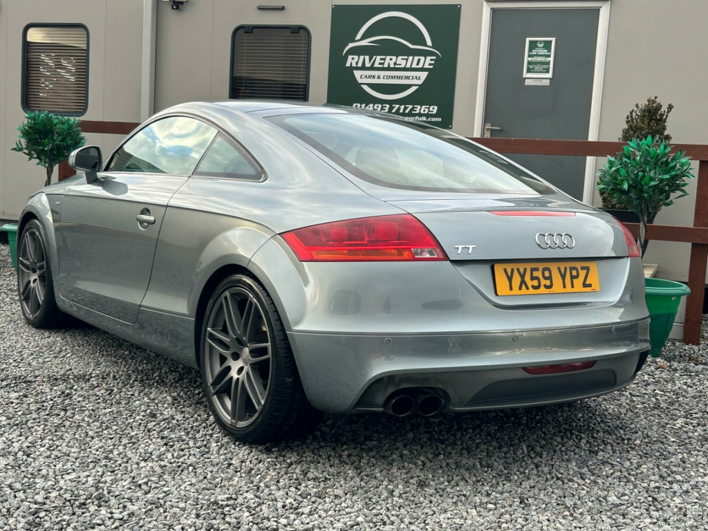 Finished In Grey This 2009 Audi TT TFSI S line Special Edition boasts an impressive provenance, having been owned by only four previous keepers. This particular model features the sought after S line trim, enhancing its sporty appeal. Under the bonnet, you'll find a responsive 2.0 litre petrol engine, paired with a Bluetooth interface for convenient handsfree telephone calls.With a fuel economy of 37 miles per gallon, this Audi TT offers an efficient driving experience. Its low CO2 emissions also indicate a more environmentally conscious choice compared to many vehicles in its class. This combination of performance, efficiency, and desirable features makes this Audi TT a compelling option.At Riverside Cars & Commercial all our customers have the added peace of mind that all our vehicles are supplied with the following, pre delivery inspection, mot, sales service & 1 months parts & labour warranty for total peace of mind. We also have our own workshop facilities on site with use of free courtesy cars available. Part exchange welcome & finance available. We offer both PCP and Hire Purchase agreements, please call us for a free quotation or more information. All of our vehicles have vast specifications, in most cases, far to much too list, so please always check the vehicles exact specification prior to purchase as this is out of our control. Vehicle information is fed via Autotrader. We always have at least 50 vehicles in stock to choose from. For a personalised walk round video or more information please call Tel : 01493 717369, in 5 segment spoke design alloy wheels, 19in 7 twin spoke design alloy wheels, 19in 7 twin- spoke titanium look design alloy wheels, bluetooth interface for handsfree telephone, front passenger airbag deactivation, front passenger seat isofix location point, front sports seats, front floor mats, height adjust front seats, radio & cd & mp3, s line sports suspension, scuff plates with metal inlays