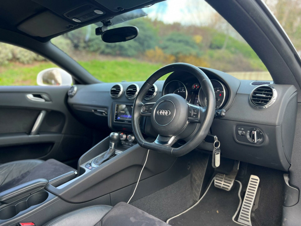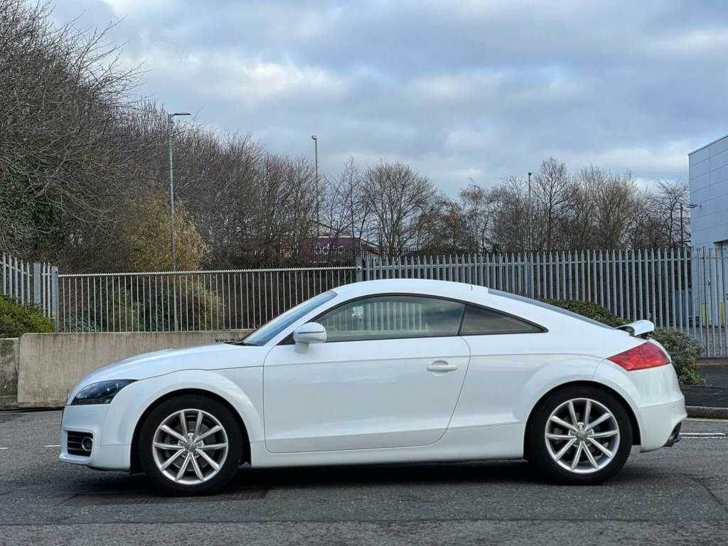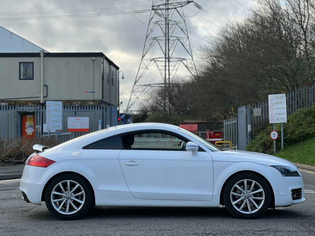2011 Audi TT Sport S Tronic 2.0 TFSI finished in white. Only 56331 warranted miles on the clock. Comes with a 12 month warranty! MOT til 28th January 2026. Car drives well with no mechanical faults. Full V5 available. Comes with a top spec including; alloy wheels, leather steering wheel, multifunctional steering wheel, Radio/CD, electric windows, central locking, AC/Climate control, Alcantara seats, Satellite Navigation, privacy glass, parking sensors, TPMS, cup holders and many more. Nationwide Delivery Available. P/X Welcome. HPI Clear. ULEZ compliant. Any questions do not hesitate to contact us on 07443456706 in 5spoke v design alloy wheels, 3spoke sports leather steering wheel, 5- channel amplifier, 9 speakers, front passenger airbag deactivation, front passenger seat isofix location point, front sports seats, front floor mats, height adjust front seats, radio & cd & mp3, scuff plates with metal inlays