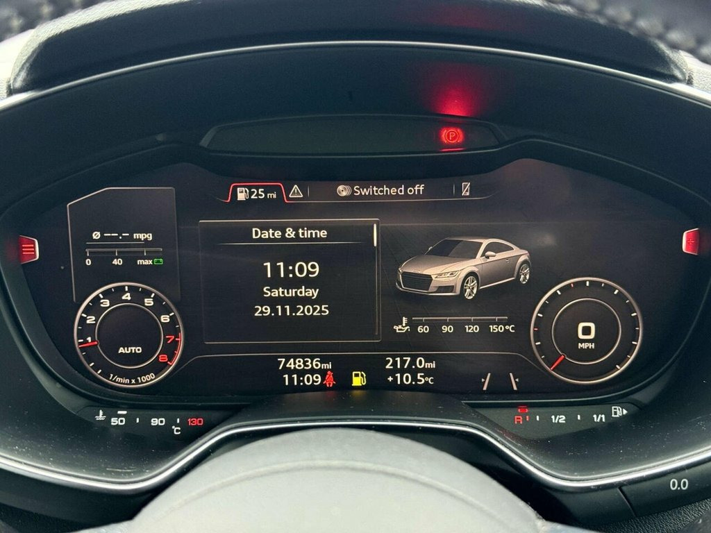 Introducing the stunning Audi TT 2.0 TT S Line TFSI 3dr in a sleek Grey finish. This iconic sports car combines cutting-edge technology with a powerful performance, making every drive an exhilarating experience. With its distinctive S Line styling, the Audi TT exudes sophistication and sportiness. The 2.0 TFSI engine delivers impressive power and efficiency, ensuring a thrilling ride every time you hit the road. Step inside the Audi TT and you'll be greeted by a luxurious interior that is both stylish and comfortable. Packed with advanced features and premium materials, this car offers the perfect blend of elegance and performance. Don't miss your chance to own the Audi TT 2.0 TT S Line TFSI 3dr in Grey. Visit our showroom today and experience the thrill of driving this exceptional sports car for yourself. We are open 7 days a week, and prepare all of our cars to the highest standards. We have a Click & Collect option available, and can also arrange delivery on request. All cars are HPI clear and a full history report is provided with every car. We welcome any inspection and viewing is highly recommended. All cars are available with our AA warranty. Debit and credit card facilities are available and we offer competitive finance packages. If you have any questions or would like to view any of our cars give us a call or drop us a message on whatsapp 01483 363 144 to arrange an appointment with one of our team. We also offer full bespoke walkaround videos on request. We ar Tyre Repair Kit, Tyre Pressure Loss Indicator, Traction Control, Tool Kit - Warning Triangle and Car Jack, Sport Suspension, Split-Folding Rear Seats, Seat Belt Monitoring, Bluetooth Mobile Telephone Preparation, Flat-Bottomed 3-Spoke Leather-Trimmed Mu, First Aid Kit, Extended Aluminium Look in Interior, Electromechanical Parking Brake, Electric Windows - Front, ESP - Electronic Stability Programme, Door Sill Trims with S Line Logo, Door Mirrors - Electrically Adjustable a, DAB Digital Radio, Cruise Control, Front Airbags with Front Passenger Deact, Audi Virtual Cockpit, Audi Drive Select, Audi Active Lane Assist, Anti-Theft Alarm, Anti Theft Locking Wheel Bolts, All Weather LED Headlights,