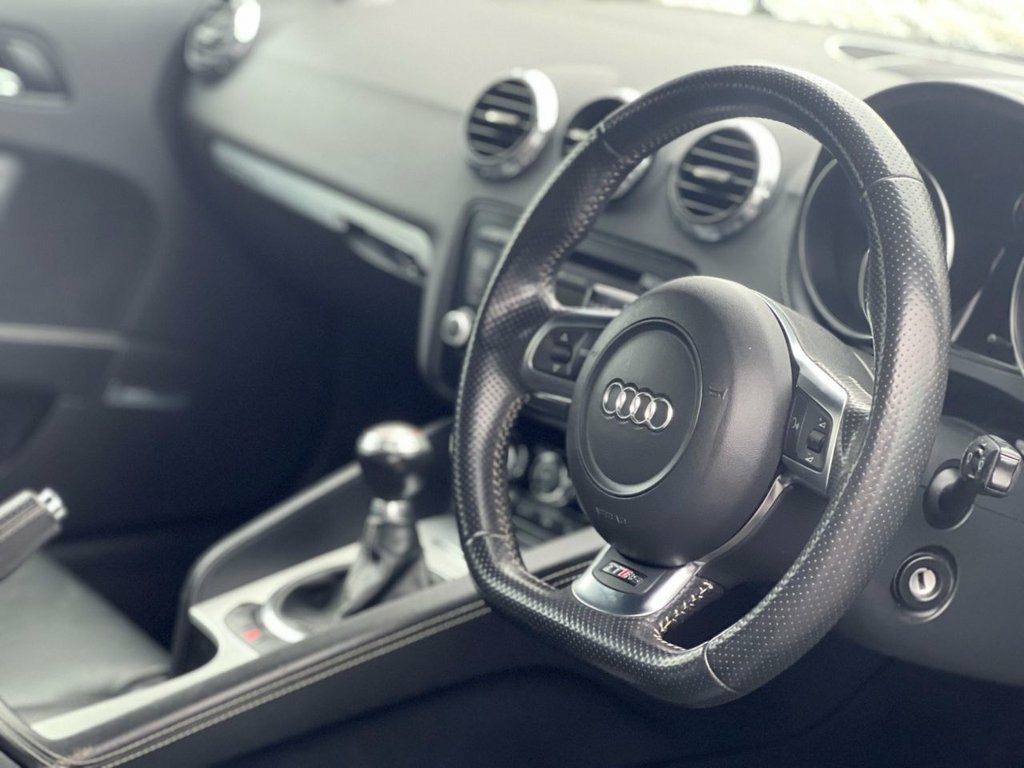 Stringers of Petersfield are pleased to present our stunning Audi TTRS finished in Phantom black pearl metallic with a full Silk Nappa leather interior and complimented by a full service history. Services have been recorded at 8211, 13708, 20019, 26987, 41772, 51666, 63781, 80902 and 89000 miles with Haldex change Acoustic Parking System- Rear, Tyre pressure monitoring System, Leather- Silk Nappa- Black, iPod connection, Privacy Glass, BOSE surround Sound, Pearlescent paint, Matt Aluminium styling Pack RS, 19in 5Arm rotor Alloy Wheels, Phantom Black, Bluetooth Telephone preparation, 18in 5 double Spoke Alloy Wheels, 5- channel Amplifier, 9 Speakers, Front Passenger Airbag deactivation, Front Passenger Seat isofix location poi, Front Sports Seats, Height adjust Front Seats, High beam Assist with Auto dimming Rear , Radio & CD & MP3, Rear spoiler, Retractable Rear spoiler, TT RS specification Sports suspension