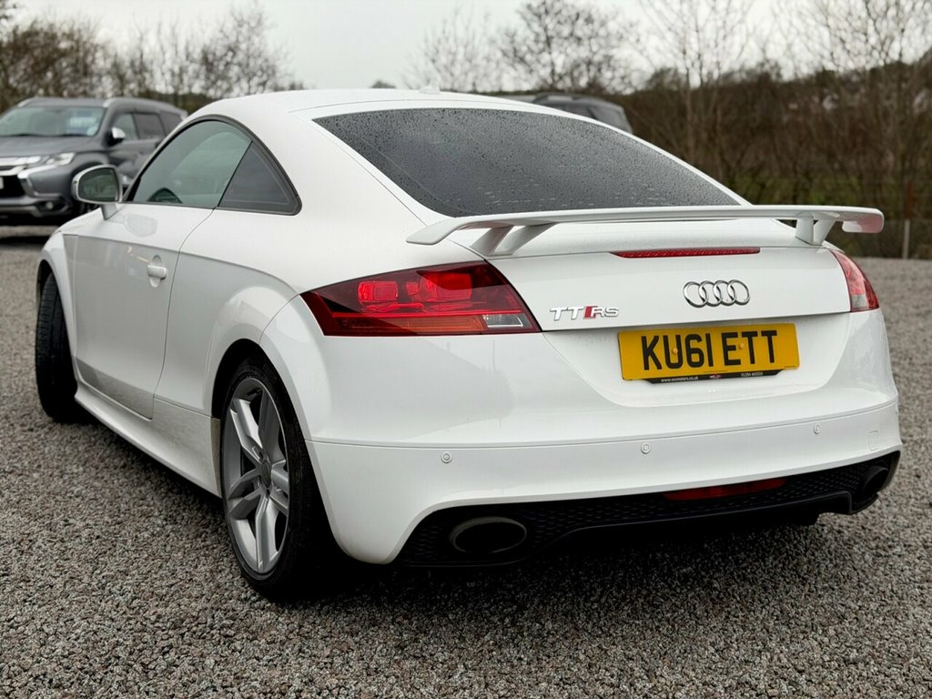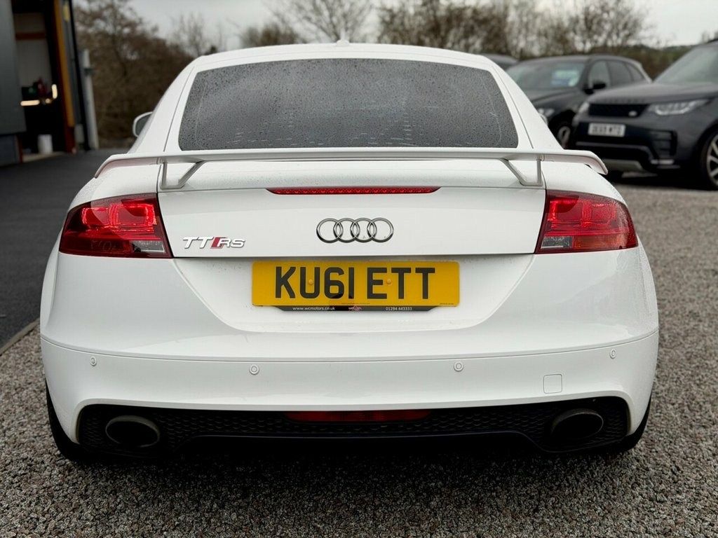 2011 (61) AUDI TTRS 2.5 QUATTRO West Coast Motors are proud to be supplying this stunning 2011 (61) Audi TTRS coupe, finished in Ibis white with heated black leather interior. This example has covered 99,000 miles from new with great documented service history present which can be provided on request. Throughout this car it presents itself in lovely condition with very little wear throughout. From standard these cars come well spec'd with this one having some nice optional extras including rear parking system,Audi NAV plus/MMI, cruise control, privacy glass, auto lights/wipers, power fold mirrors, bi-xenon headlights, fine Nappa leather and more! Faultless on the road, great power delivery and the infamous TTRS 5 cylinder engine note. 2 keys present, 4 previous owners Get in touch to reserve your new car today! Part exchange welcome Low rate finance Debit/credit cards accepted 01294 443333 www.wcmotors.co.uk Acoustic Parking System - Rear, Satellite Navigation System - DVD-based, Technology Package, Interior Light Package, Matt Aluminium Styling Package, Light and Rain Sensor Package, 18in Alloy Wheels - 5-Double-Spoke Desig, ABS - Anti-Lock Braking System, ASR - Anti Slip Regulation, AUX-IN Socket, Airbags - Driver, Airbags - Front Passenger, Airbags - Front Side System, Alarm - Thatcham Category 1, Concert Radio - MP3-CD Player, Door Mirrors - Electrically Adjustable a, Drivers Information System - DIS, EBD - Electronic Brakeforce Distribution, ESP - Electronic Stability Programme, Electric Windows - Front, Electronic Climate Control, Extended Leather Package, Floor Mats - with Silver Leather