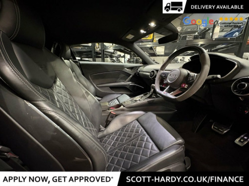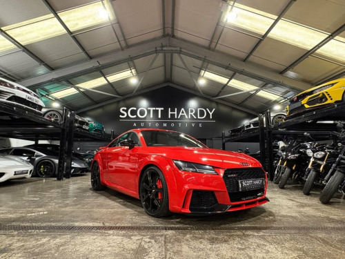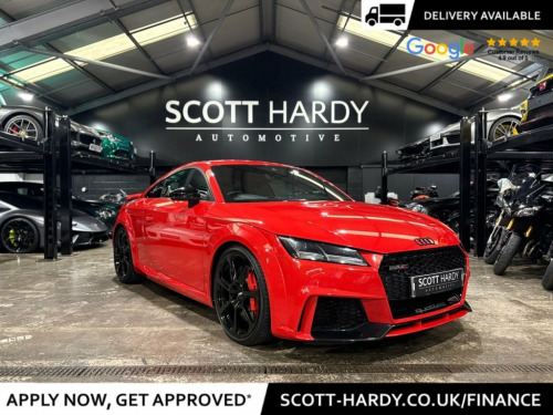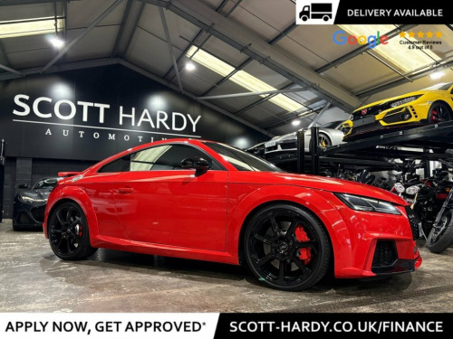 Scott Hardy automotive are proud to present this stunning AUDI TT RS 2.5 TFSI Coupe. Feel the pulse of performance in every curve with the Audi TTRS — a masterpiece sculpted in Misano Red. Its aggressive stance is amplified by 20" alloy wheels in 7-spoke rotor design, finished in gloss anthracite black with diamond-cut edges that shimmer with motion. Slide into a cockpit wrapped in carbon fibre inlays, where luxury meets motorsport heritage. The RS Sports Exhaust roars with intent, while the Bang & Olufsen sound system surrounds you in acoustic brilliance. Heated, auto-dimming, power-folding mirrors and High Beam Assist ensure clarity and control, day or night. With the Sound and Comfort Package, every journey becomes a symphony of refinement and adrenaline. Privacy Glass, Electrically Adjustable Front Seats, Fine Nappa Leather - Super Sport Seats -, Audi Magnetic Ride with RS Sport Suspens, Inlays - Carbon, Headlights - High-Beam Assist, Misano Red, Comfort and Sound Package, RS Sports Exhaust System, Gloss Carbon Door Mirrors, Door Mirrors - Heated-Electrically Adjus, 20in Alloy Wheels - 7-Spoke Rotor Design, 19in Alloy Wheels - 5-Arm Polygon Design, 4-Way Electric Lumbar Support for Front , ABS - Anti-Lock Braking System, AMI - Audi Music Interface, Anti Theft Locking Wheel Bolts, Anti-Theft Alarm, Audi Active Lane Assist, Audi Beam - Exterior Puddle Lighting wit, Audi Connect Infotainment Services - 36 , Audi Drive Select, Audi Parking Syste