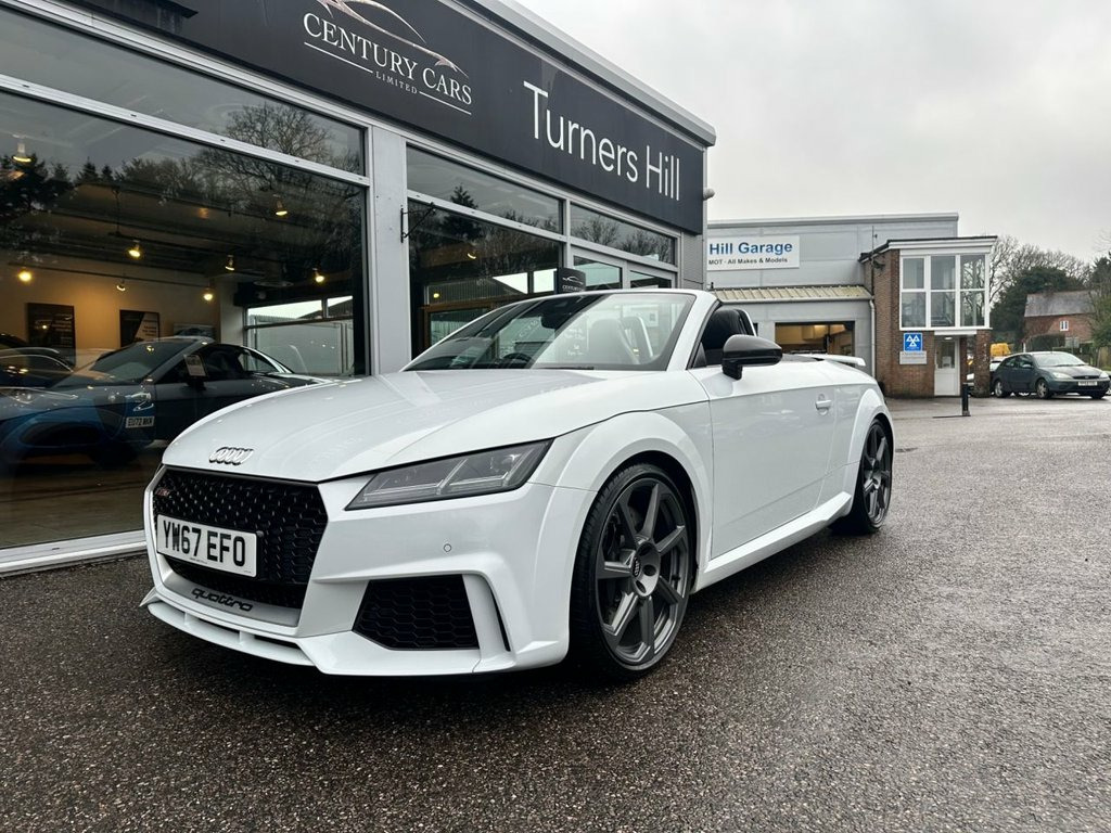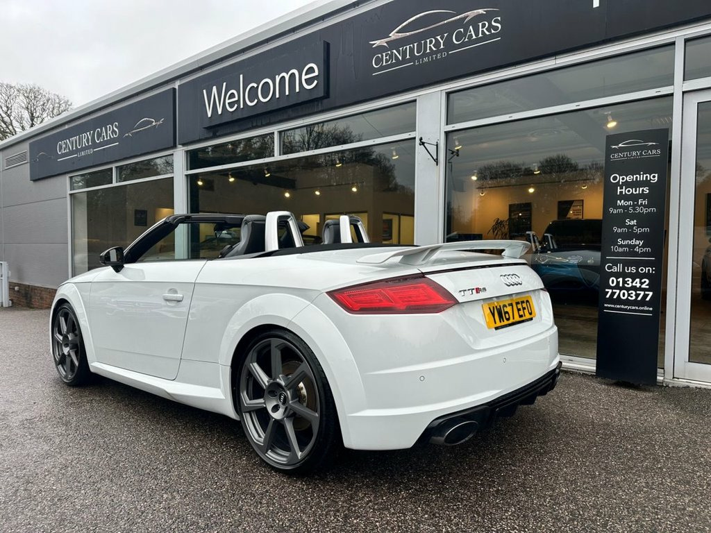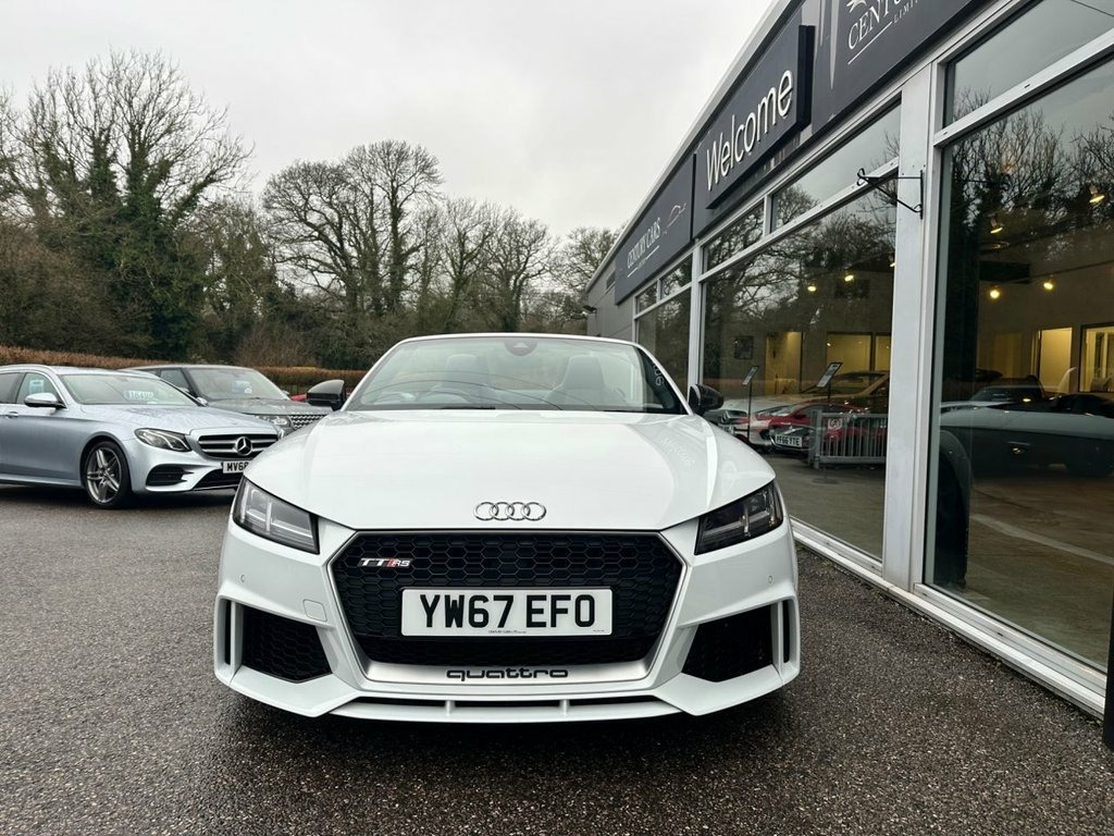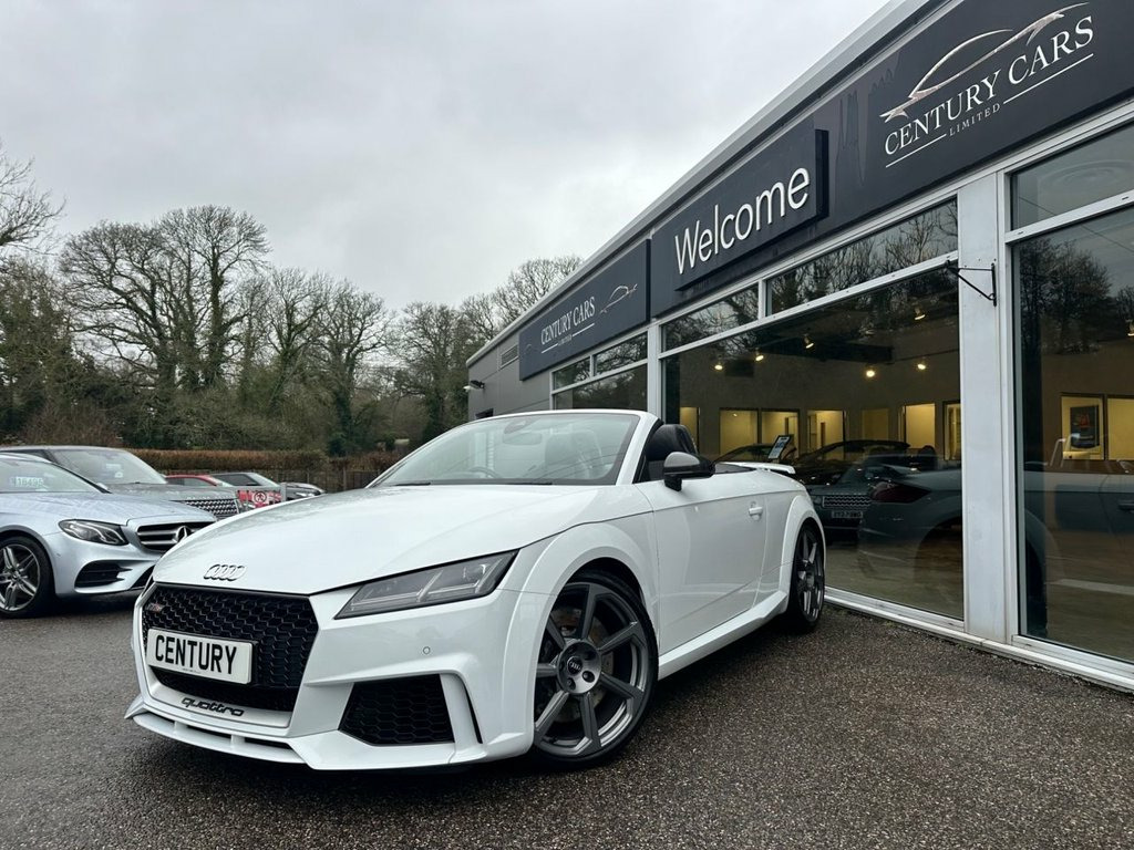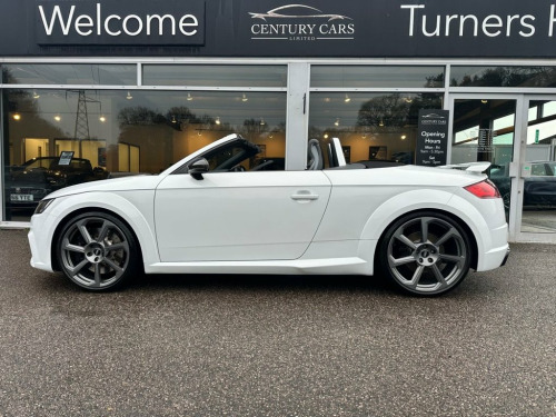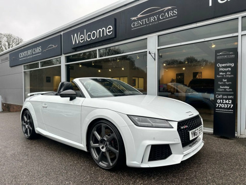 This Audi TT RS 2.5 Quattro Roadster Automatic. Has covered only 33304 miles benefiting from a full service history. A total credit to its former keeper who has simply maintained and cherished this RS to the highest of standards. A truly stunning example in every aspect and must be viewed to be appreciated. Offered for sale by Century Cars of West Sussex. Tailored Finance Packages and Nationwide Delivery. Fine Nappa Leather - Super Sport Seats -, Inlays - Carbon, 20in Alloy Wheels - 7-Spoke Rotor Design, Glacier White, 19in Alloy Wheels - 5-Arm Polygon Design, 4-Way Electric Lumbar Support for Front , ABS - Anti-Lock Braking System, AMI - Audi Music Interface, Anti Theft Locking Wheel Bolts, Anti-Theft Alarm, Audi Active Lane Assist, Audi Beam - Exterior Puddle Lighting wit, Audi Connect Infotainment Services - 36 , Audi Drive Select, Audi Parking System Plus, Audi Sound System, Audi Virtual Cockpit, Auto-Dimming Rear-View Mirror, Black Hood, Bluetooth Interface, Brake Calipers - Painted Black with TT R, Cruise Control with Speed Limiter, DAB Digital Radio, Deluxe Automatic Air Conditioning w