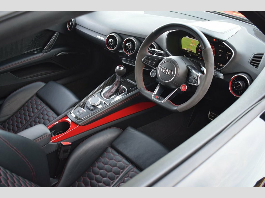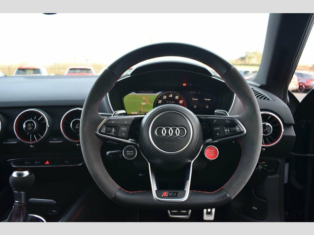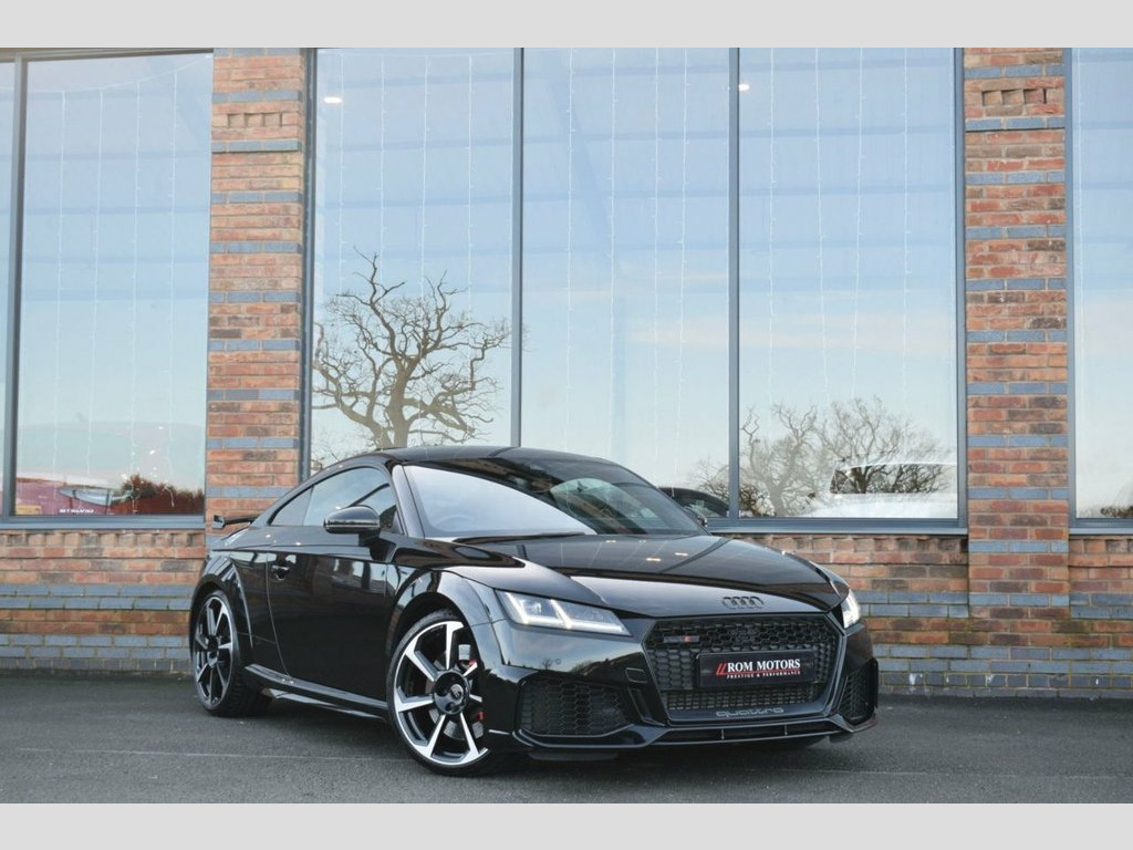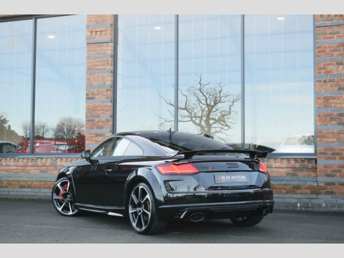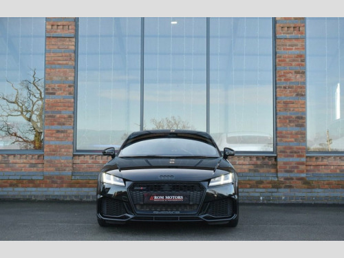 Rom Motors are delighted to offer this beautiful Mythos Black Metallic Audi TTRS for sale. Our example is extremely well specified and finished in the stunning Mythos Black! This car has the 'must have' optional comfort and sound pack including Bang and Olufsen and convenience key. On top of all that there's more, some subtle styling changes like its Red RS Brakes and the RS styling pack in red which adds lots of lovely red details on the inside. And thats with out mentioning its famous 2.5L turbo charged 5 cylinder under the bonnet. Couple that with their Quattro drive system and you have an amazing all rounder. Finished with an excellently documented Audi service history, freshly prepared for sale by our in house specialist technician. Fine Nappa Leather - Super Sport Seats -, RS Styling Package - Red, Comfort and Sound Package, Brake Calipers - Red, Mythos Black, 20in Alloy Wheels - 7-Spoke Rotor Design, 4-Way Electric Lumbar Support for Front , All Weather LED Headlights, Anti Theft Locking Wheel Bolts, Anti-Theft Alarm, Audi Active Lane Assist, Audi Connect Infotainment Services (36 M, Audi Drive Select, Audi Phone Box with Wireless Charging, Audi Smartphone Interface, Audi Sound System, Audi Virtual Cockpit with RS Specific Di, Black Door Mirrors, Black Styling Package, Bluetooth Interface, Brake Calipers - Painted Black with TT R, Coloured Interior Elements in Slate Grey, Cruise Control with Speed Limiter, DAB Digital