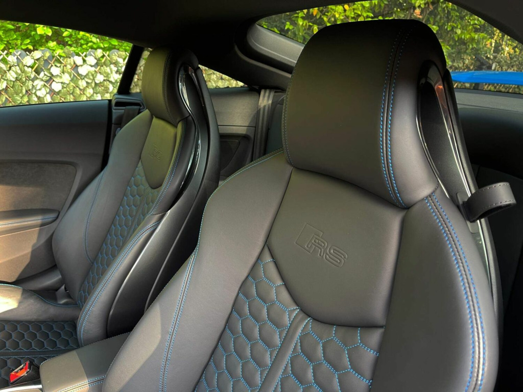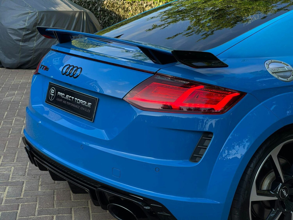 We are delighted to offer you this stunning and rare Audi TT RS Sport Edition finished in arguably the best colour combination; Turbo Blue Metallic with Fine Nappa Leather Sport Seats with Ara Blue Stitching. This hand-picked example is accompanied with a Full Audi Service History, serviced every year in-line with the Manufacturers requirements - the most recent service was carried out by Glasgow Audi on 13.04.23 at 13,618 miles with a Clean Bill of Health, this vehicle comes together with two keys and the original manuals. This Sport Edition variant from the RS division comes extensively equipped as standard with the addition of some striking features over the standard model, some of which include the following; Audi Sport Engraved 20 Diamond Turned Gloss Black Alloy Wheels, Sports Exhaust System as well as much more sportier looks with Gloss Black Exterior Styling. In addition, this particular example is equipped with some very desirable OPTIONS, these include; Turbo Blue Paintwork (£575 option), Fine Nappa Leather Sport Seats with Ara Blue Stitching, Comfort Pack (includes Park Assist Plus with Reversing Camera & Heated Seats), Sound Pack (Bang & Olufsen 3D Sound System). This striking yet subtle iconic sports coupe offers super-car killing performance from its thumping 400 bhp TFSI engine whilst providing superior levels of craftmanship & comfort too, this is a loving & cared-for example not to be missed. One Previous Owner, Brand New Set of Yokohama Advan Sport Premium Tyres Fitted, Professionally Detailed with 12 Months Premium Warranty Included. ***AVAILABLE FROM 12.06.23***RESERVE ONLINE VIA OUR WEBSITE (www.projecttorqueltd.co.uk)***