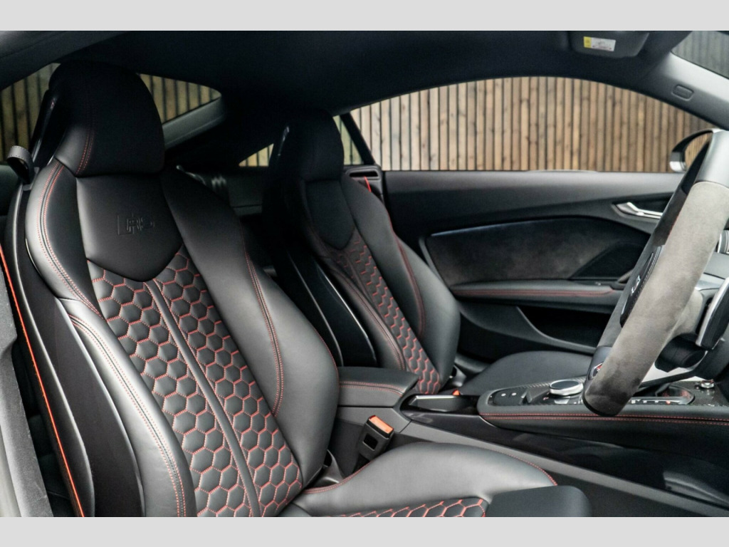 This 2024 Audi TT RS TFSI Sport Edition presents an exceptional opportunity with its remarkably low mileage of just 5750 miles. This four wheel drive model boasts a powerful 2.5 litre petrol engine and meets Euro 6 emission standards. Inside, you'll find a host of premium features designed for comfort and convenience, including deluxe automatic air conditioning with integrated digital displays for climate control, all weather LED headlights, and a Bluetooth interface. The Audi Phone Box with wireless charging ensures your devices stay powered, while heated front seats provide extra comfort on colder journeys.The performance of this Audi TT RS is truly impressive, with a rapid 0-62mph acceleration time of just 3.7 seconds, demonstrating its superior capability compared to many other vehicles. This model also offers a respectable fuel economy of 32 miles per gallon, alongside low CO2 emissions, making it a more efficient choice. The Sport Edition trim further enhances the driving experience, combining exhilarating performance with advanced technology and comfort.. 20in Alloy Wheels - 7-Spoke Rotor Design - Gloss Anthracite Black - Diamond Cut Finish, All Weather LED Headlights, Anti Theft Locking Wheel Bolts, Anti-Theft Alarm, Audi Connect Infotainment Services (36 Month Subscription From New), Audi Drive Select, Audi Phone Box with Wireless Charging, Audi Smartphone Interface, Audi Sound System, Audi Virtual Cockpit with RS Specific Display, Black Door Mirrors, Black Styling Package, Bluetooth Interface, Brake Calipers - Painted Black with TT RS Logo, Coloured Interior Elements in Slate Grey, Cruise Control with Speed Limiter, DAB Digital Radio, Deluxe Automatic Air Conditioning with Integrated Digital Displays, Door Sill Trims with Aluminium Inlays and TTRS Logo, ESC - Electronic Stabilisation Control with Sport Mode inc ABS - EBD - ASR - EDL, Electric Windows - Front, Extended Leather Package, Exterior Mirrors - Electrically Adjustable - Heated and Folding - Automatically Dimming on Both Sides - Including Automatic Kerb-Side Function for the Passenger-Side, First Aid Kit and Warning Triangle, Front Airbags with Front Passenger Deactivation, Head Level Airbags, Headlights - High-Beam Assist, Heated Front Seats, Hill Hold Assist, ISOFIX Child Seat Mounting for Front Passenger with Airbag Deactivation, ISOFIX Child Seat Mounting for Rear Seats, Inlays - Carbon, Keyless Go, LED Interior Lighting Pack, Light and Rain Sensor, MMI Navigation Plus including MMI Touch, Online Media Streaming, Pedals and Footrest - Stainless Steel, Privacy Glass, Progressive Steering, RS Body Styling, RS Brake System, RS Gear Lever Knob - Alcantara, RS Sports Exhaust System, RS Sports Suspension, TT RS Fixed Rear Wing, TTRS Badge on the Steering Wheel, TTRS Exhaust Sound Button in Centre Console, TTRS Sport Leather and Alcantara Multi-Function Steering Wheel, Tool Kit, Tyre Pressure Warning Light, Tyre Repair Kit, Comfort and Sound Package, RS Styling Package - Red, Brake Calipers - Red.