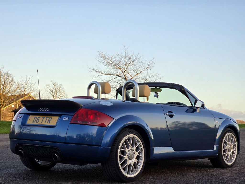 At Kass Classics We Are Offering This Stunning Exceptionally Well Maintained And Cherished Audi TT 3.2 V6 Roadster DSG Quattro 2dr Finished In This Beautiful And Rare Colour Combination. This TT Is An Absolute Thrill To Drive! The 3.2 V6 Engine Is A Masterpiece Mated To The Slick DSG Gearbox Which Changes Gears Effortlessly, Thanks To The Quattro 4WD System It Handles Amazing And Grips The Road Perfectly. This Audi TT Comes With Matching Premium Michelin Pilot Sport 5 Tyres. , The Service History On This Car Is Impressive Which All Invoices Present. Pre Delivery Inspection Carried Out By Audi Sheffield 11 Nov 2004, Following Services At 7958 Miles, 17922 Miles, 24154 Miles (Including Haldex Oil + Filter), 27847 Miles (Full Service Including All Filters + Spark Plugs, Front Brake Pads, Rear Anti Roll Bar + Bushes, New Front Shock Absorbers, Gearbox Mechatronic Repair), 36810 Miles (Including Filters, Spark Plugs, DSG Oil + Filter Service, Haldex Oil + Filter Service, Rear Brake Discs + Pads, Four Wheel Alignment), 40287 Miles, 42049 Miles, 46136 Miles (Including Haldex Service + New Rear Shock Absorbers), 48277 Miles (Including All Filters + Spark Plugs, Front Brakes), 51077 Miles, 53522 Miles, 56302 Miles, 58021 Miles (Including Wheel Refurbishment, New Rear Suspension Arms, Rose Joints, Brake Lines, Brake Fluid, Spark Plugs, Haldex Service), 60150 Miles, 61716 Miles, Last Service And MOT Carried Out By Vasstech Including Haldex Oil Change Due To Leaking Seal, Full Health Carried Out With Paperwork Present. This Audi TT Is A Wonderful Example That Has Has Clearly Been Well Maintained Since New With No Expense Spared, It Drives Like New With No Exceptions And Is In Excellent Condition Throughout. The Specification Is Fantastic Which Includes The Bose Surround Sound, 6 Stage Heated Seats, Xenon Headlamps, Full Leather Interior, Multi Spoke Alloy Wheels, Wind Deflector etc. Visit www.kassclassicsautos.co.uk, Nationwide Delivery Available Please Ask, Part Exchange Welcome. Excellent bodywork, Full leather interior - Excellent Condition, Tyre condition Excellent, Four wheel-drive, 2 seats, Metallic Blue, Upgrades - BOSE Sound System, Concert Radio with Front Loading CD Player, 8Jx18in Cross Spoke Alloy Wheels 225/40, Metallic Paint, Standard Features - Adjustable Steering Column/Wheel, Air Bag Driver, Air Bag Passenger, Air Bag Side, Alarm, Alloy Wheels (18in), Anti-Lock Brakes, Body Coloured Bumpers, Central Door Locking, Climate Control, Computer (Driver Information System), Electric Windows (Front), Electronic Stability Programme, Front Fog Lights, Head Air Bags, Head Restraints, Headlamp Washers, Immobiliser, In Car Entertainment (Radio/Cassette), Mirrors External, Power-Assisted Steering, Seat Height Adjustment, Spare Wheel (Space Saver), Speakers, Upholstery Leather, Xenon Headlights, Appointments Only. £8,990