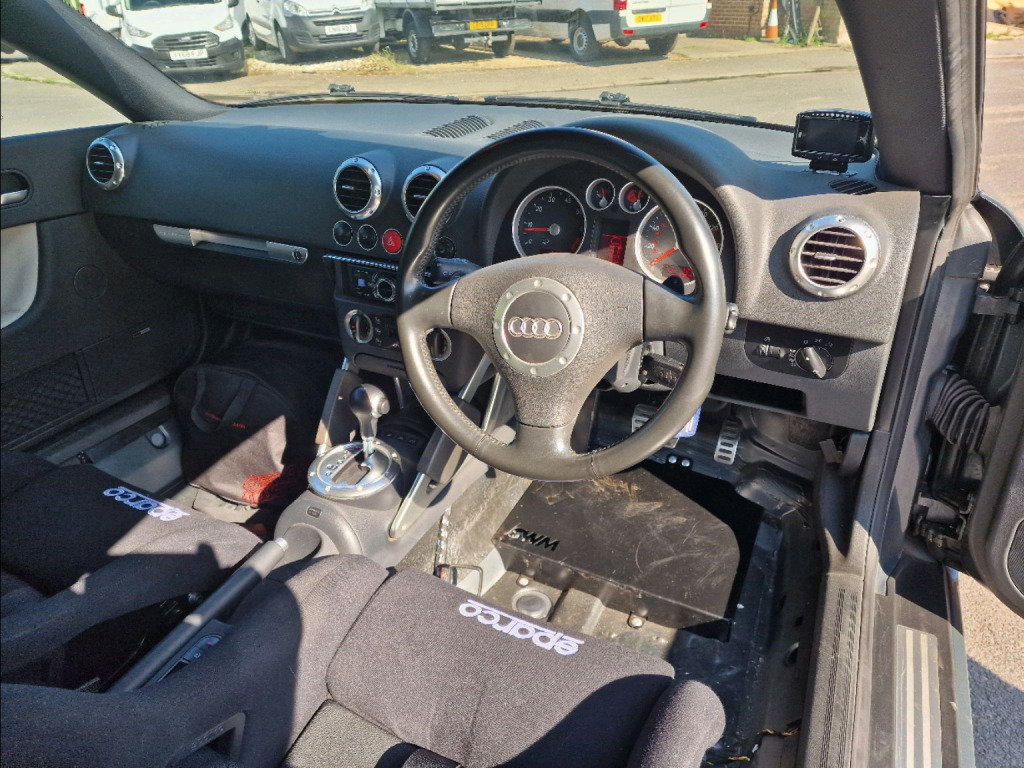 A much sought after 3.2 V6 Audi TT with all the upgrades to make it a fun Track day toy!In the last 500 miles the car has had fitted.4 New Michelin Pilot Sport 4 tyresEBC Grooved and drilled discs all round with yellowstuff pads.Vogtland Coilover kitSparco 6 Point Club Racer HarnessSparco Evo L fibreglass seats on seat runnersHalf Roll CageHPA Motorsports 4wd programmerNew oil and filters on the gearbox and haldex unitAir filter induction kitFloor foot rest.New suspension bushes.It has been kept inside an Air conditioned building for the last couple of years and been driven round Goodwood Race track 3 times. Great fun and very easy to drive.I Moted it last year and haven't done 1 miles since.The car has full service history and in great condition.Also I have all the seats, carpet, trims etc that have been removed from the car.Private plate can stay on the car or be removed. justable steering column/wheel, climate control, electric windows (front), in car entertainment (radio/cassette), air bag driver, air bag passenger, alarm, anti-lock brakes, front fog lights, immobiliser, alloy wheels (18in), body coloured bumpers, computer (driver information system)