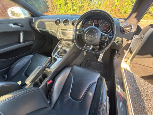 I was pleased to buy this car on so many levels. Firstly, it?s a belter. Secondly we sold her last time around two years ago so I am doubly sure it?s a belter. We also timing belted her last time aswell so don?t need to do that this time. Thirdly, it gave me the opportunity to reacquaint with the lovely lady that bought the car two years ago, and wish her all the best with her new husband and her new life as they emigrate to foreign parts. I had to get that in as I know she will read this. Anyhoo, on to the Audi. White in colour, refurbished mint condition gloss black alloys, full black leather, Bose, three remote keys? A perfect driver, no smoke no rattles, no lag, invoice for recent new clutch kit as well. Fabulous car owned by a fanatic and previous TT owner, who other than for leaving the country would not be up for sale. Come quick, buy the best one. This TT is on the private plate which we can remove after sale at our cost, she will revert to a 2010 age related plate. Yes we take part exchange and yes we arrange finance over a short period like 24 months. 18in Alloy Wheels, ABS, Air Conditioning, Alarm, Alloy Wheels, Automatic Rearview Mirror Dimming, Body Coloured Bumpers, Central Locking, Climate Control, ESP, Electric Windows, Four Wheel Drive, Heated Door Mirrors, MP3, Power Assisted Steering, Privacy/Tinted Glass, Radio, Sports Suspension, Traction Control