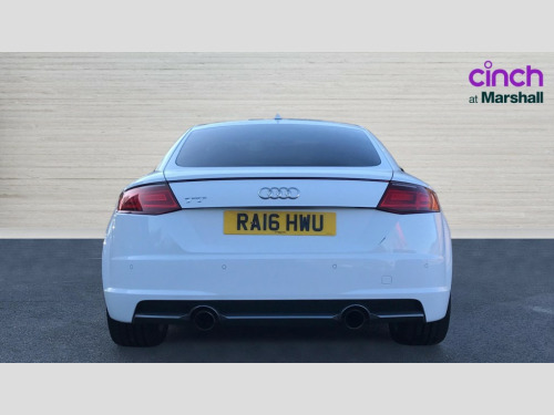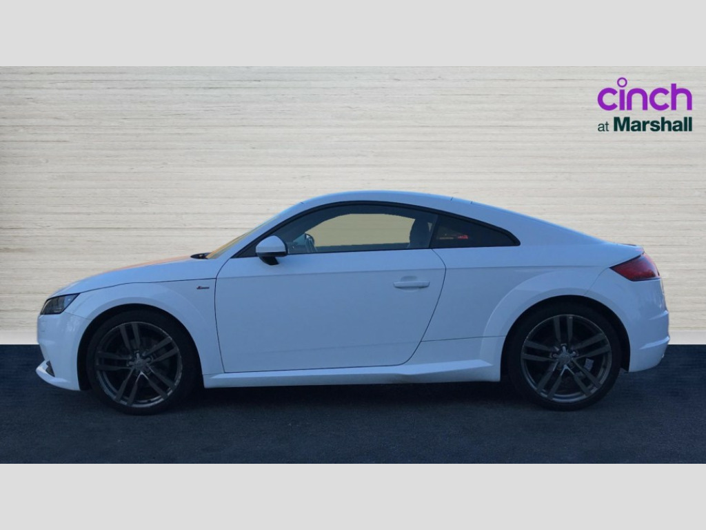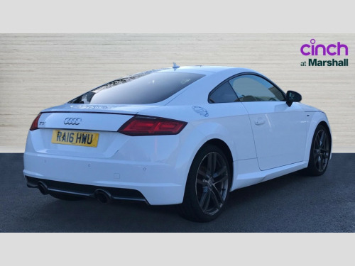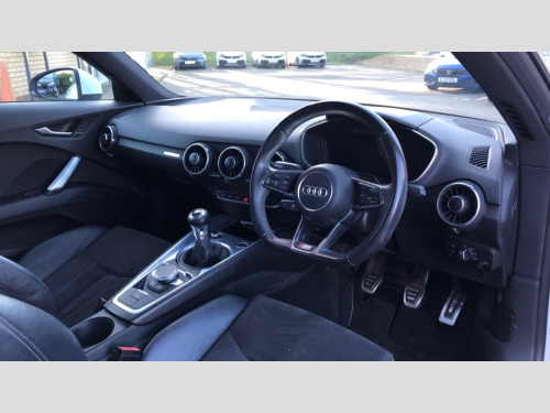 Audi TT 1.8T FSI S Line 2dr Audi drive select, Audi virtual cockpit - 12.3" high-resolution LCD display with fully customisable instrument cluster, MMI touch panel, Mobile phone preparation with bluetooth interface, Progressive power assisted steering, Service interval indicator, Audi music interface, Auxiliary input socket, Bluetooth audio streaming, DAB Digital radio, MMI Radio with CD player and SD/XC card slot, Auto headlight range control, Automatic coming/leaving home lighting function, Body colour bumpers, Body colour door mirrors, Electric front windows, Headlight wash system, High gloss black front grille, LED daytime running lights, LED rear lights, Rear diffuser, Retractable rear boot spoiler, S Line body styling, 3 spoke leather multifunction sports steering wheel, Aluminium door sill trims, Black headlining, Electric lumbar support, Extended aluminium look with stainless steel pedals, Front centre armrest, Front head restraints, Front passenger seat isofix location point, Height/reach adjust steering wheel, ISOFIX on outer rear seats, Perforated leather gearknob, Split folding rear seat, Stainless steel pedals, Top tether anchor plate for isofix child seat, 2 rear seatbelts, 3 point front seat belts, ABS, ASR traction control, Curtain airbags, Driver/Front Passenger airbags, EDL traction control, Electromechanical parking brake, ESP, First aid kit, Front passenger airbag deactivation, Front side airbags, Tyre pressure warning, Warning triangle, Anti theft alarm, Immobiliser, Keyless start, Locking wheel bolts, Remote central locking, Matt brushed aluminium inlays, Tyre repair kit