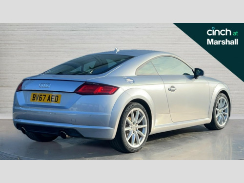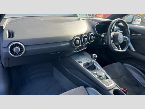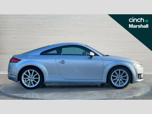 Audi TT 1.8T FSI Sport 2dr Audi drive select, Audi virtual cockpit - 12.3" high-resolution LCD display with fully customisable instrument cluster, Cruise control + speed limiter, MMI touch panel, Mobile phone preparation with bluetooth interface, Progressive power assisted steering, Service interval indicator, Sports suspension, Audi music interface, Auxiliary input socket, Bluetooth audio streaming, DAB Digital radio, MMI Radio with CD player and SD/XC card slot, Auto headlight range control, Body colour bumpers, Body colour door mirrors, Electric front windows, Front fog lights, Green tinted heat insulating glass, LED daytime running lights, LED rear lights, Retractable rear boot spoiler, Sunband for windscreen, 3 spoke leather multifunction sports steering wheel, Aluminium door sill trims, Extended aluminium look with stainless steel pedals, Front centre armrest, Front head restraints, Front passenger seat isofix location point, Height/reach adjust steering wheel, ISOFIX on outer rear seats, Reading lights, Split folding rear seat, Top tether anchor plate for isofix child seat, Auto dimming rear view mirror with light and rain sensors pack - TT, Non smoking pack - TT/TT RS, 3 point front seat belts, ABS, ASR traction control, Curtain airbags, Driver/Front Passenger airbags, EDL traction control, Electromechanical parking brake, ESP, First aid kit, Front passenger airbag deactivation, Front side airbags, Head airbags, Seatbelt warning, Tyre pressure warning, Warning triangle, Anti theft alarm, Immobiliser, Keyless Start, Locking wheel bolts, Remote central locking, Aluminium interior trim, Tyre repair kit