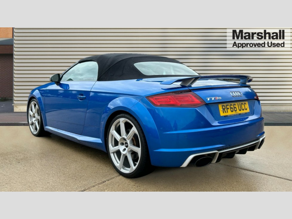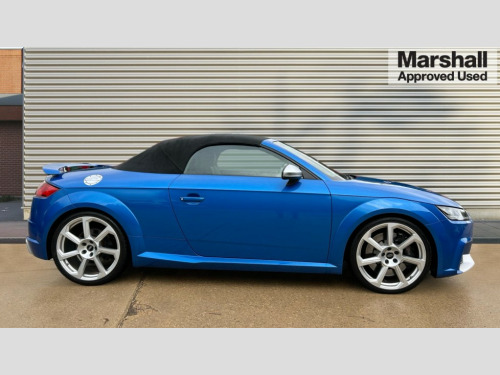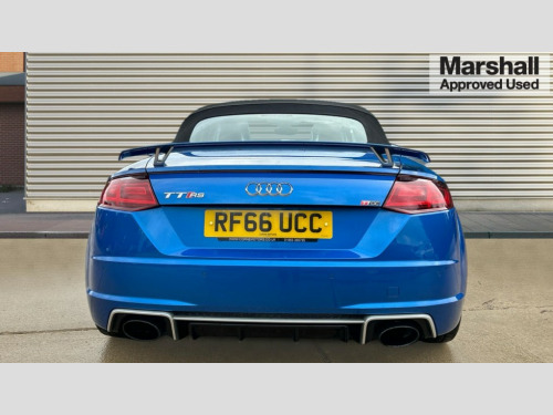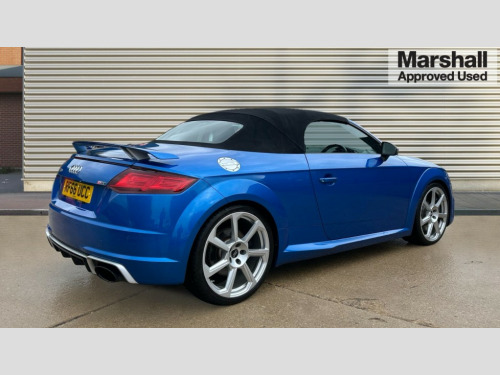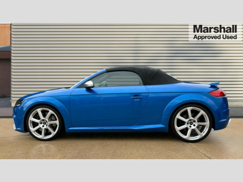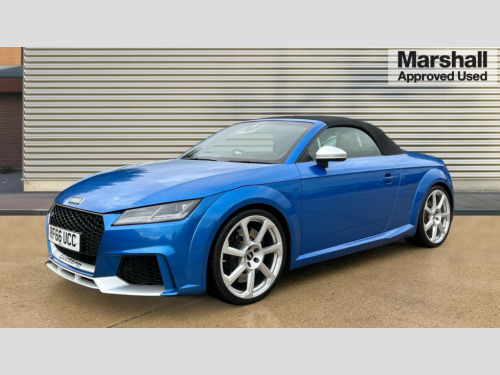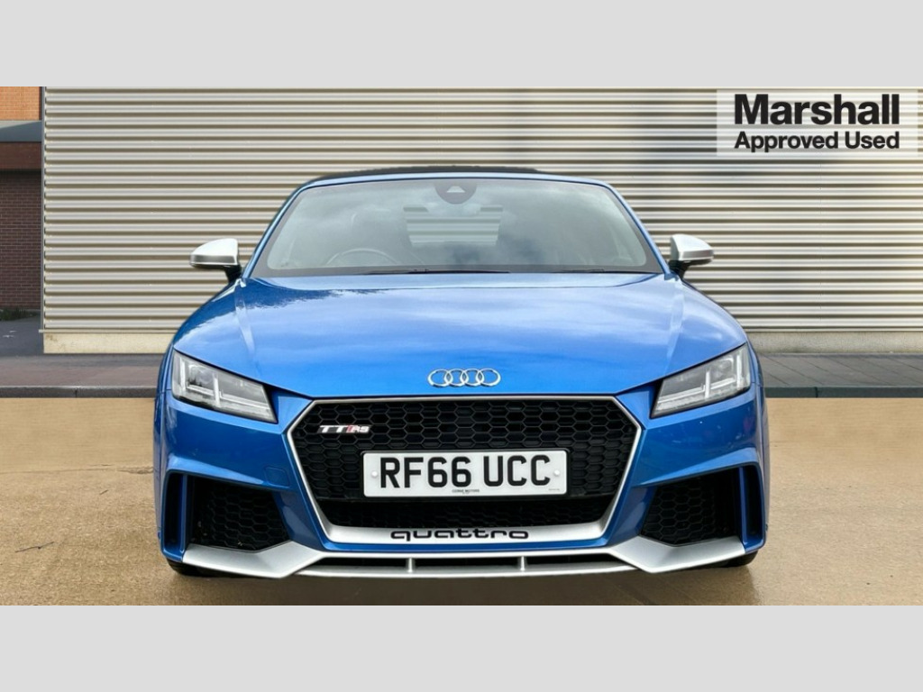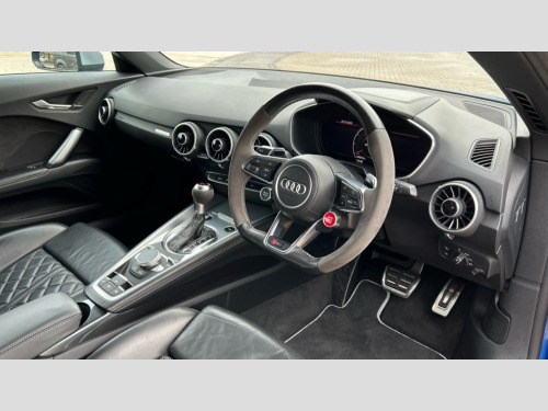 Audi TT 2.5T FSI TT RS Quattro 2dr S Tronic Audi active lane assist, Audi connect, Audi drive select, Audi parking system plus with front and rear sensors, Audi virtual cockpit - 12.3" high-resolution LCD display with fully customisable instrument cluster, Cruise control + speed limiter, MMI navigation plus with MMI touch, MMI touch panel, Mobile phone preparation with bluetooth interface, Progressive power assisted steering, Service interval indicator, Audi music interface, Auxiliary input socket, Bluetooth audio streaming, DAB Digital radio, MMI Radio with CD player and SD/XC card slot, Aluminium door mirror housings, Auto dimming rear view mirror, Auto headlight range control, Body colour bumpers, Electric front windows, Front spoiler, Fully automatic acoustic hood, Green tinted heat insulating glass, LED daytime running lights, LED rear lights, Wind deflector, 3 spoke alcantara sports leather multi-function steering wheel including paddle shift, Alcantara gear knob gaiter, Aluminium door sill trims, Deluxe auto air conditioning with integrated digital display, Electric lumbar support, Extended aluminium look with stainless steel pedals, Front centre armrest, Front head restraints, Front passenger seat isofix location point, Heated front seats, Height adjustable driver's seat, Height/reach adjust steering wheel, Interior elements in slate grey, Top tether anchor plate for isofix child seat, LED interior light pack - TT/TT RS, 3 point front seat belts, ABS, ASR traction control, Curtain airbags, Driver/Front Passenger airbags, EDL traction control, Electromechanical parking brake, ESP, First aid kit, Front passenger airbag deactivation, Front side airbags, Head airbags, Roll over bars, Seatbelt warning, Tyre pressure warning, Warning triangle, Anti theft alarm, Immobiliser, Keyless Start, Locking wheel bolts, Remote central locking, Tyre repair kit