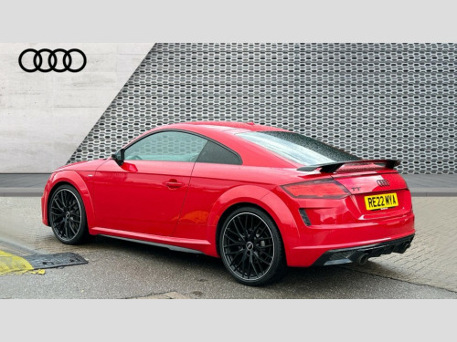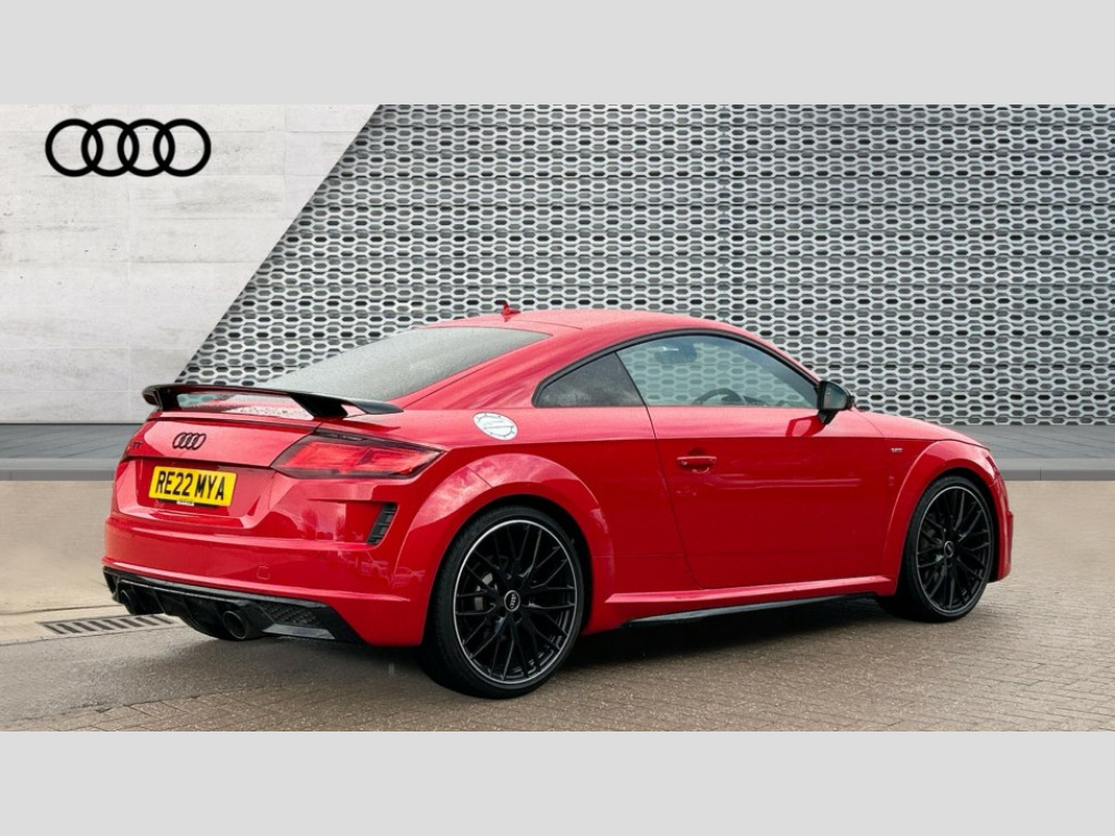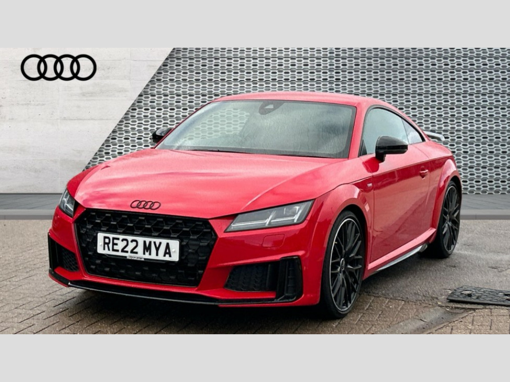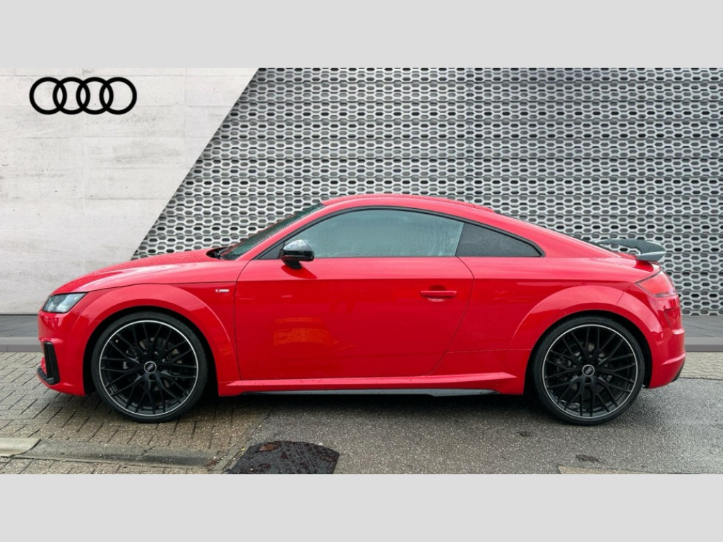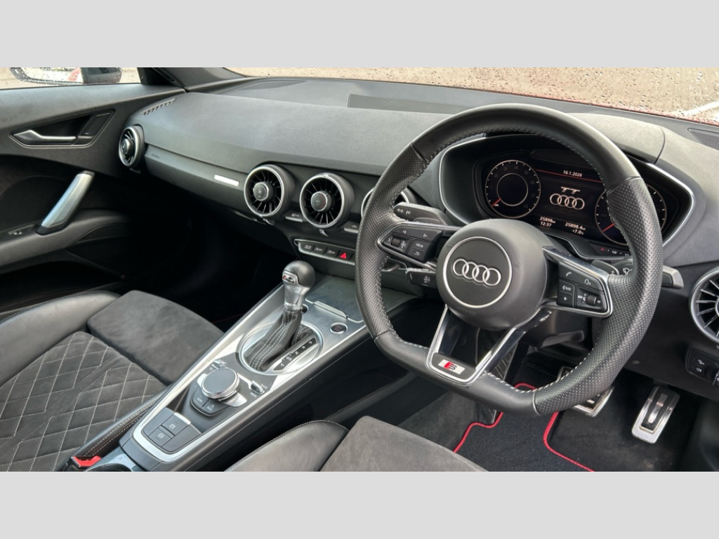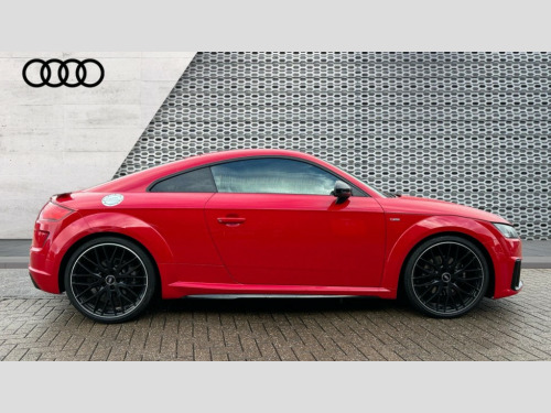 Audi TT 40 TFSI Black Edition 2dr S Tronic Audi drive select with 4 Pre configured modes, Audi smartphone interface, Audi virtual cockpit - 12.3" high-resolution LCD display with fully customisable instrument cluster, Cruise control + speed limiter, Emergency call service, MMI touch panel, Mobile phone preparation with bluetooth interface, Progressive power assisted steering, Service interval indicator, Start/Stop system with energy recuperation, TP memo, Sports suspension, AM/FM radio, Bluetooth audio streaming, DAB Digital radio, MMI Radio with CD player and SD/XC card slot, Auto dimming rear view mirror, Auto headlight range control, Black chrome tailpipe, Dark privacy glass from B-pillar backwards, Electric folding door mirrors, Electric front windows, Electrically adjustable and heated door mirrors with integrated LED side indicators, Front fog lights, Green tinted heat insulating glass, LED 3rd brake light, LED daytime running lights, LED headlights with LED rear lights + dynamic rear indicators, Light and rain sensors, Rear boot, Sunband for windscreen, 12V socket, 2 rear seats, 3 spoke flat bottomed high multi-function leather sport steering wheel with gearshift paddles, 4 way electric lumbar support for driver and front passenger, Black headlining, Contrasting silver stitching in steering wheel, Door sill trims, Extended aluminium look with stainless steel pedals, Front centre armrest, Front passenger seat, Front super sports seats, Heated front seats, Height adjustable driver's seat, Height adjustable front head restraints, Height/reach adjust steering wheel, ISOFIX child seat mounting for front passenger seat with airbag deactivation, Manual adjustment of seat height, fore/aft position, seat angle, seat depth and backrest angle, Perforated leather gearknob in black, Rear head restraints, Rear top tether child seat ISOFIX attachment, Split folding rear seat, Black styling pack - TT, Non smoking pack - TT/TT RS, 3 point front seat belts, ABS, ASR traction control, Curtain airbags, Driver and front passenger airbag with front passenger airbag deactivation, EDL traction control, Electromechanical parking brake, ESP, First aid kit, Front side airbags, Head airbags, Hill hold assist, Seatbelt warning, Tyre pressure loss indicator, Warning triangle, Anti theft alarm, Anti theft wheel bolts, Immobiliser, Keyless Go, Remote central locking, Matt brushed aluminium inlays, Tool kit, Tyre repair kit