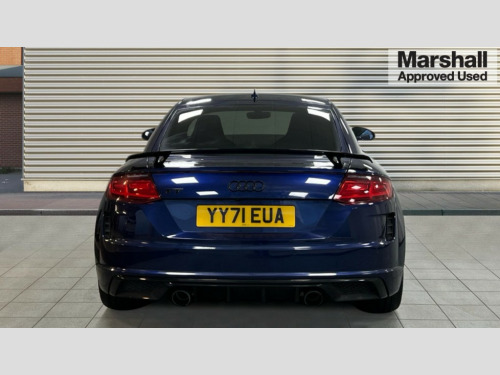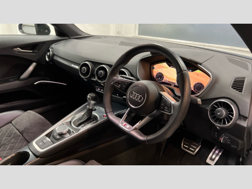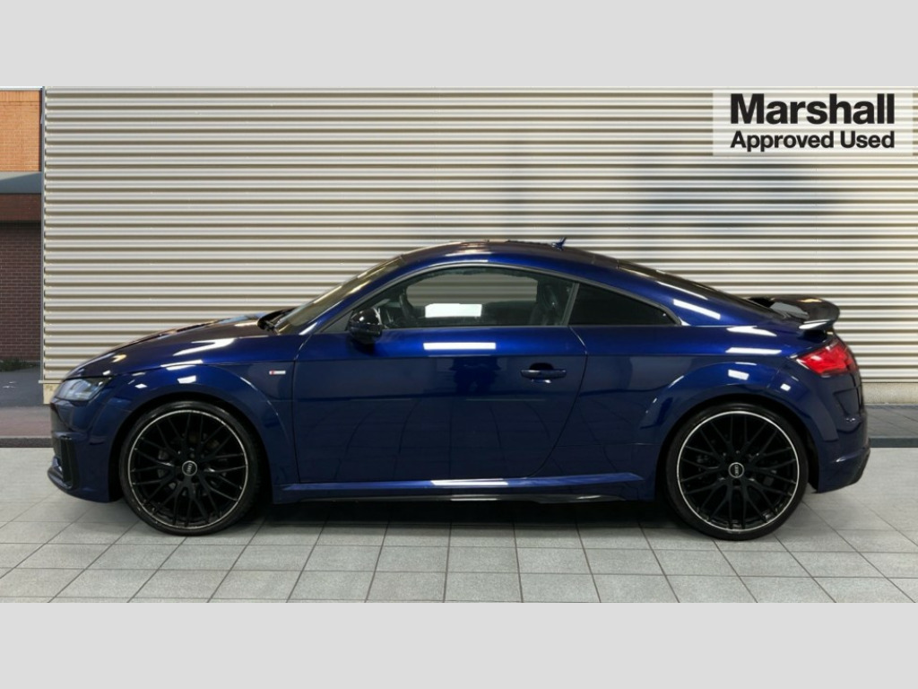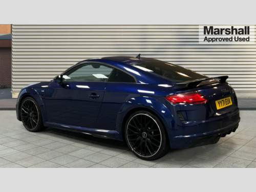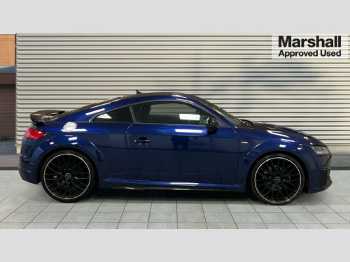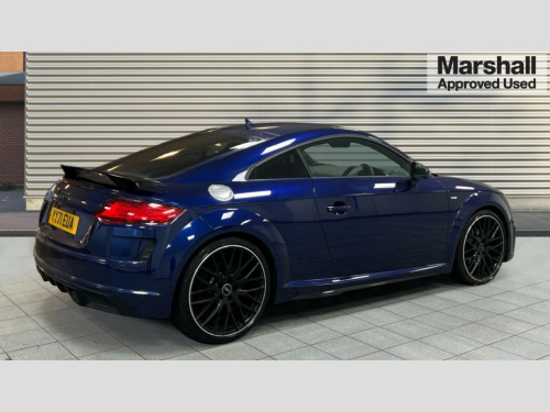 Audi TT 40 TFSI Black Edition 2dr S Tronic Audi drive select with 4 Pre configured modes, Audi smartphone interface, Audi virtual cockpit - 12.3" high-resolution LCD display with fully customisable instrument cluster, Cruise control + speed limiter, Mobile phone preparation with bluetooth interface, Progressive power assisted steering, Service interval indicator, Start/Stop system with energy recuperation, TP memo, Sports suspension, AM/FM radio, Bluetooth audio streaming, DAB Digital radio, MMI Radio with CD player and SD/XC card slot, Auto dimming rear view mirror, Auto headlight range control, Black chrome tailpipe, Dark privacy glass from B-pillar backwards, Electric folding door mirrors, Electric front windows, Electrically adjustable and heated door mirrors with integrated LED side indicators, Front fog lights, Green tinted heat insulating glass, LED daytime running lights, LED headlights with LED rear lights + dynamic rear indicators, Light and rain sensors, Sunband for windscreen, 12V socket, 3 spoke flat bottomed high multi-function leather sport steering wheel with gearshift paddles, 4 way electric lumbar support for driver and front passenger, Black headlining, Contrasting silver stitching in steering wheel, Door sill trims, Extended aluminium look with stainless steel pedals, Front centre armrest, Front super sports seats, Heated front seats, Height adjustable driver's seat, Height adjustable front head restraints, Height/reach adjust steering wheel, ISOFIX child seat mounting for front passenger seat with airbag deactivation, Manual adjustment of seat height, fore/aft position, seat angle, seat depth and backrest angle, Perforated leather gearknob in black, Rear head restraints, Rear top tether child seat ISOFIX attachment, Split folding rear seat, Black styling pack - TT, Non smoking pack - TT/TT RS, Technology pack without Audi phone box - TT, 3 point front seat belts, ABS, ASR traction control, Curtain airbags, Driver and front passenger airbag with front passenger airbag deactivation, EDL traction control, Electromechanical parking brake, ESP, First aid kit, Front side airbags, Head airbags, Hill hold assist, Seatbelt warning, Tyre pressure loss indicator, Warning triangle, Anti theft alarm, Anti theft wheel bolts, Immobiliser, Keyless Go, Remote central locking, Matt brushed aluminium inlays, Tool kit, Tyre repair kit