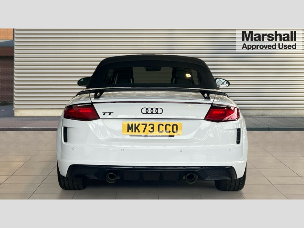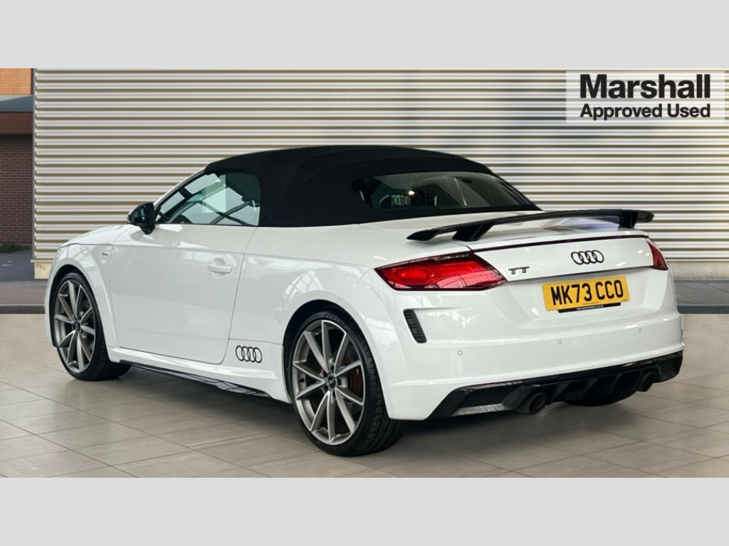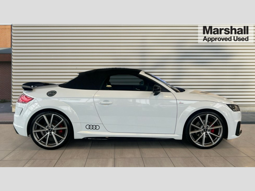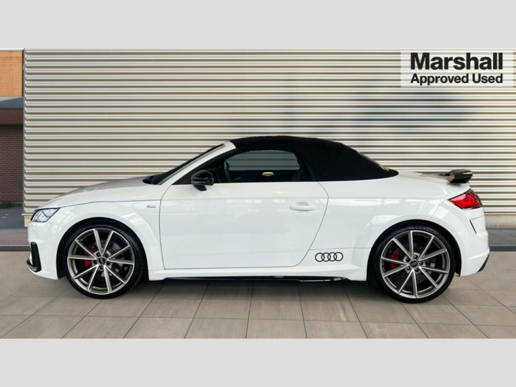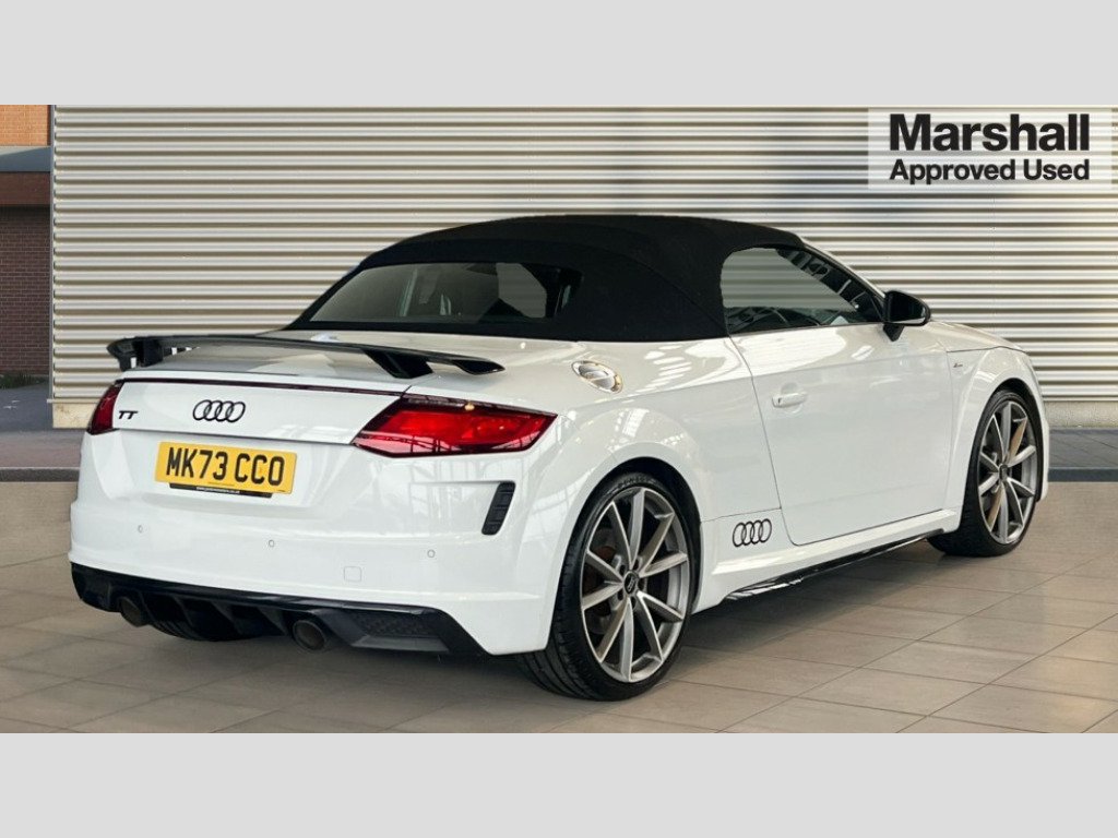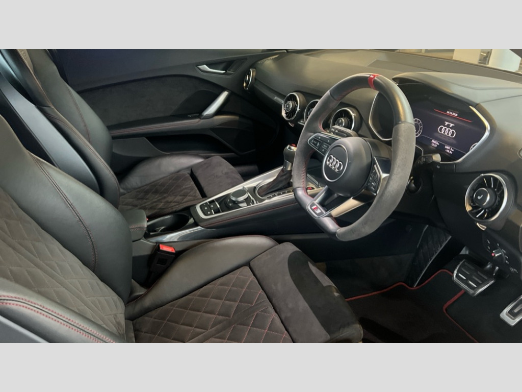 Audi TT 40 TFSI Final Edition 2dr S Tronic Audi drive select with 4 Pre configured modes, Audi smartphone interface, Audi virtual cockpit - 12.3" high-resolution LCD display with fully customisable instrument cluster, Cruise control + speed limiter, Emergency call service, Mobile phone preparation with bluetooth interface, Progressive power assisted steering, Rear parking sensors, Seat belt microphone, Service interval indicator, Start/Stop system with energy recuperation, TP memo, Sports suspension, 8 Speakers, AM/FM radio, Bluetooth audio streaming, DAB Digital radio, Audi Beam uses LEDs to project the Audi Sport logo, Audi rings decals, Auto dimming rear view mirror, Auto headlight range control, Black chrome tailpipe, Black door mirrors, Electric folding door mirrors, Electric front windows, Electrically adjustable and heated door mirrors with integrated LED side indicators, Electrically operated wind deflector, Fully automatic acoustic hood, Heat insulating glass in windshield, Heat reflecting windows, LED 3rd brake light, LED daytime running lights, LED headlights with LED rear lights + dynamic rear indicators, Light and rain sensors, Rear boot, Roll over bars with trim in gloss black, 12V socket, 3 spoke flat bottomed high multi-function leather sport steering wheel with gearshift paddles, 4 way electric lumbar support for driver and front passenger, Alcantara leather with 12o'clock marker and express red contrast stitching in steering wheel, Alcantara/leather upholstery with S embossing + contrasting express red stitching on upholstery, Steering wheel and gear knob gaiter, Black headlining, Coloured interior elements in slate grey gloss paint, Door sill trims, Extended aluminium look with stainless steel pedals, Front centre armrest, Front passenger seat, Front super sports seats, Heated front seats, Integrated head restraints, ISOFIX child seat mounting for front passenger seat with airbag deactivation, Manual adjustment of seat height, fore/aft position, seat angle, seat depth and backrest angle, Red piped floor mats, Black styling package - TT, Leather pack - TT, LED interior light pack - TT/TTS, Non smoking pack - TT/TT RS, Technology pack without Audi phone box - TT, 3 point front seat belts, ABS, ASR traction control, Driver and front passenger airbag with front passenger airbag deactivation, EDL traction control, Electromechanical parking brake, ESP, First aid kit, Front side airbags, Hill hold assist, Red brake callipers, Seatbelt warning, Tyre pressure loss indicator, Warning triangle, Anti theft alarm, Anti theft wheel bolts, Immobiliser, Keyless Go, Remote central locking, Matt brushed aluminium inlays, Tool kit, Tyre repair kit