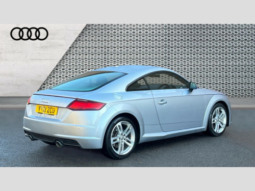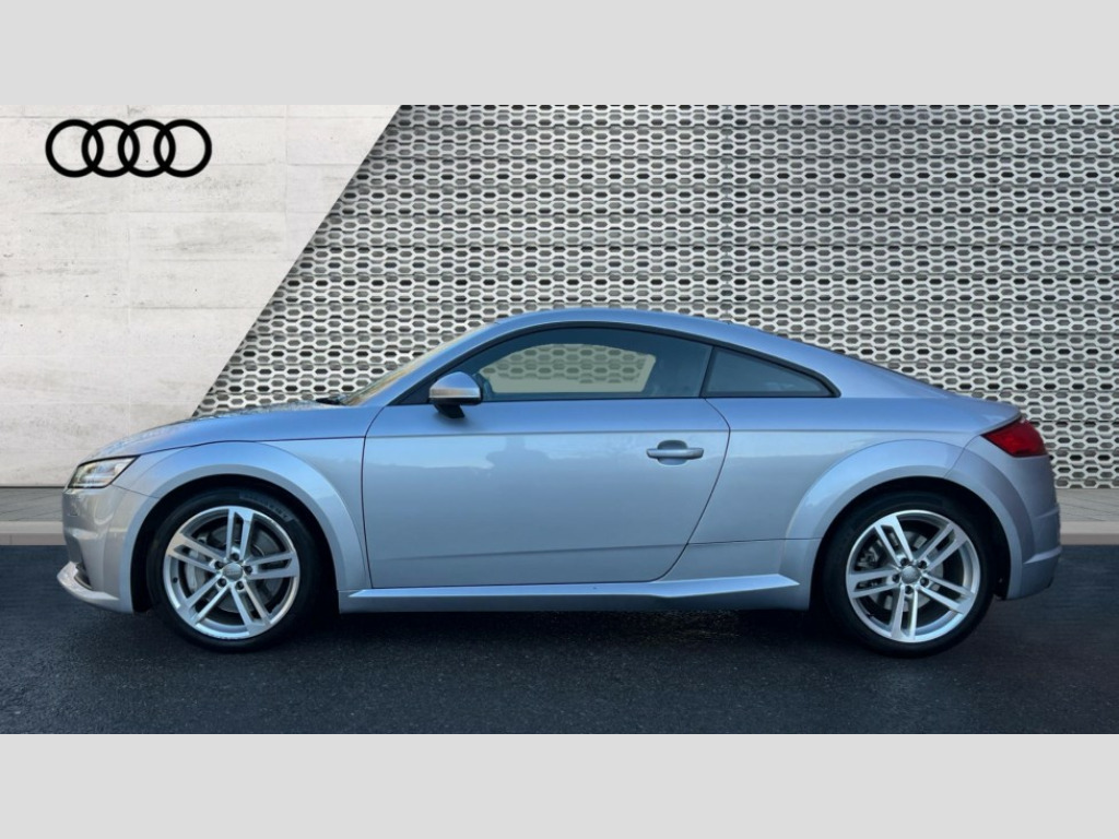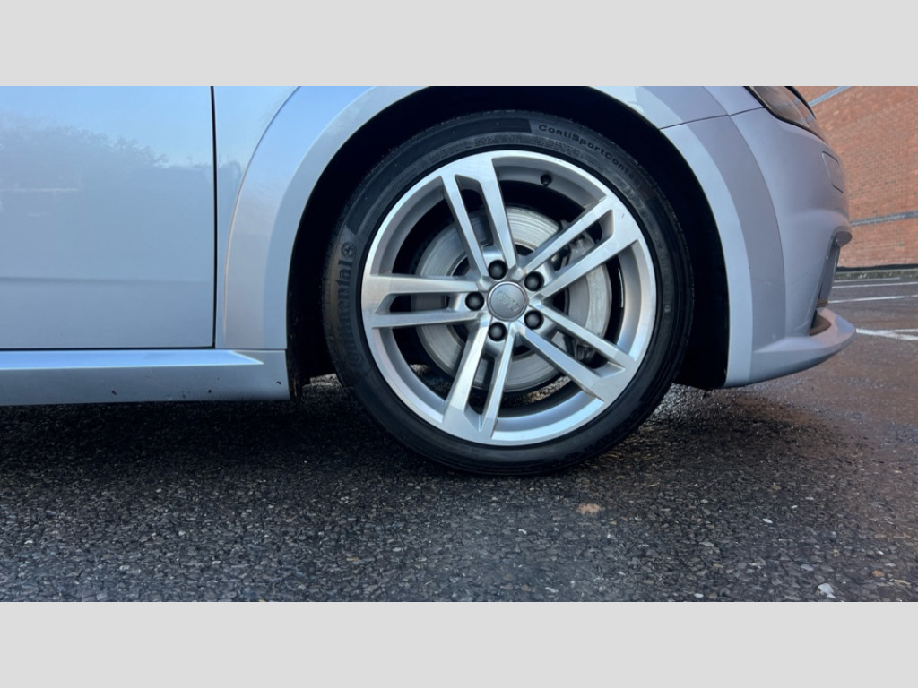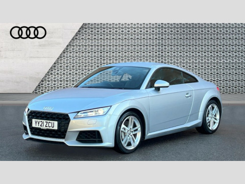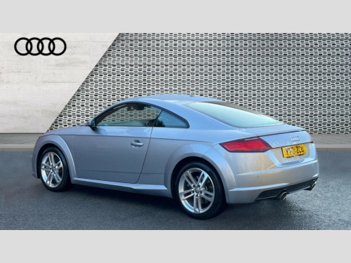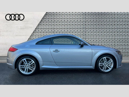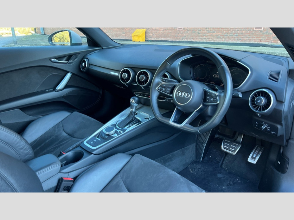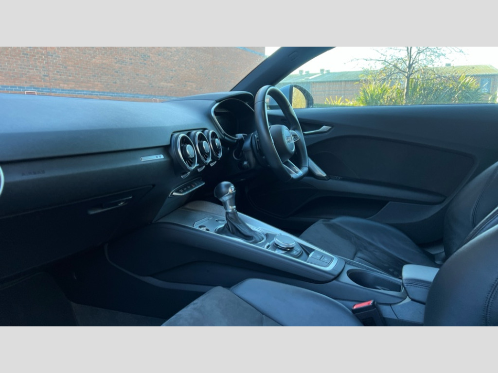 Audi TT 40 TFSI S Line 2dr S Tronic Audi drive select with 4 Pre configured modes, Audi smartphone interface, Audi virtual cockpit - 12.3" high-resolution LCD display with fully customisable instrument cluster, Cruise control + speed limiter, Mobile phone preparation with bluetooth interface, Progressive power assisted steering, Service interval indicator, Start/Stop system with energy recuperation, TP memo, S line sports suspension, AM/FM radio, Bluetooth audio streaming, DAB Digital radio, MMI Radio with CD player and SD/XC card slot, Auto dimming rear view mirror, Auto headlight range control, Black door mirrors, Body colour bumpers, Electric folding door mirrors, Electric front windows, Electrically adjustable and heated door mirrors with integrated LED side indicators, Front fog lights, Green tinted heat insulating glass, High gloss black radiator grille, LED daytime running lights, LED headlights with LED rear lights + dynamic rear indicators, Light and rain sensors, Retractable rear boot spoiler, S line badges on front wings, Sunband for windscreen, 12V socket, 3 spoke flat bottomed high multi-function leather sport steering wheel with gearshift paddles, 4 way electric lumbar support for driver and front passenger, Black headlining, Contrasting silver stitching in steering wheel, Door sill trims with S line logo, Extended aluminium look with stainless steel pedals, Front centre armrest, Front super sports seats, Heated front seats, Height adjustable driver's seat, Height adjustable front head restraints, Height/reach adjust steering wheel, ISOFIX child seat mounting for front passenger seat with airbag deactivation, Manual adjustment of seat height, fore/aft position, seat angle, seat depth and backrest angle, Perforated leather gearknob in black, Rear head restraints, Rear top tether child seat ISOFIX attachment, S Line badge on steering wheel, Split folding rear seat, Non smoking pack - TT/TT RS, S Line design styling pack - TT, Technology pack - TT with MMI Navigation, 3 point front seat belts, ABS, ASR traction control, Curtain airbags, Driver and front passenger airbag with front passenger airbag deactivation, EDL traction control, Electromechanical parking brake, ESP, First aid kit, Front side airbags, Head airbags, Hill hold assist, Seatbelt warning, Tyre pressure loss indicator, Warning triangle, Anti theft alarm, Anti theft wheel bolts, Immobiliser, Keyless Go, Remote central locking, Matt brushed aluminium inlays, Tool kit, Tyre repair kit
