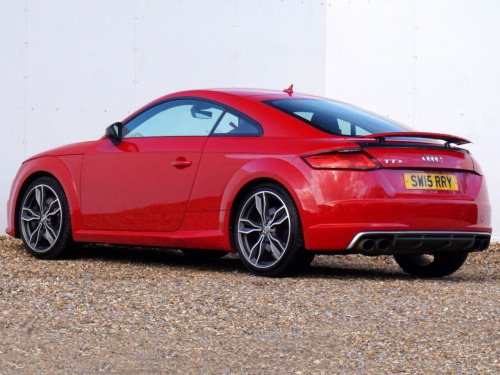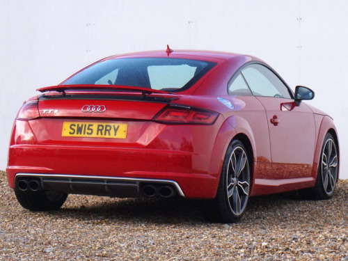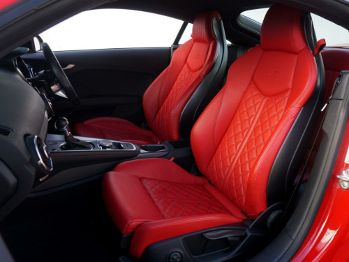 . 12V Power Socket, 19in Alloy Wheels - 5-Parallel Spoke Star Design, 2 x SDXC Card Readers, ABS - Anti-Lock Braking System, AMI - Audi Music Interface, Active Door Reflectors, Air Conditioning, Airbags - Driver, Airbags - Front Passenger, Airbags - Front Side System, Airbags - Head System, All Weather LED Headlights, Aluminium-Effect Door Mirror Housings, Amplifier - 5-Channel, Anti Theft Locking Wheel Bolts, Anti-Glare Illumination for Passenger Compartment, Anti-Theft Alarm, Armrest Doors - Leather, Audi Active Lane Assist, Audi Drive Select, Audi Magnetic Ride, Audi Sound System, Audi Virtual Cockpit with a 3rd TTS Specific Screen, Audio Output - 155 Watts, Auto-Dimming Rear-View Mirror, Auto-Dimming Rear-View Mirror with Light and Rain Sensor Package, Automatic Wipers with Rain Sensor, Bluetooth Audio Streaming, Brake Calipers - Black with TTS Logo, Brake Lights - LED, Bumper - Front TTS Specific with Accentuated Side Air Inlets with Horizontal Aluminium-Look Slats and Side Sill Trims, Bumper - Rear TTS Specific in Body Colour, Car Jack, DAB Digital Radio, Diffuser - Rear - Insert in Platinum Grey with Surround in Aluminium-Look, Door Handles - Leather, Door Mirrors - Built-in LED Side Indicators, Door Mirrors - Electrically Adjustable and Heated, Door Sill Trims with Aluminium Inlay and TTS Logo, Dynamic LED Indicators - Rear, ESP - Electronic Stability Programme, Electric Windows - Front, Electrically Adjustable 4-Way Lumbar Support, Electromechanical Parking Brake, Exhaust Tailpipe - Dual Chrome - 2 Each Side, Extended Leather Package, FM-AM Radio, First Aid Kit, Front Passenger Airbag Deactivation Switch, Fuel Computer, Google Earth Images and Google Street View, Headlights - Automatic Range Adjustment, Headlights - Coming-Leaving Home Function, Headlights - Light Sensor, Headlights Washers, Headlining - Black, Heated Front Seats, ISOFIX Child Seat Mounting for Front Passenger, ISOFIX Child Seat Preparation for Rear Seats with Top Tether, Illuminated Footwells, Illuminated Inside Door Openers, Inlays - Matt Brushed Aluminium, Instrument Panel Cover - Leather, Integrated Head Restraints, Interior Elements in Quartz Fine Lacquer Anthracite, Keyless Go, LED Daytime Running Lights, LED Interior Light Package, LED Rear Lights, Leather Door Trim Inserts, Light and Rain Sensor Package, MMI Radio, MMI Touch, Manual Front Seat Adjustment, Mobile Telephone Preparation - Bluetooth Interface, Non-Smoking Package, Pedals in Stainless Steel, Pollen Filter, Progressive Steering, Radiator Grille - Platinum Grey with Horizontal Double Struts in Aluminium-Look and TTS Emblem, Remote Central Locking, S Design Body Styling, Seat - Side Bolsters in Leather, Seats - Centre Sections in Selected Leather with Diamond Quilting, Seats - Extendable Thigh Support, Seats - Super Sports, Speakers x1 - Centre of Dashboard, Speakers x2 Woofers, Speakers x6 - Active, Split-Folding Rear Seats, Spoiler - Retractable, Steering Wheel - 3-Spoke Leather-Flat Bottomed-Sports-Contoured, Steering Wheel - Gear Shift Paddles, Steering Wheel - Height and Reach Adjustable, Steering Wheel - Multi-function, Steering Wheel - Sports, Steering Wheel - TTS Badging, Sunband for Windscreen, TP Memo - Automatically Saves Traffic News, TTS Badges on Front Wings, Tool Kit, Traction Control, Trim on the Centre Console in Black Leather, Tyre Pressure Loss Indicator, Tyre Repair Kit, USB Connection, Warning Triangle, iPod Connection, Tango Red, Fine Nappa Leather - Super Sport Seats - Express Red, Audi Parking System - Rear, Cruise Control, Headlights - High-Beam Assist, Extended Leather Package - Colour Coordinated Leather, Technology Package. Full dealership history