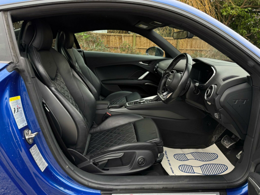FULL SERVICE HISTORY - 7 SERVICES - 4 MAIN DEALER SERVICES - MOST RECENT SERVICE DONE 71,723 - GEARBOX SERVICED AND BREAK FLUID SERVICED 41,409LOGBOOKK2Technology PackageValuableRear-View CameraVery rareDoor Mirrors - Heated-Electrically Adjustable-FoldingRare20in Alloy Wheels - 10-Y-Spoke DesignRareBrake Calipers - Red with TTS LogoRareFine Nappa Leather - Super Sport Seats - BlackBang and Olufsen Sound SystemCruise ControlPrivacy GlassEquipment:Navigation HDDParking Sensor(s)Climate ControlLeather Trim20'' Alloy WheelsPrivacy GlassThis 2016 Audi TTS TFSI offers an exhilarating driving experience combined with sophisticated technology. Powered by a 2.0 litre petrol engine and featuring Audi's renowned four wheel drive system, this Euro 6 compliant model delivers impressive performance. Inside, you'll find comfort and convenience with heated front seats and air conditioning, while the auto dimming rear view mirror, coupled with light and rain sensors, enhances your journey. Stay connected effortlessly with mobile telephone preparation, including Bluetooth interface and audio streaming.The Audi TTS TFSI stands out with its remarkable acceleration, achieving 0 to 60 miles per hour in just 4.4 seconds, demonstrating its dynamic capabilities. This vehicle also boasts an impressive fuel economy of 41 miles per gallon, alongside low CO2 emissions, making it a more efficient choice compared to many other vehicles in its class. chnology package, rear-view camera, door mirrors - heated-electrically adjustable-folding, 20in alloy wheels - 10-y-spoke design, brake calipers - red with tts logo, fine nappa leather - super sport seats - black, bang and olufsen sound system, cruise control, privacy glass, 12v power socket, 19in alloy wheels - 5-parallel spoke star design, 2 x sdxc card readers, abs - anti-lock braking system, ami - audi music interface, aux-in socket, active door reflectors, air conditioning, airbags - driver, airbags - front passenger, airbags - front side system, airbags - head system, all weather led headlights, aluminium-effect door mirror housings, amplifier - 5-channel, anti theft locking wheel bolts, anti-glare illumination for passenger compartment, anti-theft alarm, armrest doors - leather, audi active lane assist, audi drive select, audi magnetic ride, audi sound system, audi virtual cockpit with a 3rd tts specific screen, audio output - 155 watts, auto-dimming rear-view mirror, auto-dimming rear-view mirror with light and rain sensor package, automatic wipers with rain sensor, bluetooth audio streaming, brake calipers - black with tts logo, brake lights - led, bumper - front tts specific with accentuated side air inlets with horizontal aluminium-look slats and side sill trims, bumper - rear tts specific in body colour, car jack, dab digital radio, diffuser - rear - insert in platinum grey with surround in aluminium-look, door handles - leather, door mirrors - built-in led side indicators, door mirrors - electrically adjustable and heated, door sill trims with aluminium inlay and tts logo, dynamic led indicators - rear, esp - electronic stability programme, electric windows - front, electrically adjustable 4-way lumbar support, electromechanical parking brake, exhaust tailpipe - dual chrome - 2 each side, extended leather package, fm-am radio, first aid kit, front passenger airbag deactivation switch, fuel computer, head restraints - front in leather, headlights - automatic dynamic range control, headlights - automatic range adjustment, headlights - coming-leaving home function, headlights - light sensor, headlights washers, headlining - black, heated front seats, isofix child seat mounting for front passenger, isofix child seat preparation for rear seats with top tether, illuminated footwells, illuminated inside door openers, inlays - matt brushed aluminium, instrument panel cover - leather, integrated head restraints, interior elements in quartz lacquer anthracite, keyless go, led daytime running lights, led interior light package, led rear lights, leather door trim inserts, light and rain sensor package, mmi radio, mmi touch, manual front seat adjustment, mobile telephone preparation - bluetooth interface, non-smoking package, pedals in stainless steel, pollen filter, progressive steering, radiator grille - platinum grey with horizontal double struts in aluminium-look and tts emblem, remote central locking, s design body styling, seat - side bolsters in leather, seats - centre sections in selected leather with diamond quilting, seats - extendable thigh support, seats - super sports, speakers x1 - centre of dashboard, speakers x2 woofers, speakers x6 - active, split-folding rear seats, spoiler - retractable, steering wheel - 3-spoke leather-flat bottomed-sports-contoured, steering wheel - gear shift paddles, steering wheel - height and reach adjustable, steering wheel - multi-function, steering wheel - sports, steering wheel - tts badging, sunband for windscreen, tp memo - automatically saves traffic news, tts badges on front wings, tool kit, traction control, trim on the centre console in black leather, tyre pressure loss indicator, tyre repair kit, usb connection, warning triangle, ipod connection