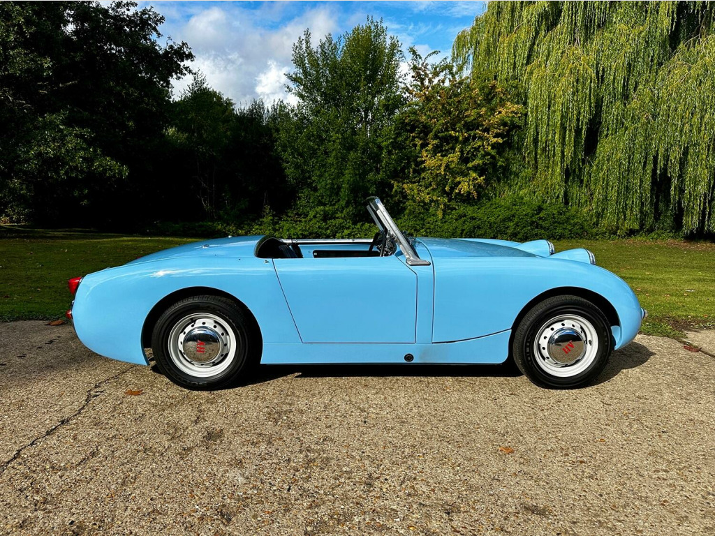 With us here at RFH Classics we have this delightful 1959 Austin Healey Sprite MK1, affectionately known as the Frogeye. Finished in the popular period shade of Iris Blue, this car has benefitted from a comprehensive restoration and a number of desirable mechanical upgrades, making it a more enjoyable and usable car for todays road conditions. The car, owned by the last keeper for the past 24 years, is in superb condition and ready to be enjoyed by a new owner whether for late summer drives, classic tours or local club events. , Originally registered in Glasgow on the 28th of February 1959, the Sprite was first delivered to a Mr William Jarret, who paid the princely sum of just under £700 for his new sports car. Originally supplied in Nevada Beige the car has since been fully restored to a very high standard and presents beautifully in a colour that perfectly captures the cheerful personality and iconic shape that earned the model its Frogeye nickname. Importantly, the car retains its original steel bonnet, a feature many have lost over time to the fibreglass replacements. , Under the bonnet now sits a later 1098cc BMC Silver Seal exchange engine which brings a welcome increase in performance over the original 948cc unit while still running on the correct twin SU carburettors. Further improvements include the stronger and smoother 1275-spec ribbed gearbox and a front disc brake conversion, all very desirable and do not detract from its period charm. The cars history file shows very light use over the past two decades, covering fewer than 2,500 miles in more than 20 years. During this time, it was professionally stored and then the subject of a light recommission in 2014 just prior to a trouble free 600 mile round trip to the Le Mans Classic. In later years, between 2021 and 2022, the Sprite underwent a major restoration including new floors, sills and A-pillars followed by a bare metal respray and a thorough reconditioning or replacement of the cars ancillary components. , Since completion, the car has been driven sparingly and always in dry weather with journeys generally being to local classic car shows. With its extensive restoration now complete and mileage believed genuine, this Frogeye is ready for its next custodian. Accompanying the car is a high quality black vinyl soft top, side screens as well as a full tonneau cover ready to protect you from those inevitable encounters with the British weather. Charming, fun to drive and being beautifully presented help this Austin Healey Frogeye Sprite to be an ideal first classic or a welcome addition to any enthusiasts collection. , RFH Classics are proud to be Bedfordshires largest independent classic car dealer with over 35 years of experience supplying quality vehicles you can buy with confidence. Our reputation is built on trust, excellent customer service and glowing reviews. This car qualifies for zero rated Historic Road tax and is a ULEZ exempt vehicle helping to make it a great and cost effective classic to own and maintain. As a classic it is eligible for low cost classic car insurance and comes with the benefit of a 3 month major mechanical warranty. Our vehicles are sold clear of finance or insurance damage with a certificate of provided at handover, we do recommend using premium unleaded fuel for all our classic vehicles. If you are unable to visit our showroom, UK delivery is available as are export services, please ask for a quote. Our website has a walk around video of every vehicle in stock. Ready to find out more about this car? Book your viewing today, we look forward to hearing from you. , Call: 01462 338755, Email: [email protected], , #RFHClassics #BritishClassicCars #BedfordshireClassics #ClassicCarsUK #1960sMotoring