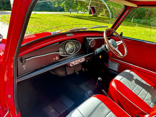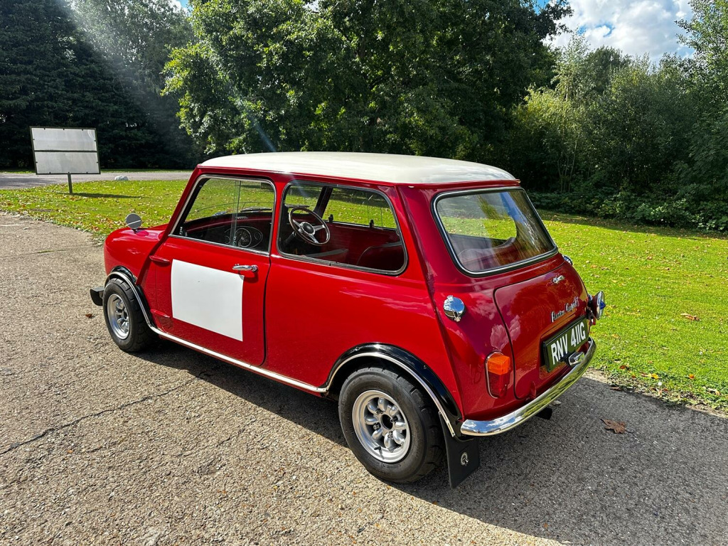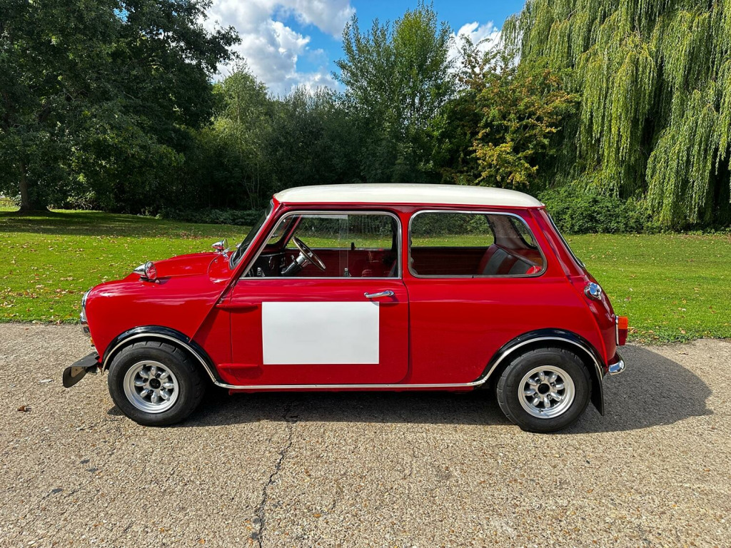 With us here at RFH Classics we are pleased to present this fascinating 1968 (G) Mini Cooper S Replica presented now in Tartan Red with a contrasting White Roof. We are lead to believe that the car was the subject of carefully planned and developed rebuild that took place in the early 80s to a specification that is remarkably close to that of an original Cooper S. The rebuild, which incorporated many genuine Cooper S components and we would highly recommend that you take the opportunity to inspect the car to understand how well it has been done. , The Tartan Red and Black roof finish now on the car was undertaken around 2016 when the car changed hands and was purchased by the owner of a a Mini Specialist in North Somerset. Under Ians ownership the car, which was White with a Black, was the subject of some extensive additional work and developed to be this car characterful and excitement replica of the iconic hot Mini but at a far more accessible level. He went on to maintain and own the car for around two years selling it in 2018 to the last registered keeper. When the car was sold in 2018 it formed part of a small private collection of cars that were then subsequently parked up at the start of Covid and there the car stayed until earlier this year when we unearthed the car from its long term storage. , Having collected the car from long term garage storage, we have since undertaken a careful programme of recommissioning the car including fuel drain, new brake master cylinder, service and a fresh motor test in preparation for sale. We understand that the mechanical specification was done faithful to Cooper S standards with a 1275cc 1300GT based engine complete with 11-stud head, twin 1¼ SU carburettors, Maniflow LCB manifold, twin fuel tank set up and Mini-Sport exhaust system. The braking system is handled by the correct 7½ Cooper S discs while the suspension has been rebuilt on new subframes and retains the desirable dry set-up. , Visually the exterior of the car is difficult to distinguish from the original car with period correct detailing such as the badges, bonnet strap, removable front grille, bullet style mirrors, white door number panels, front mud flaps, quad light set up and original style headlamp protectors. Internally the cabin is now trimmed in Red and Grey leather and features period Cooper S details including correct door cards, instruments, fittings and race preparation style dash. To complete the overall look of the car it is fitted with Cooper reverse-rim wheels which perfectly finish off its purposeful stance. , A substantial history file accompanies the Mini, including numerous old MOT certificates, a collection of receipts for parts and works and documents relating to work undertaken. The car, a highly convincing Cooper S replica that delivers all the period thrills of the real thing, but at a fraction of the price of an original is now ready for a new owner to enjoy and is going to be a true head turner wherever it goes. , RFH Classics are proud to be Bedfordshires largest independent classic car dealer with over 35 years of experience supplying quality vehicles you can buy with confidence. Our reputation is built on trust, excellent customer service and glowing reviews. This car qualifies for zero rated Historic Road tax and is a ULEZ exempt vehicle helping to make it a great and cost effective classic to own and maintain. As a classic it is eligible for low cost classic car insurance and comes with the benefit of a 3 month major mechanical warranty. Our vehicles are sold clear of finance or insurance damage with a certificate of provided at handover, we do recommend using premium unleaded fuel for all our classic vehicles. If you are unable to visit our showroom, UK delivery is available as are export services, please ask for a quote. Our website has a walk around video of every vehicle in stock. Ready to find out more about this car? Book your viewing today, we look forward to hearing from you. , Call: 01462 338755, Email: [email protected], , #RFHClassics #BritishClassicCars #BedfordshireClassics #ClassicCarsUK #1960sMotoring