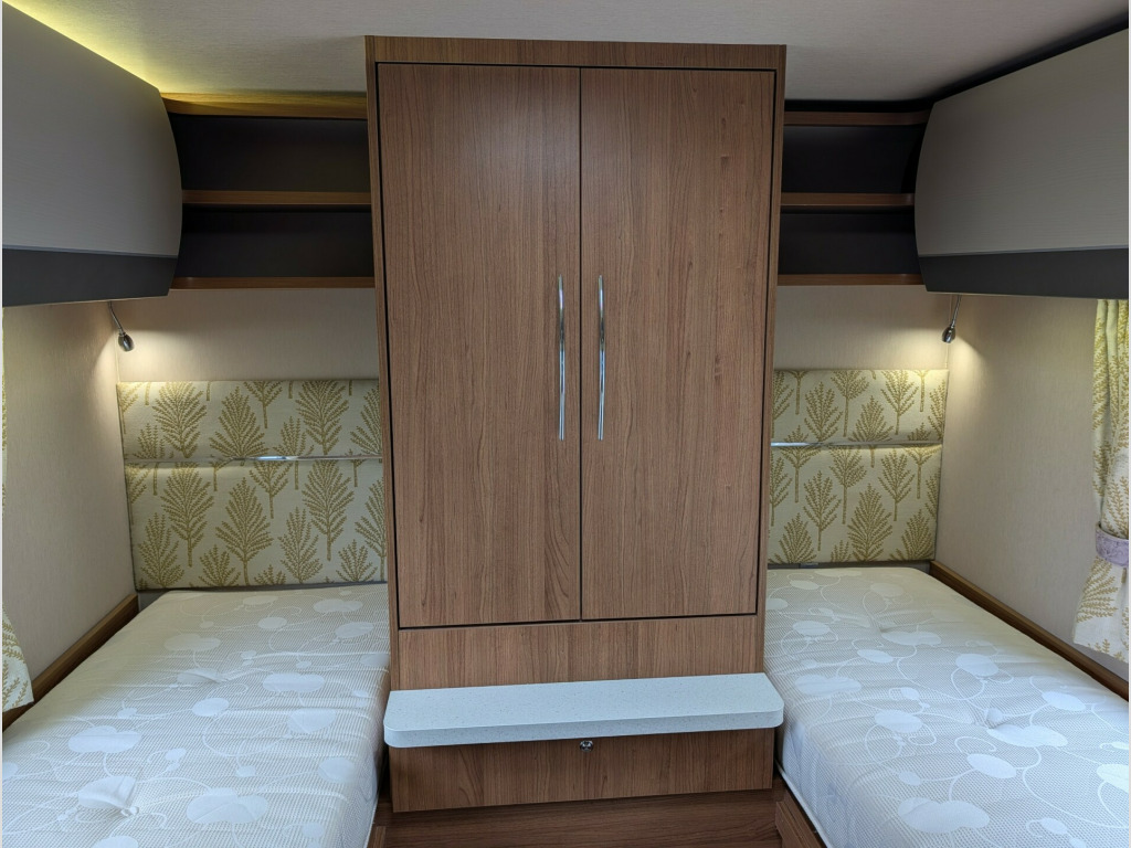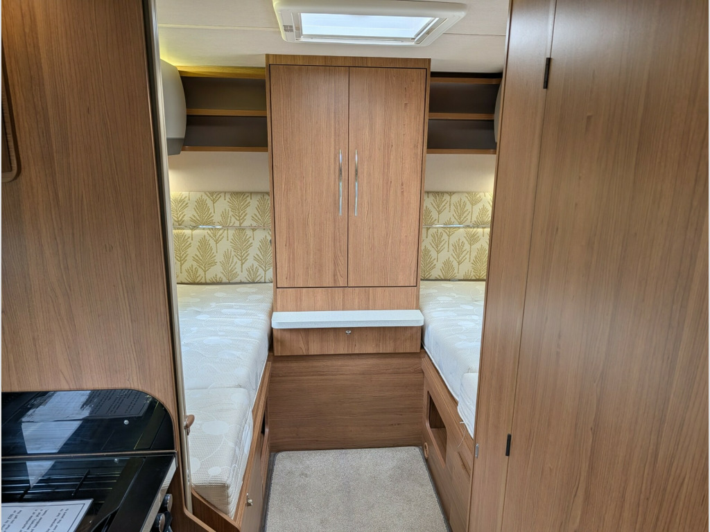 The 2018 Auto-Trail Imala 734 features a popular fixed twin single bed rear layout with a central kitchen and washroom, designed for up to four people.The front lounge features swivel captain's chairs that turn to face the lounge, which can accommodate up to six people for socialising.A centrally located kitchen is fully equipped with a dual-fuel hob (three gas, one electric), a separate oven and grill, a microwave, and a 3-way fridge freezer.The washroom is situated in the middle and includes a separate shower cubicle with a bi-fold door, a washbasin, and an electric flush cassette toilet.There is large under-bed storage which is accessible from both the inside and outside. This vehicle can be viewed at our West Sussex branch located in Ashington on the A24. To book a viewing please call our sales team on 01903 893666For your complete peace of mind all our motorhomes are finance and HPI checked, have a full service and PDI and include up to 12 months in-house warranty.We also give you a dedicated one-to-one handover to show you how it all works and a full tank of fuel.Sussex Caravan and Motorhome Centre is a family owned, multi-award winning dealership including Practical Caravan Gold Supplying Dealer and FEEFO Platinum Trusted Service Award. Proudly celebrating over 35 years in business. volt charger, 2 belts, 230v socket, 4 berth, awning light, cab air-conditioning, cab blinds, canopy, cruise control, curtains, door flyscreen, driver airbag, dual fuel hob, electric step, external 230v socket, fixed single beds, fridge with freezer box, gas bbq point, grill, high level brake light, loose fit carpets, microwave, omnivent roof fan, oven, passenger swivel seats, reverse camera, sat nav, shower, solar panel, thetford cassette toilet, tow bar, truma combi heating system, tv aerial