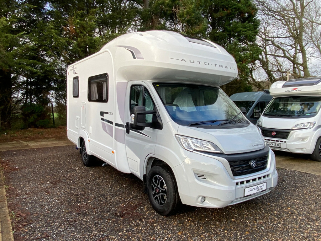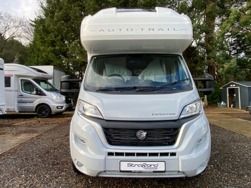 Strafford Motorhomes Ltd are pleased to present this delivery mileage Auto -Trail C63 automatic.Optional extras :- Automatic electronic 9 speed gearbox cost £3800Factory alloy wheels cost £750Upgraded 2nd leisure battery with wiring cost £250Apple car play radio head set cost £400Full Remis integrated cab blinds cost £700Key Features & DesignLayout: Coachbuilt with a prominent overcab bed, large L-shaped front lounge/dinette (convertible to a double bed), end kitchen, and a spacious washroom.Berths/Belts: Sleeps and travels 4 people (4 berths, 4 seatbelts).Kitchen: Full oven, grill, 3-burner hob, sink, 3-way fridge/freezer, pop-up sockets, and ample storage.Washroom: Separate shower cubicle, cassette toilet, and washbasin.Chassis: Fiat Ducato with a 2.2L 140 BHP engine; standard height chassis (not low-profile).Heating: Truma gas/electric blown-air heating. The Auto-Trail Expedition C63 is a popular, budget-friendly, 4-berth coachbuilt motorhome known for its family-friendly layout, featuring a large overcab bed, spacious front lounge, well-equipped rear kitchen with oven/hob, and a separate shower/toilet washroom, built on a Fiat Ducato base for comfortable, versatile travel with good storage and optional upgrades like tech packs and levelling systems, though it uses a standard chassis height for cost savings. Reviewers highlight its practical design, ample space for its size, and good value for families or first-time motorhome buyers.