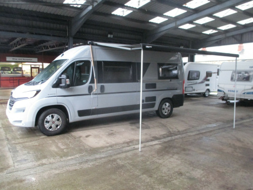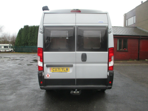 SPECIFICATION: Fiat Ducato 2.3ltr. 140 bhp. Diesel. AdBlue. Manual. 6 speed. Date of Registration 19:11:2021. Registration Number CU71 YLW. One owner from new. full service history. 2 berth. 4 seatbelts.WEIGHTS: MIS. mass in service 2898 kg.MPM. maximum permissible mass 3500 kg.SIZE: body length 590 cm. body width 200 cm plus mirrors.LAYOUT: 2 front cab swivel seats, double seat dinette with safety belts, mid kitchen, cubical washroom, end dinette seats or double bed.FEATURES: Cab electric windows, KENWOOD CD/Radio, Air conditioning, cruise control, power steering, rear double camera with cab screen.WHALE blownair gas and electric heating, WHALE gas and electric hot water, underslung fresh and waste water tanks, mains electric, charger, storage for 2 x 3.9kg gas bottles, Dometic 3 way fridge, gas oven and grill, 2 burner hob and sink, shower, cassette toilet, wash basin, flyscreens and blinds, cab internal silver screens, FIAMMA F80S 3.5 meter rollout canopy. Fitted Towbar with electrics.