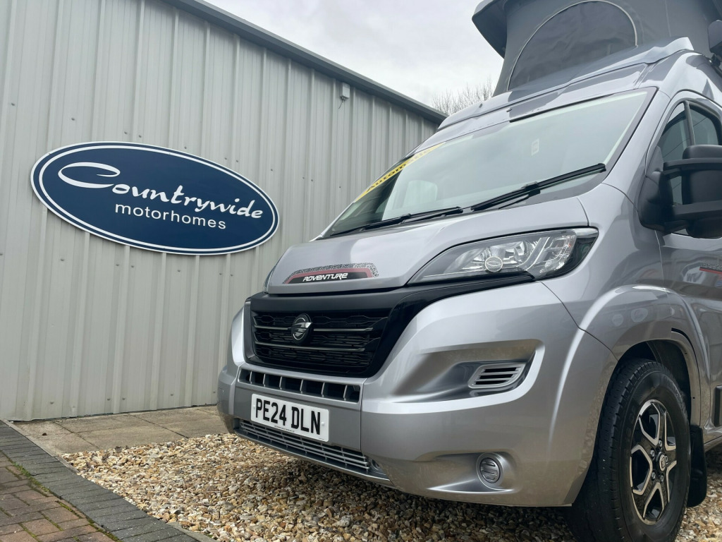 Autotrail Adventure 65 with elevating roof. 9 speed auto with the desirable 4 berth and belt configuation, rear lounge layout, 2 Captains chairs, reversing camera, Apple car play , Sat Nav, Cab Aircon, Awning Tow Bar with 7 pin electrics - too much to list A great four berth pop top model don't miss out book your viewing now call 01202 855531 Option and speak to a member of the Sales Team.!!'' We have attempted to make the above description as accurate as possible but please bear in mind that honest mistakes can happen so this description cannot form any part of any future contract. Some items fitted to models on display may be excluded from said contract' 0 bhp engine, 4 seat belts, 9 speed automatic, awning, barn doors, cab aircon, cruise control, electric hot water, euro 6, heating, new tablet touch screen stereo, plgv (under 3.5t), rear lounge, rear parking sensors, reverse camera, sat nav, solar panel, swivel cab seats, towbar, ulez compatible