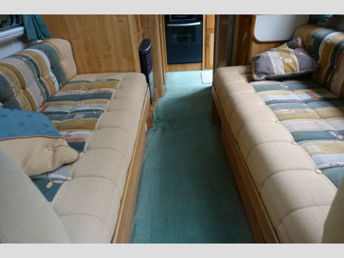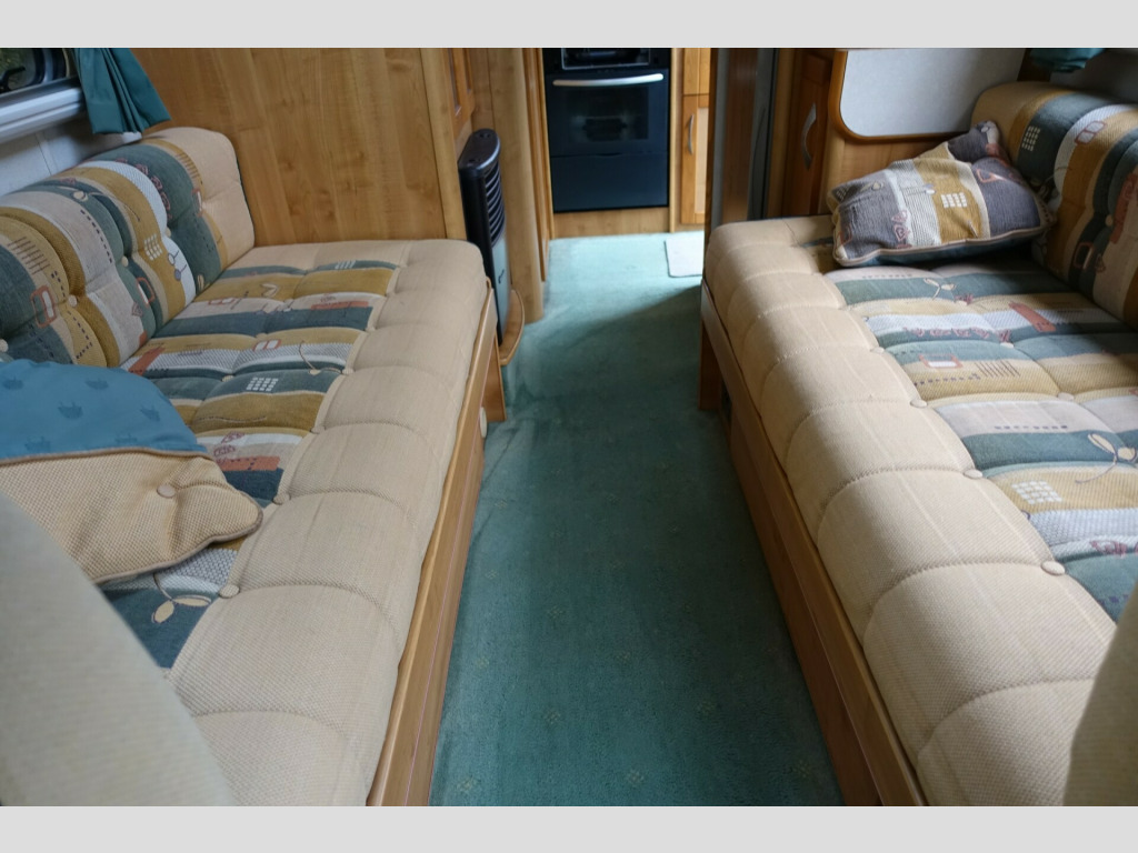 This ever popular 2 berth motorhome has 2 side sofas which can be either 2 single beds, or can be converted into a large double bed.It has all of the usual attributes of motor homing:- shower/wc, 240 hook up, on board water, heating, aerial and awning ssette toilet, hand basin, shower, wardrobe, 3-way fridge, hob, oven, rear kitchen, sink/drainer, aerial, awning, mains hook up, shower/wc, side sofa