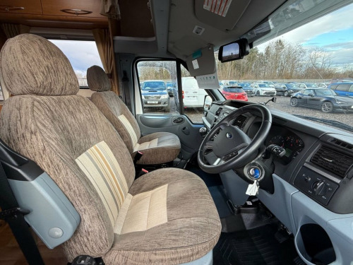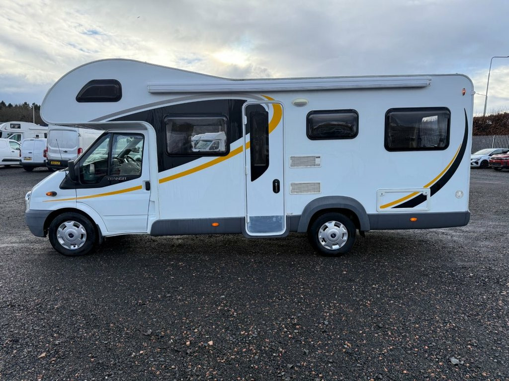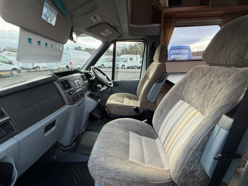 The Motorhome is built on the Ford 2200cc engine, 6 speed gear box and comes with cruise control, electric windows and mirrors, internal blinds to the front of the motorhome and milenco window alarms fitted throughout. The nearside kitchen galley, is well proportioned and specified. Three gas burners, a combination oven and grill for cooking and food preparation, 3 way fridge with small freezer compartment and sink with recently fitted new taps. There are three double bed options from which to choose, retire straight away to the fixed overcab double, or make up the bed in the front or rear lounge. All the beds are generously proportioned, with the overcab sleeping the largest bed and offers generous headroom along with a small window on the nearside for natural light. Both lounges are simple to convert into beds. At the front, drop the table and quickly rearrange the dinette cushions, pull out the side sofa to make a good-sized double bed across the width of the motorhome and the generous rear double bed can also be quickly converted from the rear lounge sofas.The washroom has a vanity washbasin, Thetford swivel cassette toilet, mirror, opaque side window and a separate shower cubicle.