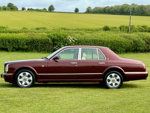 We are delighted to offer this fabulous 2000 Bentley Arnage Red Label 6.75 , , This utterly magnificent example has only 1 previous owner from new and has covered an extremely low 30000 miles from new with a full service history record having also benefited from just having a service carried out. , Finished in Sunset pearl with Magnolia over Wildberry leather interior with Gloss walnut inlays….and wow doesnt this colour combination suit the Arnage perfectly , , Usual Arnage specification includes 18 Red label Alloy wheels wrapped in almost new Pirelli P Zero tyres, Satilite Navigation, Corded Telephone, Electric memory seats, Heated seats, Climate control, Cruise control, Rear recline seats, Park distance control, CD player with 6 CD changer, Chrome tail pipes, Ivory Dials and more. , A remarkable low mileage example of the Arnage R that has been cherished by its previous custodian and with a RRP new of up close to £180,000 the Arnage gives incredible value, , 2 keys / Full book pack / Complete toolkit