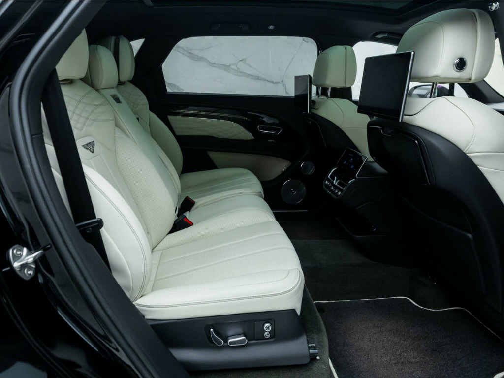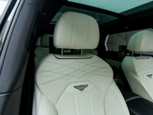 Finished in Black Crystal Extended Range Paint with Linen & Beluga Leather - Limited Run Azure EWB 'First Edition' Example - Desirably Equipped with Bentley Rear Entertainment & Picnic Tables - One Service Remaining on Service Plan - Bentley Manufacturer's Warranty until May 2026 - UK SuppliedOptional Extras:22-Inch 5-Spoke Directional Wheels Painted in BlackBlack Crystal Extended Range PaintFirst Edition Specification (Including: Bentley Dynamic Ride + Naim For Bentley Premium Audio + ‘BENTLEY’ Illuminated Treadplates + LED Welcome Lamps by Mulliner + First Edition Fascia Badge + First Edition Contrast Stitching + Mood Lighting + Deep Pile Overmats)Bentley Rear EntertainmentPicnic TablesRemote Controlled Garage Door OpenerPay TV and Digital TV Tuner (in Addition to Digital Radio)Heated, 3-Spoke Duo-Tone Indented Hide Trimmed Steering WheelSelf Levelling Wheel Badges by MullinerHeated, Acoustic, IR Front ScreenBentayga Blackline SpecificationLinen & Beluga Leather InteriorContrast Binding to Carpet OvermatsContrast Bentley EmblemsContrast StitchingGrand BlackRear Privacy GlassStandard Features:Blind Spot Assist and Exit WarningDAB RadioPanoramic RoofPark AssistSatellite Navigation SystemTouring Specification (Including: Adaptive Cruise Control + Head-Up Display + Traffic Assist + Lane Assist + Night Vision + Bentley Safeguard Plus)Tyre Pressure Monitoring System. 22-Inch 5-Spoke Directional Wheels Painted in Black, Black Crystal Extended Range Paint, First Edition Specification, Bentley Rear Entertainment, Picnic Tables, Remote Controlled Garage Door Opener, Pay TV and Digital TV Tuner (in Addition to Digital Radio), Heated, 3-Spoke Duo-Tone Indented Hide Trimmed Steering Wheel, Self Levelling Wheel Badges by Mulliner, Heated, Acoustic, IR Front Screen, Bentayga Blackline Specification, Linen & Beluga Leather Interior, Contrast Binding to Carpet Overmats, Contrast Bentley Emblems, Contrast Stitching, Grand Black Inlays, Rear Privacy Glass.