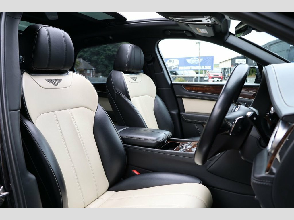HERE AT CARDIFF TRADE SALES WE HAVE JUST TAKEN DELIVERY OF THIS STUNNING BENTLEY BENTAYGA, THIS VEHICLE HAS COVERED 42K MILES AND COMES WITH THE FOLLOWING SPECIFICATIONS: PANORAMIC ROOF, 7 SEATS, 3 SPOKE MULTIFUNCTION STEERING WHEEL, POWER TAILGATE, ELECTRIC FOLDING 3RD ROW SEATS, PRIVACY GLASS, HEATED FRONT SEATS, HEADS UP DISPLAY, REVERSE CAMERA, AIR SUSPENSION, SOFT CLOSING DOORS,  FRONT AND REAR PARKING SENSORS, 4 ZONE CLIMATE CONTROL, TWO TONE LEATHER INTERIOR, BENTLEY CENTRE DASH, BLIND SPOT WARNING, DAB/FM/AM RADIO, ELECTRIC MEMORY FRONT SEATS, ADAPTIVE CRUISE CONTROL, NAVIGATION, BLUETOOTH FOR MEDIA AND HANDSFREE TELEPHONE, DAB/FM/AM RADIO.  12v x 2 Power Points, 20in Alloy Wheels - 10 Spoke - Painted, 8in Touch Screen Infotainment, ABS - Anti Lock Braking System, Adaptive Cruise Control System, Air Suspension - Continuous Damping - 4 , Airbag - Curtain, Airbag - Driver, Airbag - Front Passenger Deactivation, Airbag - Passenger, Airbags - Front Side, Airbags - Rear Side, Automatic Hill Hold Control, Bentley GPS Tracking System - Full Fitme, Blind Spot Warning, Daytime Running Lights - LED, Door Mirrors - Electronically Adjustable, ESP - Electronic Stability Programme, Electric Front and Rear Windows, Electrochromatic Auto Dimming Rear View , Exit Warning, Four-Zone Air Conditioning, Front Parking Sensors, Headlight Washer Jets,