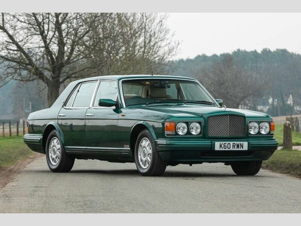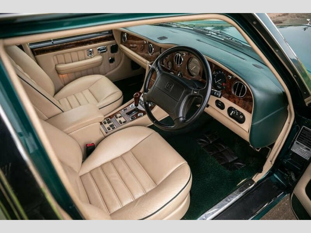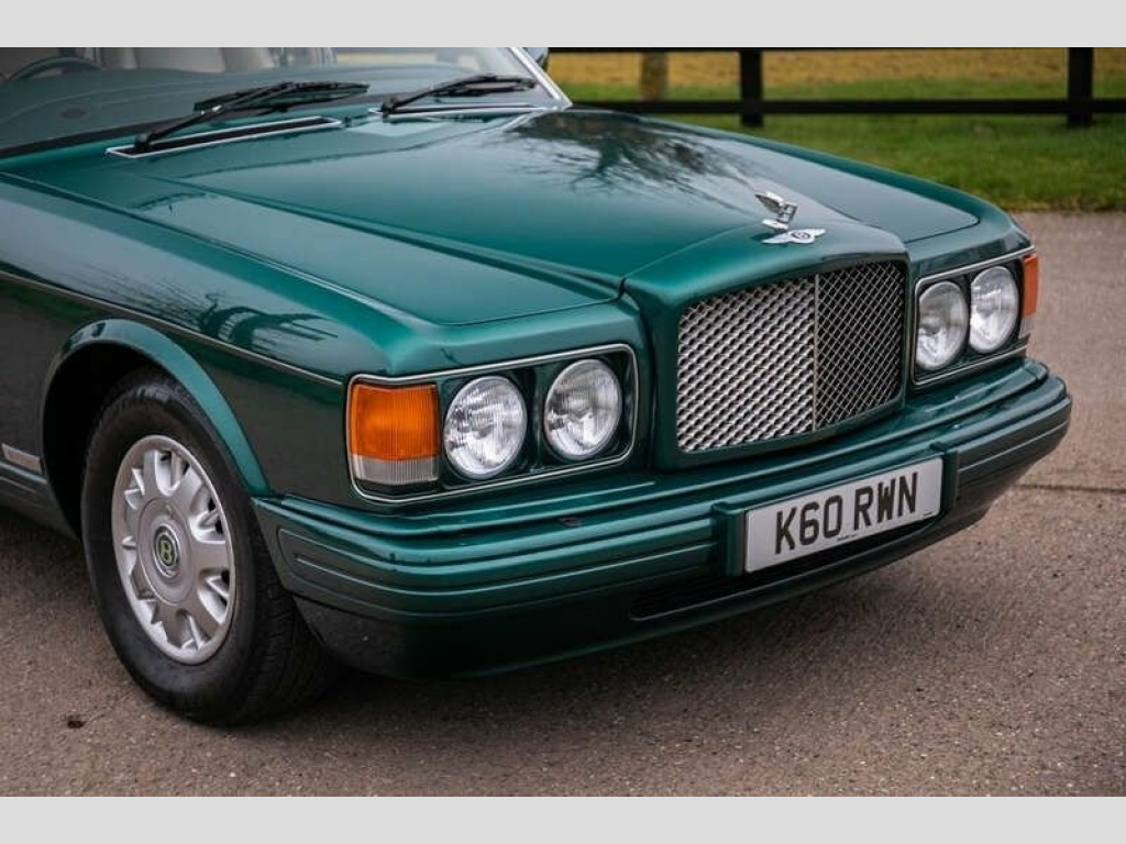 The Brooklands was introduced in 1992 as a replacement for the Mulsanne S and Bentley Eight,The exterior design featured the classic Bentley 'waterfall' grille as well as dual headlights with wraparound parking lights, trademark descending boot lid and chrome B-pillars,The interior offered more curvaceous design elements surrounding the leather-wrapped centre console which now housed the gear selector,Purchased by our vendor in late 2023 after a long search for the lowest mileage and best example he could find in Sherwood Green,Our fastidious Customer, a Bentley Owners Club member, has subsequently invested a further £12,000 in the last year, including new springs, new tyres and a battery,Further enhanced by the addition of LED headlights incorporating daytime running lights (original Halogen lamps included) and parking sensors,31,468 miles indicated, supported by its original stamped service book and book pack with 14 service stamps present,The Sherwood Green coachwork was professionally polished last year and the Magnolia leather interior remains in excellent condition including the walnut veneers and the Lambs Wool over-rugs,One of only 135 right-hand drive Brooklands built and in superb condition, we encourage your inspection at our NEC Sale, Parking Sensors; Safety Belt Pretensioners