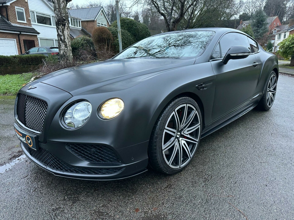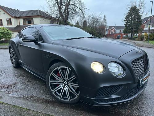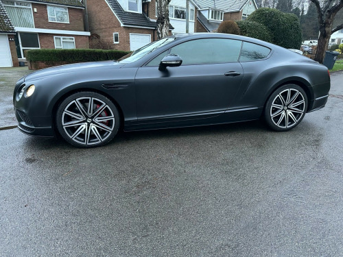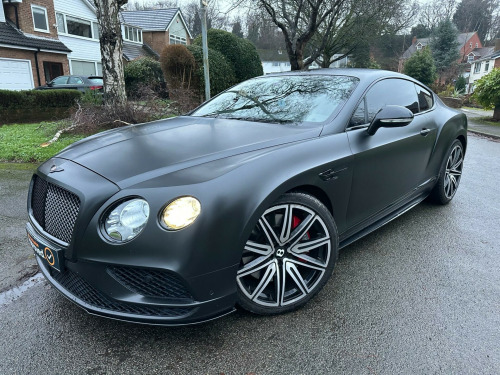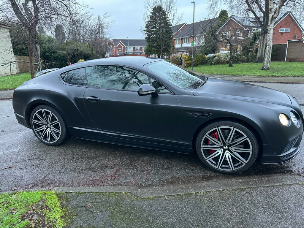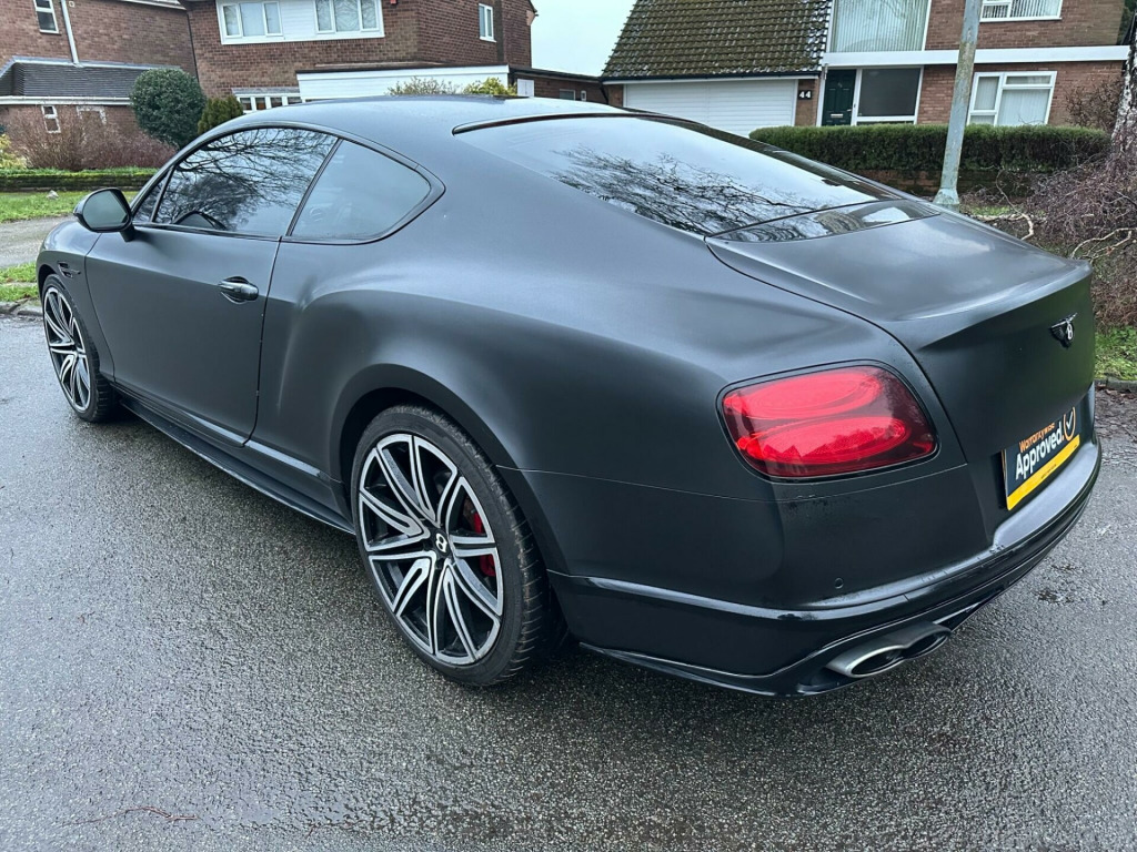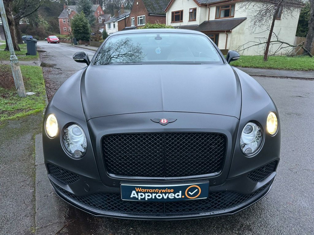 Car is white but has been wrapped in Matt black. Wrap can be taken off if wanted.This 2016 Bentley Continental V8 GT S presents a remarkable opportunity with its exceptionally low mileage of just 36,700 miles, having been cared for by only two owners. This striking GT S model is powered by a potent 4.0 litre petrol engine, delivering exhilarating performance through its four wheel drive system. It meets Euro 6 emission standards, reflecting its modern engineering. Notable features include advanced carbon ceramic brakes with eye catching red calipers, a full length console complete with twin front armrests for enhanced comfort, and sophisticated LED approach lamps that illuminate your path. Inside, you will find a convenient storage case within the centre console and elegantly embroidered Bentley emblems adorning the seat facings, showcasing the marque's attention to detail.The performance of this Bentley Continental is truly exceptional, with a rapid 0-60mph acceleration time of just 4.3 seconds. This impressive figure highlights how this particular vehicle surpasses many others in its class, offering a driving experience that is both dynamic and refined. The combination of its powerful V8 engine, sophisticated drivetrain, and luxurious GT S trim ensures a driving experience that is both engaging and supremely comfortable, making it a standout choice for discerning drivers. broidered bentley emblems to seat facings, led approach lamps, contrast stitching, drilled alloy sports foot pedals, full length console with twin front armrests, seat ventilation and massage function to front seats, storage case to centre console, twin front armrests, carbon ceramic brakes with red calipers, 20in alloy wheels - open spoke - painted, 8 channel and 8 speaker audio system, abs - anti lock braking system, acoustic interlayer to side and rear glass, air springs, airbag - driver, airbag - front and rear thorax, airbag - passenger, airbags - front side, airbags - rear side, automatic seat belt presenter, bmr - balanced mode radiator speakers, bentley branded t piece engine cover, bentley gps tracking system provision, bi-xenon projector headlights, black gloss radiator bentley matrix grille integrated into bonnet, black lower rear bumper valance, boot carpet in black - beluga, brake pad wear indicator, breitling clock, bright tint front and rear lamps, bulls-eyes air vents with chrome organ stop controls, cdc - continuous damping control, daytime running lights - led, door area lighting in lower edge of exterior mirrors and entrance lighting in lower edge of door, door mirrors - colour coded, door mirrors - electronically adjustable with heating - power folding and memory functions, dual-zone automatic climate control system, ebd - electronic brake force distribution, esp - electronic stability programme, electric front and rear windows, electric tilt and reach adjustment steering column with memory and easy entry and exit functions, electronic cruise control, electronic parking brake with drive away assist, electronically adjustable front seats with memory functions, engine oil filler - bright b cap, external media interface, foot pedals with bentley b emblem, footwell and centre console stowage illumination, hba - hydraulic brake assistance, hdd satellite navigation, headlight washer jets, hide and chrome trimmed gear lever with manual shift change facility, high level rear brake light, isofix rear seat fixings, integrated hvac controls, keyless entry and ignition, knurled sports gear lever, led rear lights with jewellery-effect inner light treatment, leather headlining, msr - motor slip regulation, main beam supplementation - led, multi-function steering wheel, park distance control - graphic on infotaintment screen works in conjuntion with audible warning, passengers seat 14 way adjustment and memory including lumbar, permanent all-wheel drive with 40:60 front to rear torque split, power boot opening and closing, power latching to driver and passenger doors for easy entry and exit, rain sensing windscreen wipers, rear diffuser, rear led fog and reverse lights integrated into the lower bumper, red winged b badge to radiator shell and boot lid, seats - heated front, seats - lumbar support for front, seats - lumbar support for rear, single dvd/cd slot, single sd card slot, speed sensitive power steering, standard brakes with red calipers, steering column mounted gear selectors, steering wheel - sports single tone - 3 spoke hide trimmed, tpms - electronic tyre pressure monitoring system, telephone system with bluetooth wireless connectivity, touch screen infotainment system with 8inch high resolution screen am/fm radio single cd/dvd slot, treadplates with v8 s plaque insert, twilight sensor control and tunnel detection for lighting, veneer - piano black, voice activation on infotainment system, volumetric ultrasonic alarm, wheel bolts with thatcham security bolt