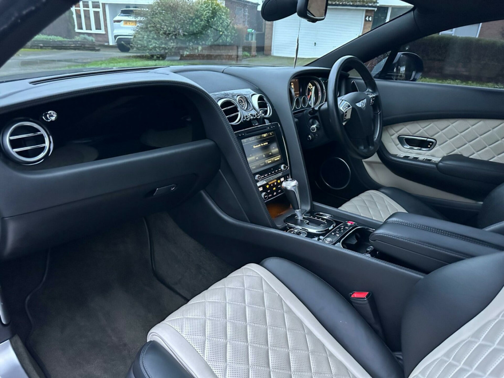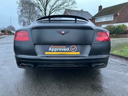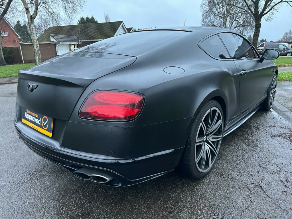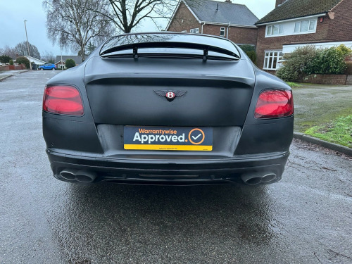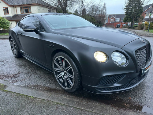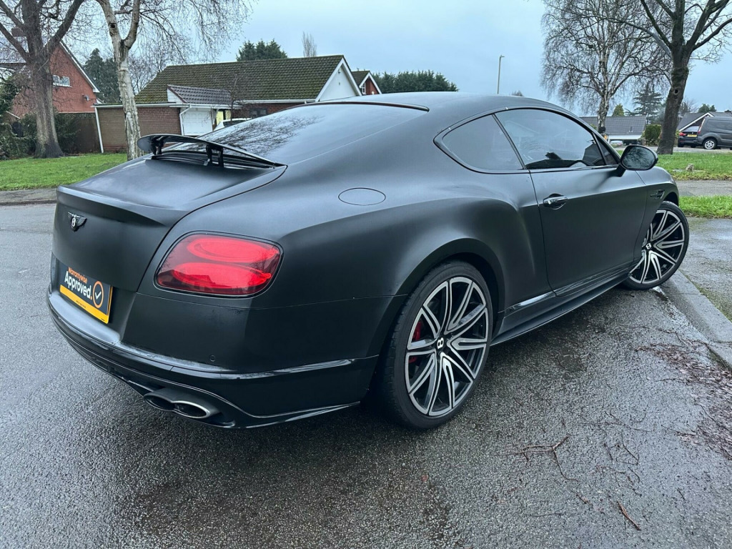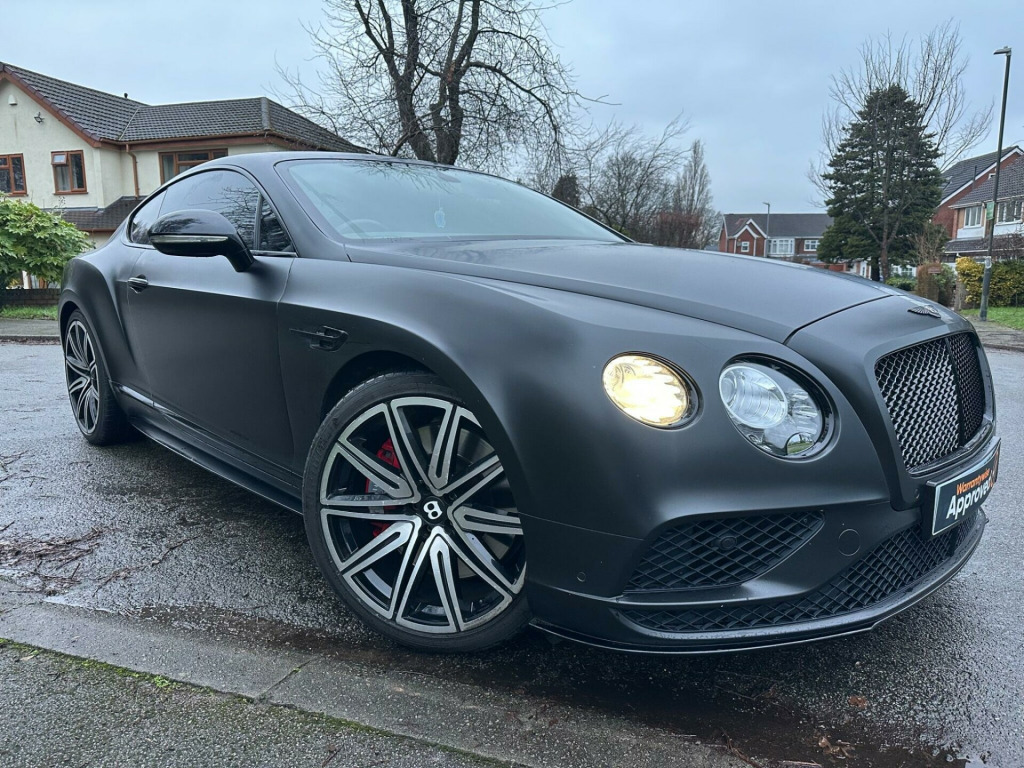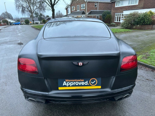 Car is white but has been wrapped in Matt black. Wrap can be taken off if wanted.This 2016 Bentley Continental V8 GT S presents a remarkable opportunity with its exceptionally low mileage of just 36,700 miles, having been cared for by only two owners. This striking GT S model is powered by a potent 4.0 litre petrol engine, delivering exhilarating performance through its four wheel drive system. It meets Euro 6 emission standards, reflecting its modern engineering. Notable features include advanced carbon ceramic brakes with eye catching red calipers, a full length console complete with twin front armrests for enhanced comfort, and sophisticated LED approach lamps that illuminate your path. Inside, you will find a convenient storage case within the centre console and elegantly embroidered Bentley emblems adorning the seat facings, showcasing the marque's attention to detail.The performance of this Bentley Continental is truly exceptional, with a rapid 0-60mph acceleration time of just 4.3 seconds. This impressive figure highlights how this particular vehicle surpasses many others in its class, offering a driving experience that is both dynamic and refined. The combination of its powerful V8 engine, sophisticated drivetrain, and luxurious GT S trim ensures a driving experience that is both engaging and supremely comfortable, making it a standout choice for discerning drivers. broidered bentley emblems to seat facings, led approach lamps, contrast stitching, drilled alloy sports foot pedals, full length console with twin front armrests, seat ventilation and massage function to front seats, storage case to centre console, twin front armrests, carbon ceramic brakes with red calipers, 20in alloy wheels - open spoke - painted, 8 channel and 8 speaker audio system, abs - anti lock braking system, acoustic interlayer to side and rear glass, air springs, airbag - driver, airbag - front and rear thorax, airbag - passenger, airbags - front side, airbags - rear side, automatic seat belt presenter, bmr - balanced mode radiator speakers, bentley branded t piece engine cover, bentley gps tracking system provision, bi-xenon projector headlights, black gloss radiator bentley matrix grille integrated into bonnet, black lower rear bumper valance, boot carpet in black - beluga, brake pad wear indicator, breitling clock, bright tint front and rear lamps, bulls-eyes air vents with chrome organ stop controls, cdc - continuous damping control, daytime running lights - led, door area lighting in lower edge of exterior mirrors and entrance lighting in lower edge of door, door mirrors - colour coded, door mirrors - electronically adjustable with heating - power folding and memory functions, dual-zone automatic climate control system, ebd - electronic brake force distribution, esp - electronic stability programme, electric front and rear windows, electric tilt and reach adjustment steering column with memory and easy entry and exit functions, electronic cruise control, electronic parking brake with drive away assist, electronically adjustable front seats with memory functions, engine oil filler - bright b cap, external media interface, foot pedals with bentley b emblem, footwell and centre console stowage illumination, hba - hydraulic brake assistance, hdd satellite navigation, headlight washer jets, hide and chrome trimmed gear lever with manual shift change facility, high level rear brake light, isofix rear seat fixings, integrated hvac controls, keyless entry and ignition, knurled sports gear lever, led rear lights with jewellery-effect inner light treatment, leather headlining, msr - motor slip regulation, main beam supplementation - led, multi-function steering wheel, park distance control - graphic on infotaintment screen works in conjuntion with audible warning, passengers seat 14 way adjustment and memory including lumbar, permanent all-wheel drive with 40:60 front to rear torque split, power boot opening and closing, power latching to driver and passenger doors for easy entry and exit, rain sensing windscreen wipers, rear diffuser, rear led fog and reverse lights integrated into the lower bumper, red winged b badge to radiator shell and boot lid, seats - heated front, seats - lumbar support for front, seats - lumbar support for rear, single dvd/cd slot, single sd card slot, speed sensitive power steering, standard brakes with red calipers, steering column mounted gear selectors, steering wheel - sports single tone - 3 spoke hide trimmed, tpms - electronic tyre pressure monitoring system, telephone system with bluetooth wireless connectivity, touch screen infotainment system with 8inch high resolution screen am/fm radio single cd/dvd slot, treadplates with v8 s plaque insert, twilight sensor control and tunnel detection for lighting, veneer - piano black, voice activation on infotainment system, volumetric ultrasonic alarm, wheel bolts with thatcham security bolt