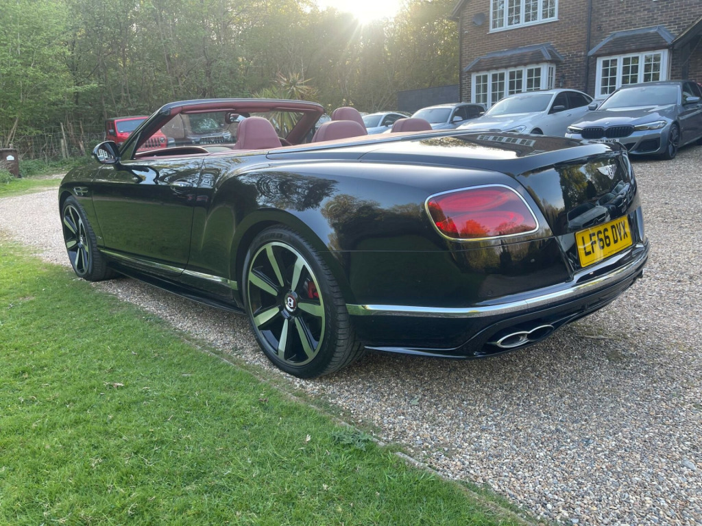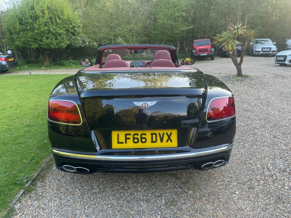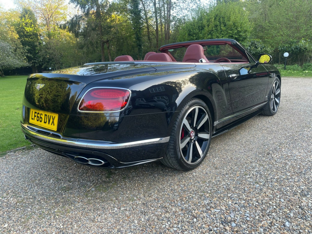 An outstanding example with full Bentley service history. The car is finished in Beluga Black with a black soft top over a Hotspur leather-trimmed cabin featuring contrast stitching, embroidered headrests, and a combination of Piano Black and silver-toned inlays. Equipment includes front and rear parking assistance, a wind deflector, cruise control, dual-zone climate control, electrically adjustable front seats with heating, ventilation, massage, memory, and neck warming functions, and a central infotainment system with satellite navigation. Soft Close doors, Bentley sports exhaust and Reverse cameraWith only 23,000 miles on the clock, this 2016 Bentley Continental offers an enticing blend of luxury and performance. As a Continental V8 GTC S, this car boasts a 4.0L petrol engine and a sophisticated four-wheel-drive system. The vehicle meets Euro 6 emission standards. The cabin is adorned with embroidered Bentley emblems on the seat facings, adding a touch of bespoke elegance. The Mulliner Driving Specification enhances the sporty appeal with 21in painted directional sports alloy wheels in black. The car is also equipped with a digital TV tuner and a battery charger for added convenience. The exterior is further enhanced by polished 21in alloy wheels with a 6 twin-spoke design.This Continental's acceleration, reaching 0-60mph in just 4.5 seconds, demonstrates its superior performance capabilities when compared to similar vehicles. The generous boot space adds to the practicality, making it a compelling choice for those who value both style and substance. The GTC S trim elevates the driving experience, ensuring that every journey is memorable. ar view camera, tv tuner - digital, 21in alloy wheels - 6 twin-spoke - polished, embroidered bentley emblems to seat facings, jewel fuel filler cap, wind deflector, sports exhaust, battery charger, drilled alloy sports foot pedals, full premium grade hide - hotspur, hand cross stitching, mulliner driving specification, mulliner driving specification - 21in painted directional sports alloy wheel - black, neck warmer, seat ventilation and massage function to front seats, 8 channel and 8 speaker audio system, abs - anti lock braking system, acoustic interlayer to side and rear glass, air springs, airbag - driver, airbag - front and rear thorax, airbag - passenger, airbags - front side, airbags - rear side, automatic seat belt presenter, bmr - balanced mode radiator speakers, bentley branded t piece engine cover, bentley gps tracking system provision, bi-xenon projector headlights, black gloss radiator bentley matrix grille integrated into bonnet, black lower rear bumper valance, boot carpet in black - beluga, brake pad wear indicator, breitling clock, bright tint front and rear lamps, bulls-eyes air vents with chrome organ stop controls, cdc - continuous damping control, daytime running lights - led, door area lighting in lower edge of exterior mirrors and entrance lighting in lower edge of door, door mirrors - colour coded, door mirrors - electronically adjustable with heating - power folding and memory functions, dual-zone automatic climate control system, ebd - electronic brake force distribution, esp - electronic stability programme, electric front and rear windows, electric tilt and reach adjustment steering column with memory and easy entry and exit functions, electronic cruise control, electronic parking brake with drive away assist, electronically adjustable front seats with memory functions, engine oil filler - bright b cap, external media interface, foot pedals with bentley b emblem, footwell and centre console stowage illumination, hba - hydraulic brake assistance, hdd satellite navigation, headlight washer jets, hide and chrome trimmed gear lever with manual shift change facility, high level rear brake light, isofix rear seat fixings, integrated hvac controls, keyless entry and ignition, knurled sports gear lever, led rear lights with jewellery-effect inner light treatment, leather headlining, msr - motor slip regulation, main beam supplementation - led, multi-function steering wheel, park distance control - graphic on infotaintment screen works in conjuntion with audible warning, passengers seat 14 way adjustment and memory including lumbar, permanent all-wheel drive with 40:60 front to rear torque split, power boot opening and closing, power latching to driver and passenger doors for easy entry and exit, rain sensing windscreen wipers, rear diffuser, rear led fog and reverse lights integrated into the lower bumper, red winged b badge to radiator shell and boot lid, seats - heated front, seats - lumbar support for front, seats - lumbar support for rear, single dvd/cd slot, single sd card slot, speed sensitive power steering, standard brakes with red calipers, steering column mounted gear selectors, steering wheel - sports single tone - 3 spoke hide trimmed, tpms - electronic tyre pressure monitoring system, telephone system with bluetooth wireless connectivity, touch screen infotainment system with 8inch high resolution screen am/fm radio single cd/dvd slot, treadplates with v8 s plaque insert, twilight sensor control and tunnel detection for lighting, veneer - piano black, voice activation on infotainment system, volumetric ultrasonic alarm, wheel bolts with thatcham security bolt