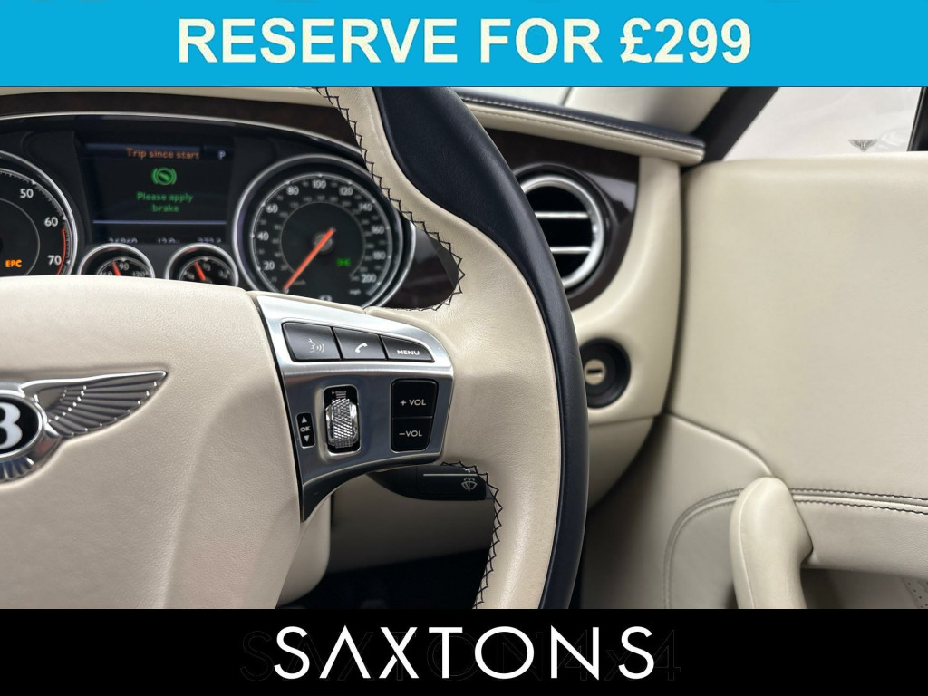 . 20in Alloy Wheels - Open Spoke - Painted, 8 Channel and 8 Speaker Audio System, ABS - Anti Lock Braking System, Acoustic Interlayer to Side and Rear Glass, Air Springs, Airbag - Driver, Airbag - Front and Rear Thorax, Airbag - Passenger, Airbags - Front Side, Airbags - Rear Side, Automatic Seat Belt Presenter, Bentley Branded T Piece Engine Cover, Bentley GPS Tracking System Provision, Bi-Xenon Headlights with LED Main Beam Support, Bi-Xenon Projector Headlights, Black Gloss Radiator Bentley Matrix Grille integrated into Bonnet, Black Lower Rear Bumper Valance, BMR - Balanced Mode Radiator Speakers, Boot Carpet in Black - Beluga, Brake Pad Wear Indicator, Breitling Clock, Bright Tint Front and Rear Lamps, Bulls-Eyes Air Vents with Chrome Organ Stop Controls, CDC - Continuous Damping Control, Daytime Running Lights - LED, Door Area Lighting in Lower Edge of Exterior Mirrors and Entrance Lighting in Lower Edge of Door, Door Mirrors - Colour Coded, Door Mirrors - Electronically Adjustable with Heating - Power Folding and Memory Functions, Dual-Zone Automatic Climate Control System, EBD - Electronic Brake Force Distribution, Electric Front and Rear Windows, Electric Tilt and Reach Adjustment Steering Column with Memory and Easy Entry and Exit Functions, Electronic Cruise Control, Electronic Parking Brake with Drive Away Assist, Electronically Adjustable Front Seats with Memory Functions, Engine Oil Filler - Bright B Cap, ESP - Electronic Stability Programme, External Media Interface, Foot Pedals with Bentley B Emblem, Footwell and Centre Console Stowage Illumination, HBA - Hydraulic Brake Assistance, HDD Satellite Navigation, Headlight Washer Jets, Hide and Chrome Trimmed Gear Lever with Manual Shift Change Facility, High Level Rear Brake light, Integrated HVAC Controls, ISOFIX Rear Seat Fixings, Keyless Entry and Ignition, Knurled Sports Gear Lever, Leather Headlining, LED Rear Lights with Jewellery-Effect Inner Light Treatment, Main Beam Supplementation - LED, MSR - Motor Slip Regulation, Multi-Function Steering Wheel, Park Distance Control - Graphic on Infotaintment Screen Works in Conjuntion with Audible Warning, Passengers Seat 14 Way Adjustment and Memory Including Lumbar, Permanent All-Wheel Drive with 40:60 Front to Rear Torque Split, Power Boot Opening and Closing, Power Latching to Driver and Passenger Doors for Easy Entry and Exit, Rain Sensing Windscreen Wipers, Rear Diffuser, Rear LED Fog and Reverse Lights Integrated into the Lower Bumper, Red Winged B Badge to Radiator Shell and Boot Lid, Seats - Heated Front, Seats - Lumbar Support for Front, Seats - Lumbar Support for Rear, Single DVD/CD Slot, Single SD Card Slot, Speed Sensitive Power Steering, Standard Brakes with Red Calipers, Steering Column Mounted Gear Selectors, Steering Wheel - Sports Single Tone - 3 Spoke Hide Trimmed, Telephone System with Bluetooth Wireless Connectivity, Touch Screen Infotainment System with 8inch High Resolution Screen AM/FM Radio Single CD/DVD Slot, TPMS - Electronic Tyre Pressure Monitoring System, Treadplates with V8 S Plaque Insert, Twilight Sensor Control and Tunnel Detection for Lighting, Twin Oval Exhaust Tailpipes, Veneer - Piano Black, Voice Activation on Infotainment System, Volumetric Ultrasonic Alarm, Wheel Bolts with Thatcham Security Bolt, Mulliner Driving Specification, Seat Ventilation and Massage Function to Front Seats, Neck Warmer, Sports Exhaust, Interior Style Specification with Contrast Stitching, Steering Wheel - Sports Dual Tone - 3 Spoke Hide Trimmed, Storage Case to Centre Console, Twin Front Armrests, Rear View Camera, Quilted Perforated Hide - Imperial Blue.