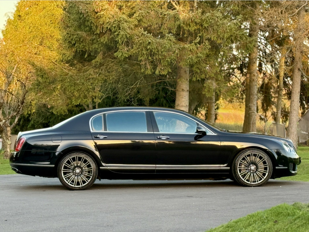 We are delighted to have this beautiful 2009 59 Bentley Continental Flying Spur Speed 6.0 W12 Mulliner. , Finished in Stunning Diamond Black metallic with Main and Secondary Hides in Beluga and Gloss walnut Veneers , Covering 55000 miles from new with a complimenting service history record. , Specification includes, Bentley Motifs Embossed to All Seats, Mulliner Driving Specification, Breitling Clock, multi function steering wheel, Electric + Memory + Massage + Heated Front Seats with Lumbar Support, Front and Rear parking sensors, Rear Camera, 20 Speed Anthricite rim alloys, Twin custom Exahust tail pipes, Double glazed windows, Cruise Control, Soft Close Doors, Keyless Entry, Keyless Start, Rear reclining heated massage seats, Rear TV screens, Rear phone, Radar guided cruise control, Naim Sound System ( £11,000 Rrp ), Electric bootlid, 2 Keys , , A limited edition Speed model running between late 09 to 2012 consisting of Spped body styling, 20 Speed alloys, Ceramic Brakes and a tweaked W12 producing 602BHP with a top speed of 202 MPH making it the fastest Sallon car in the world when released. Overall a supurb grand tourer that turns heads wherever it goes while giving the ultimate experience in Luxury & performance for superb value